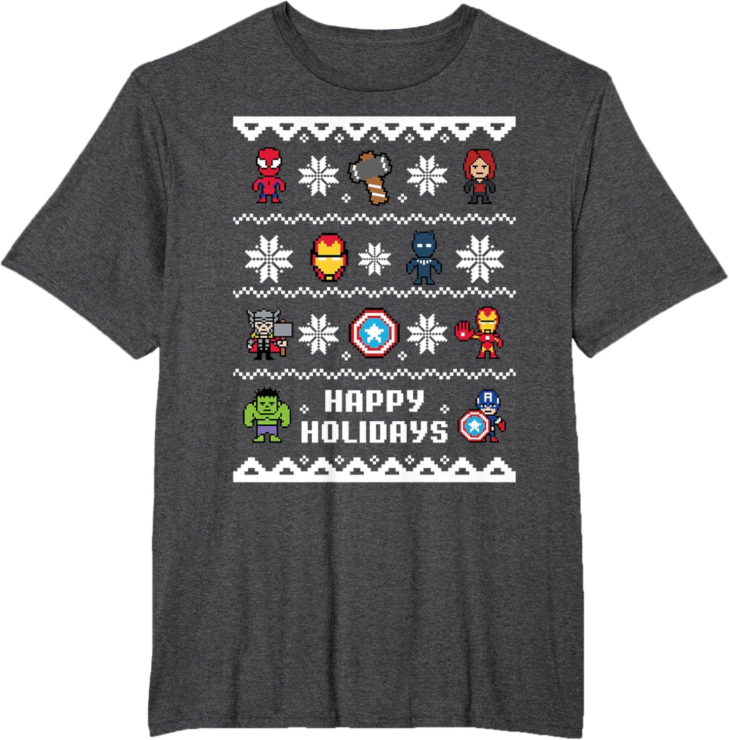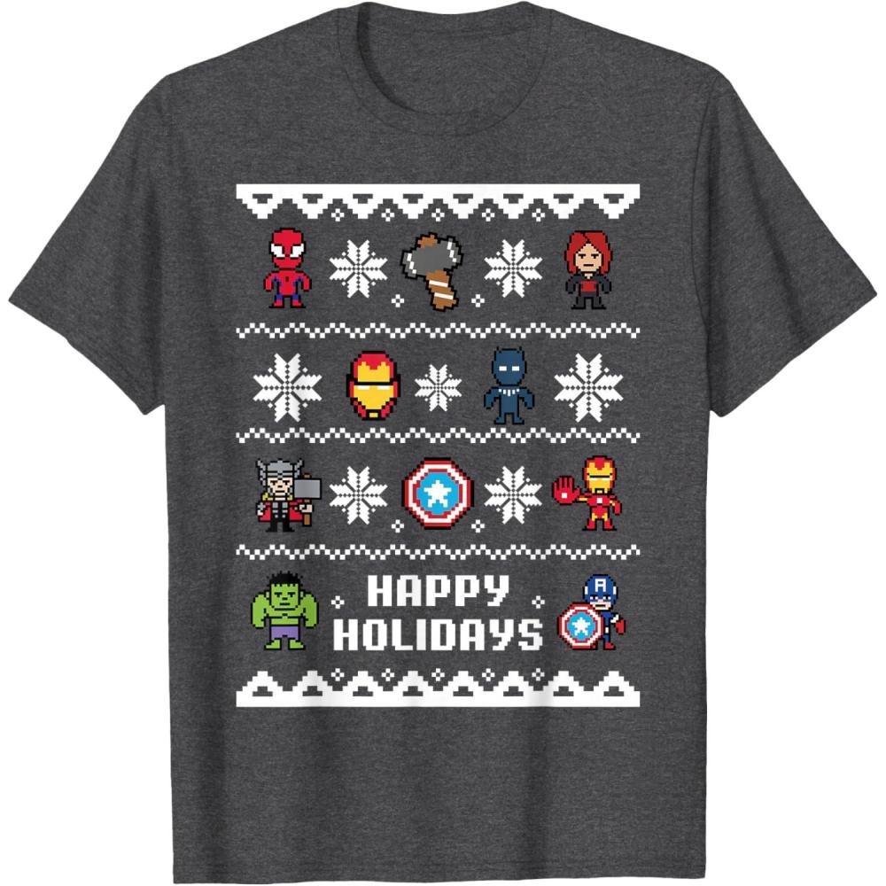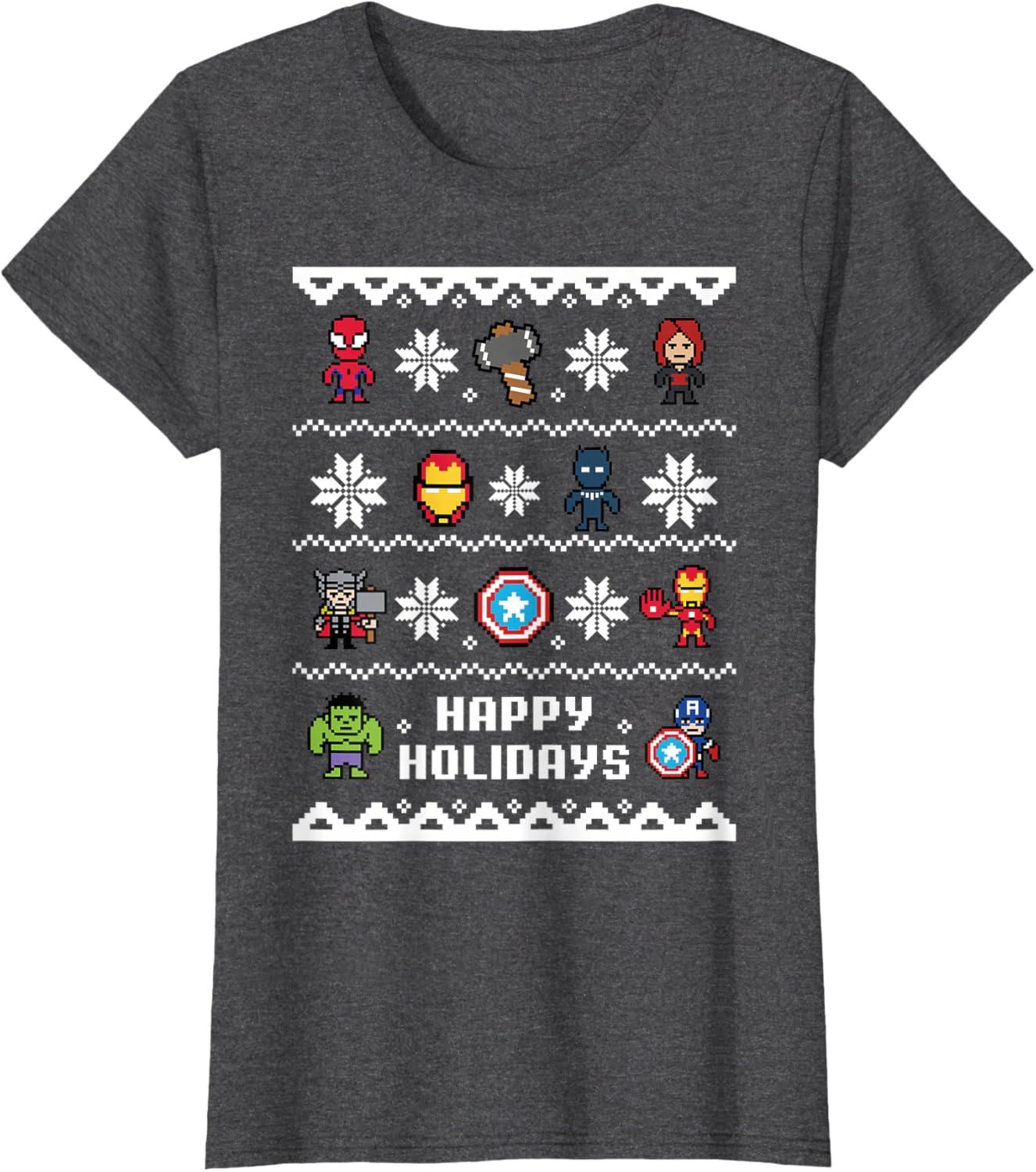 Marvel Avengers Christmas Sweater Happy Holidays T-Shirt(Dark Heather Grey)
