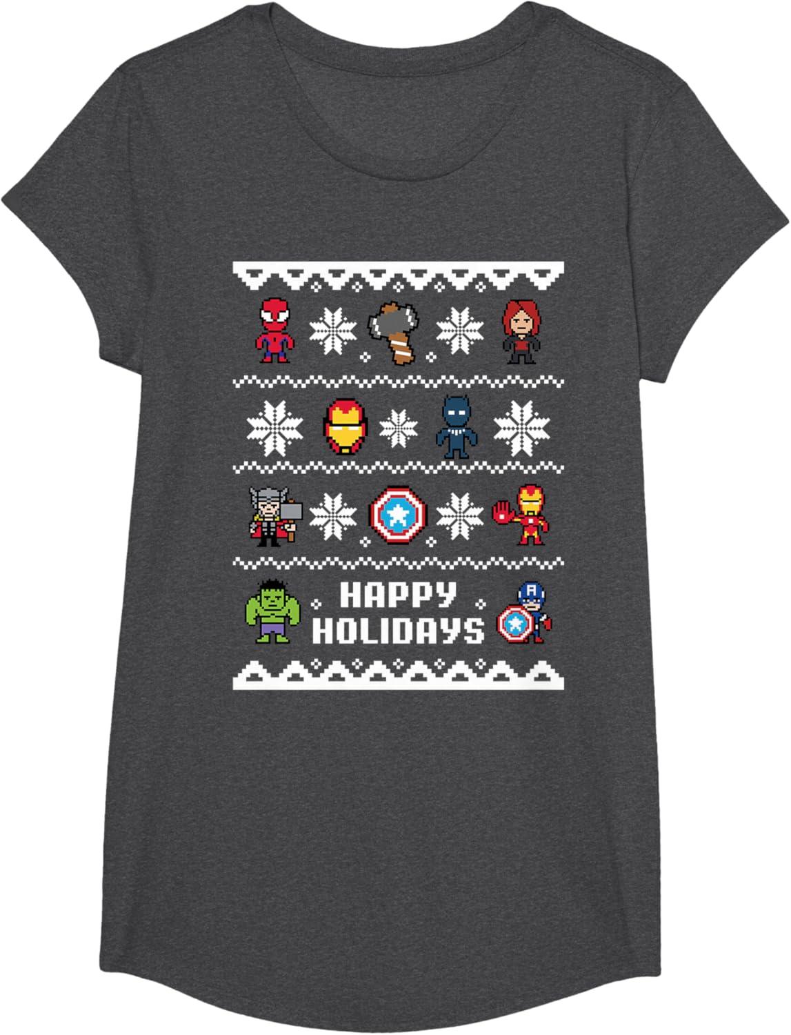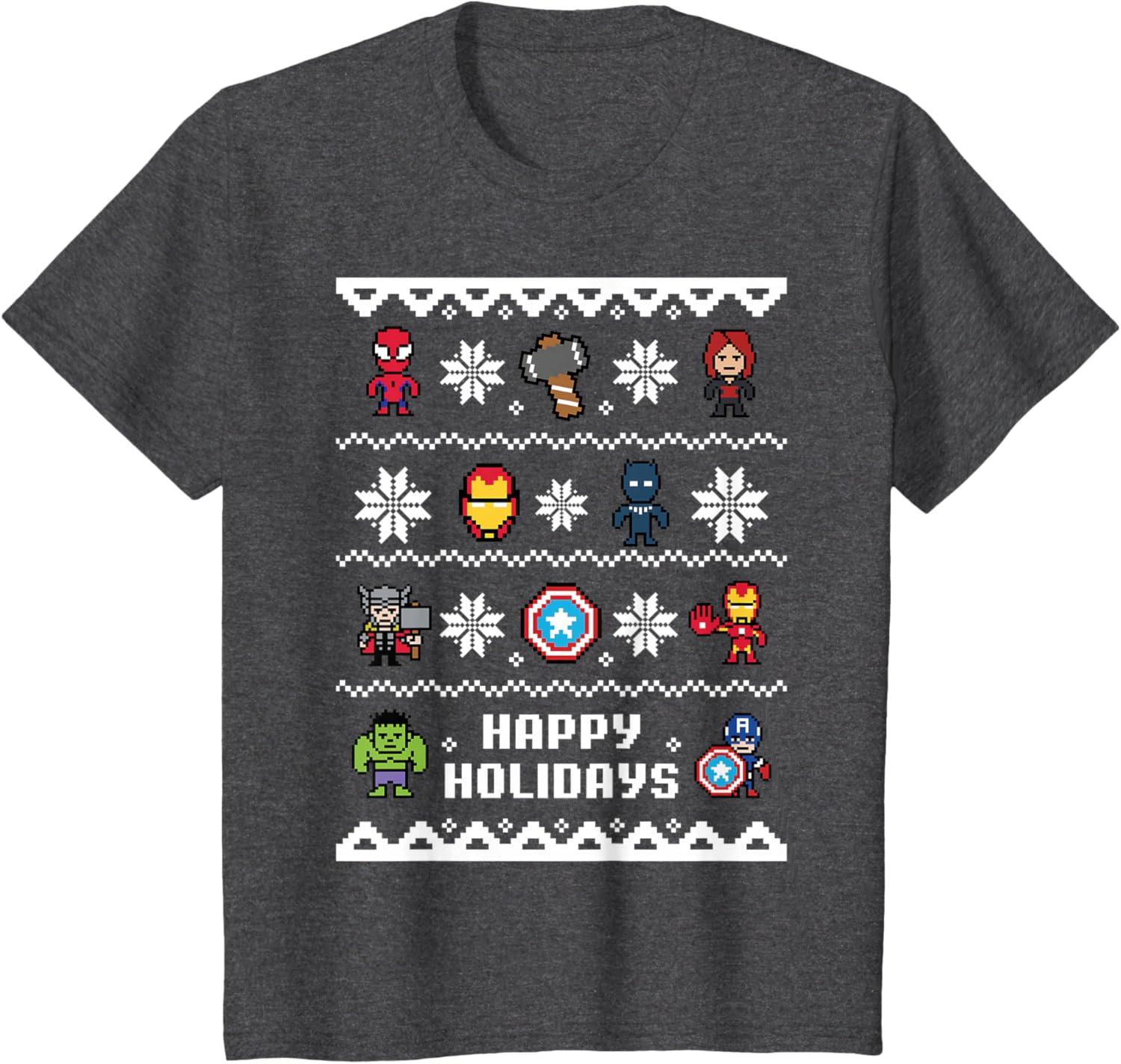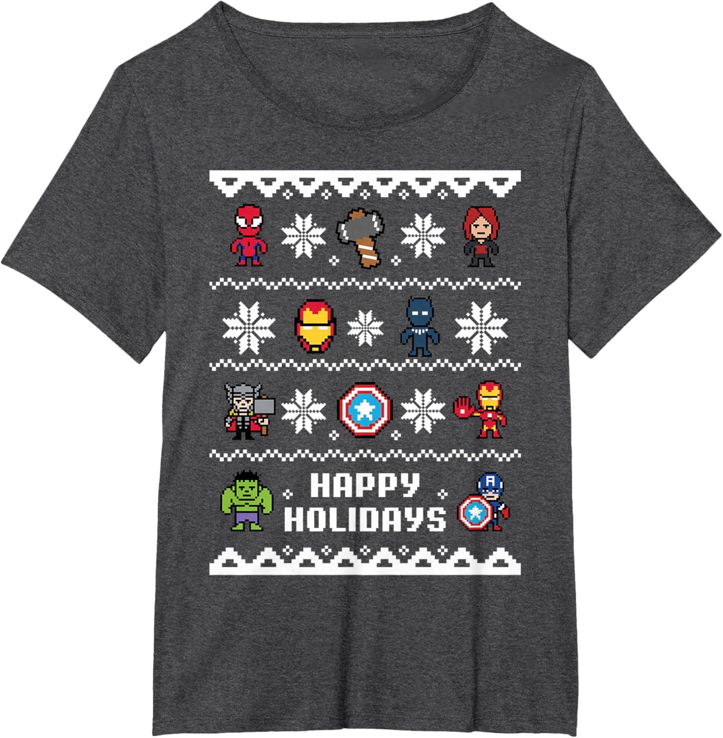 Marvel Avengers Christmas Sweater Happy Holidays T-Shirt(Dark Heather Grey)