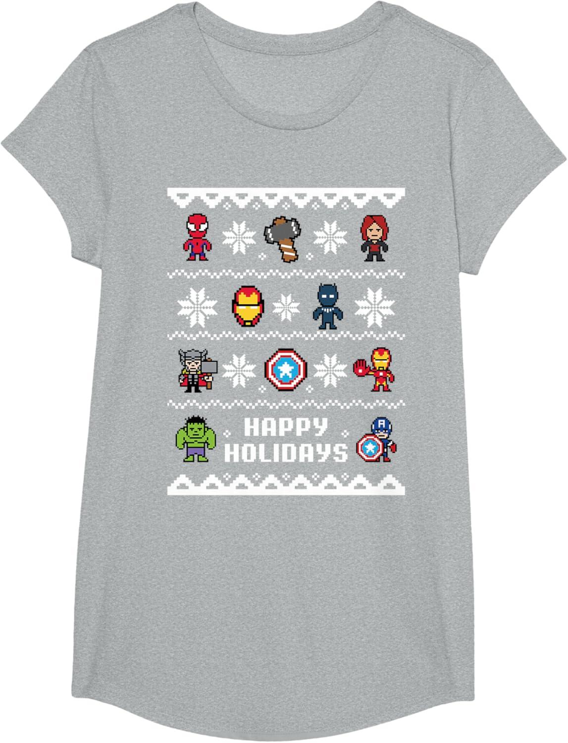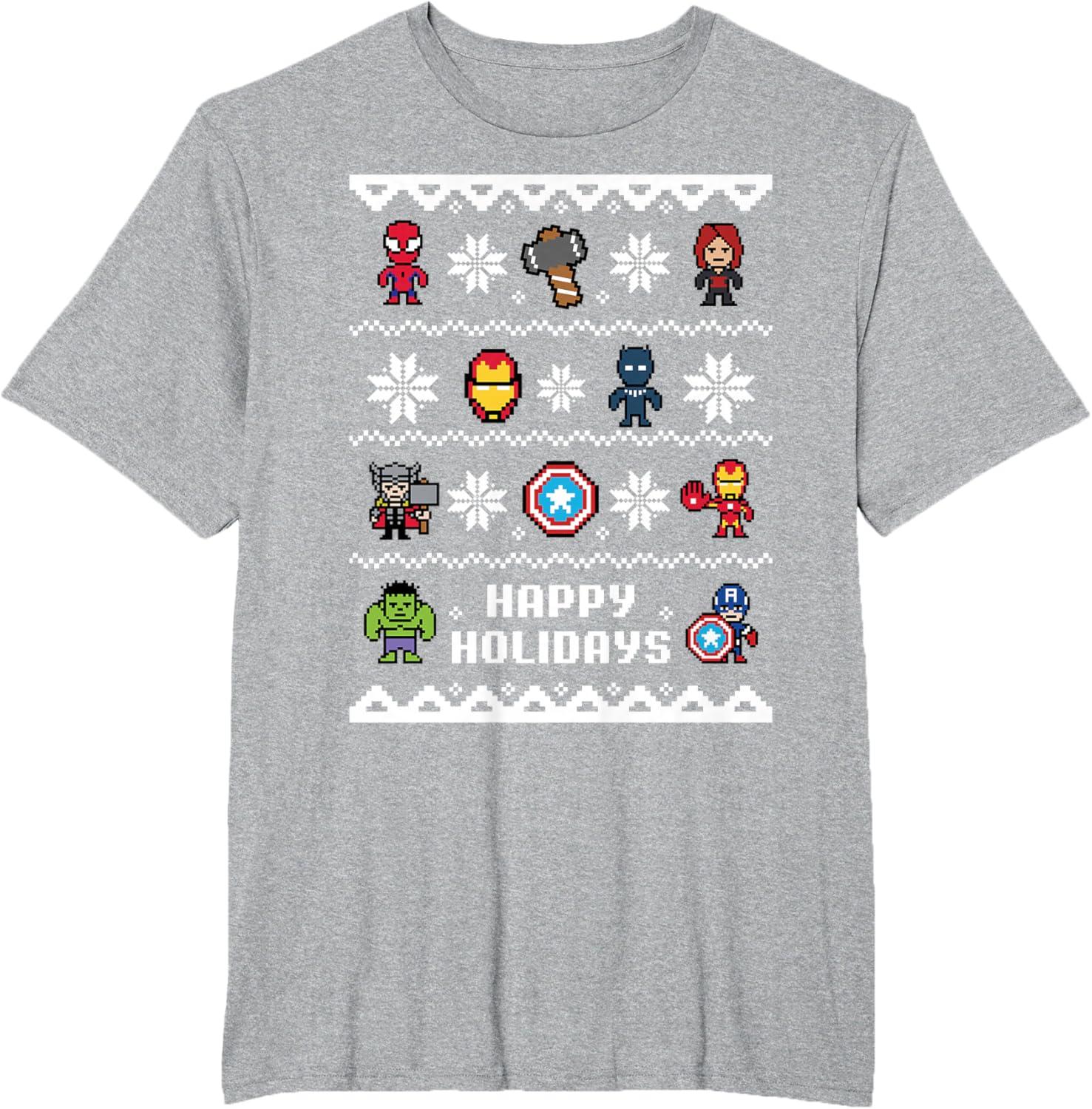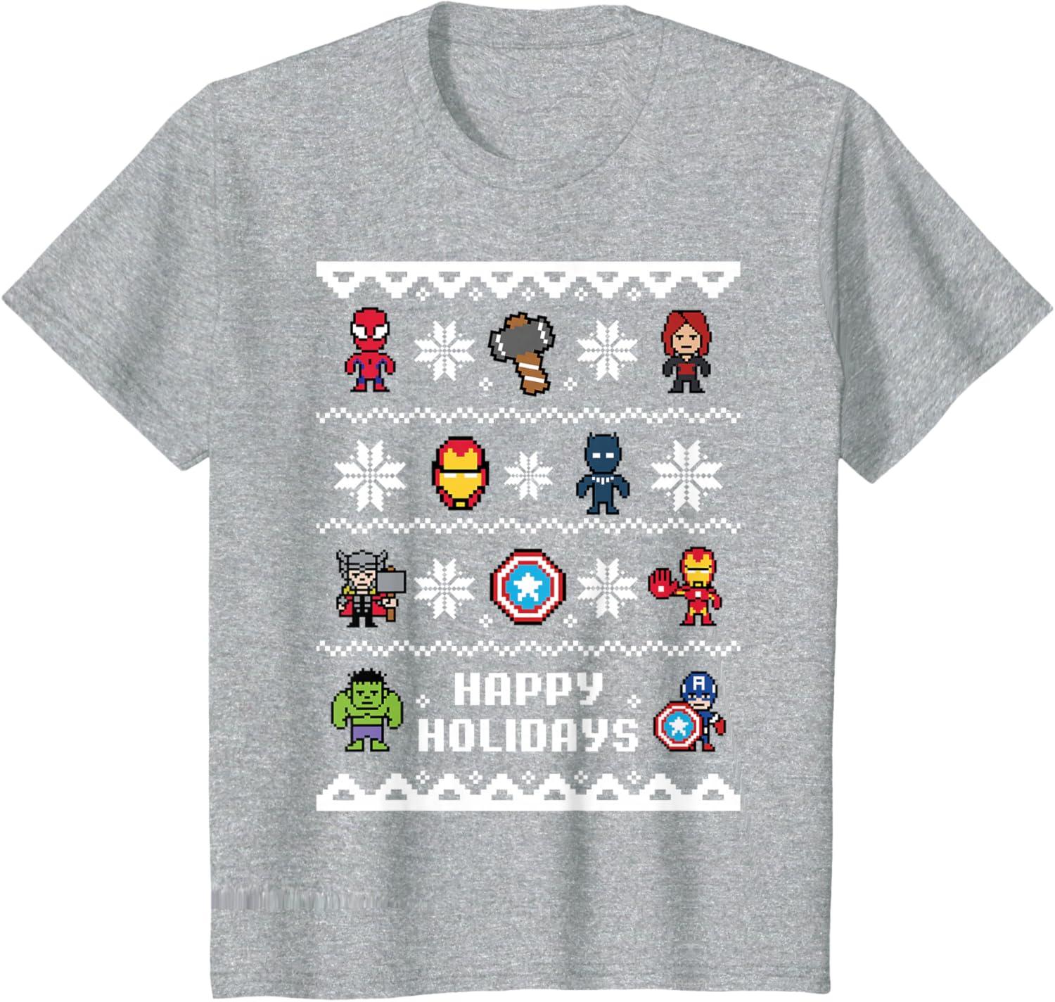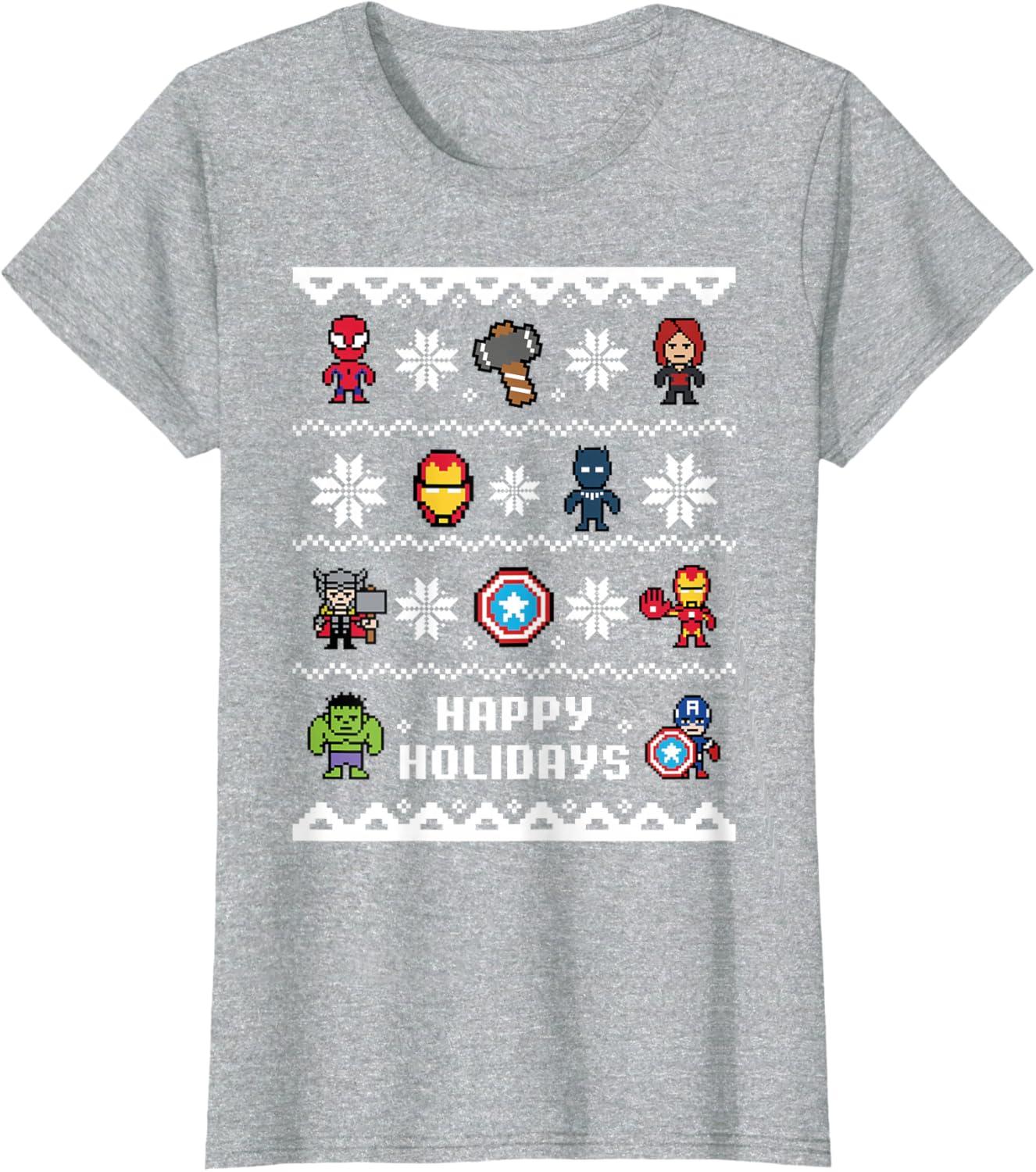 Marvel Avengers Christmas Sweater Happy Holidays T-Shirt(Heather Grey)