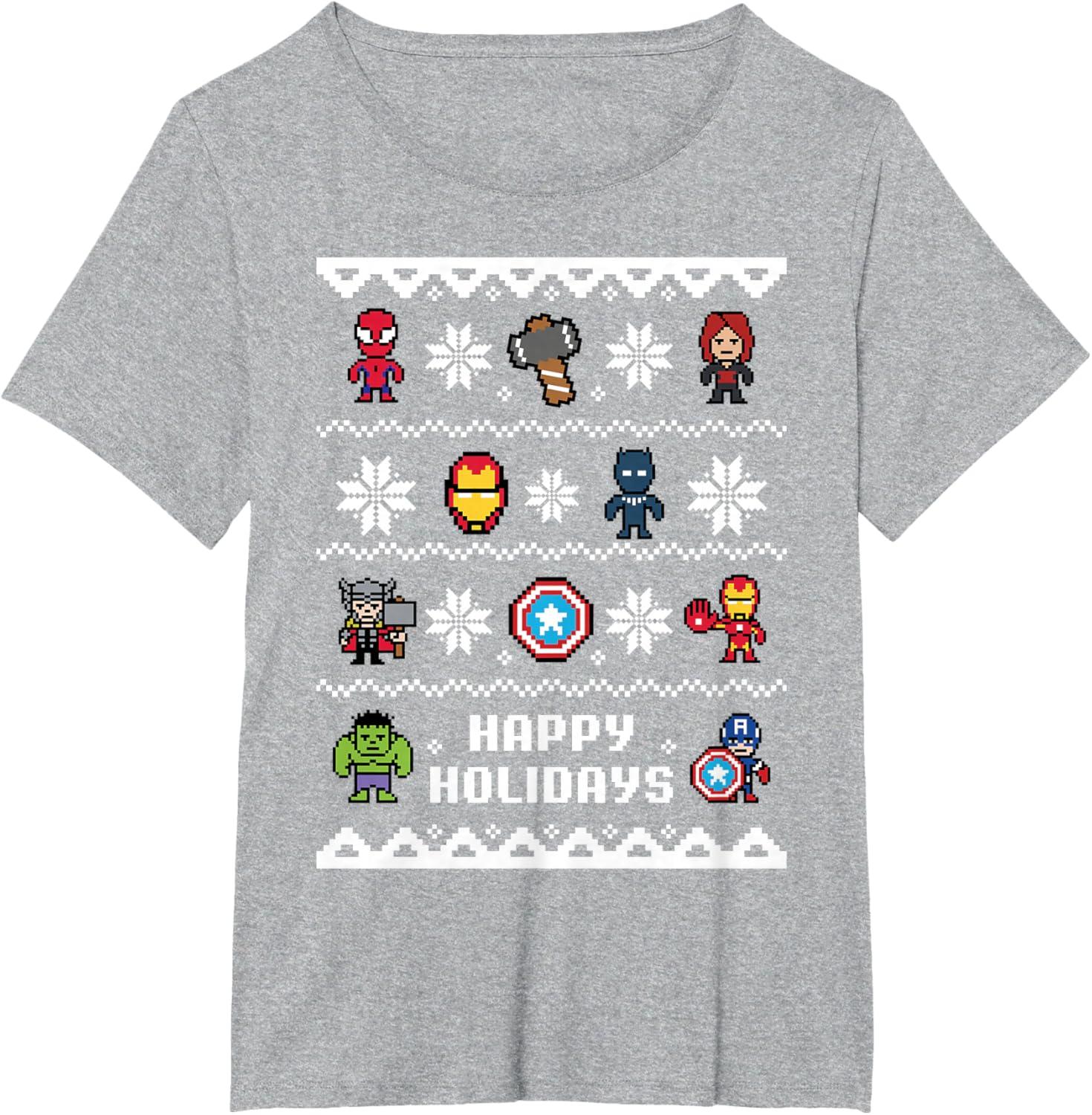 Marvel Avengers Christmas Sweater Happy Holidays T-Shirt(Dark Heather Grey)