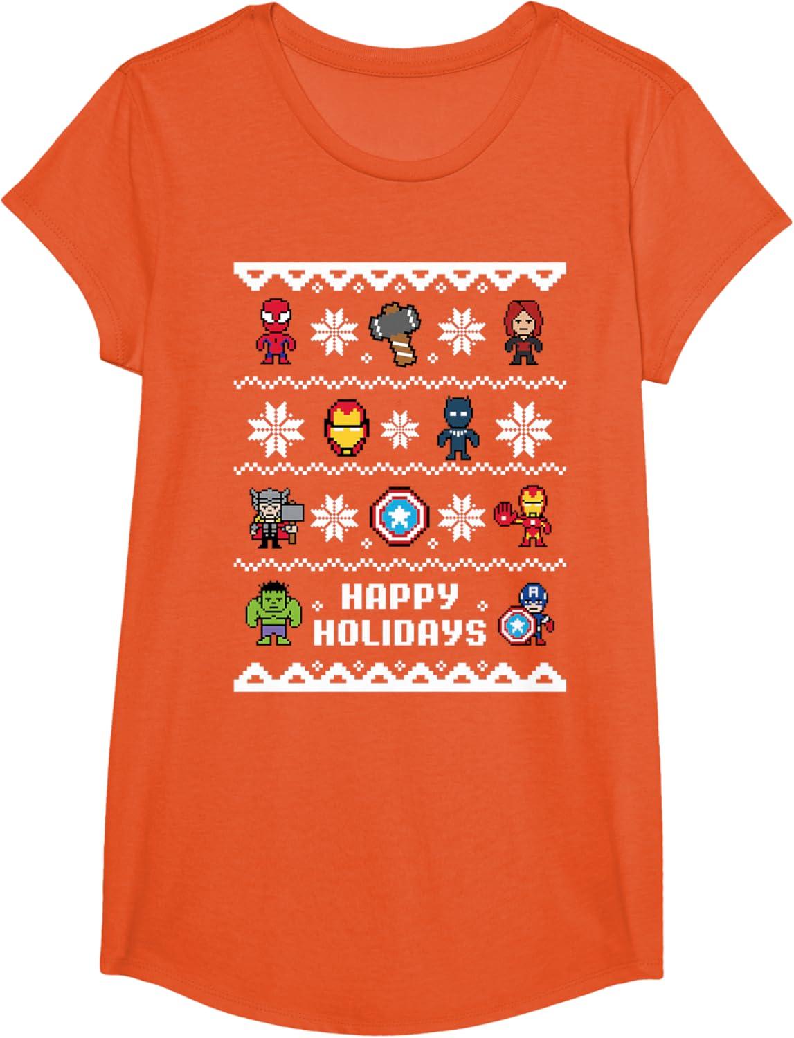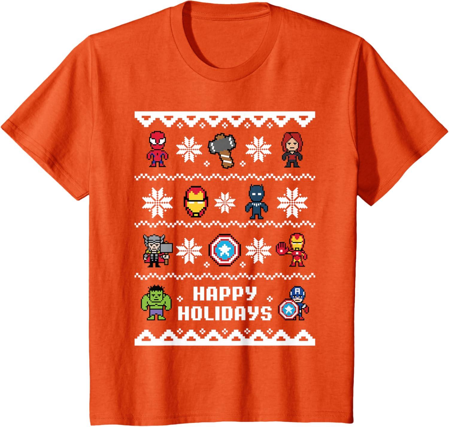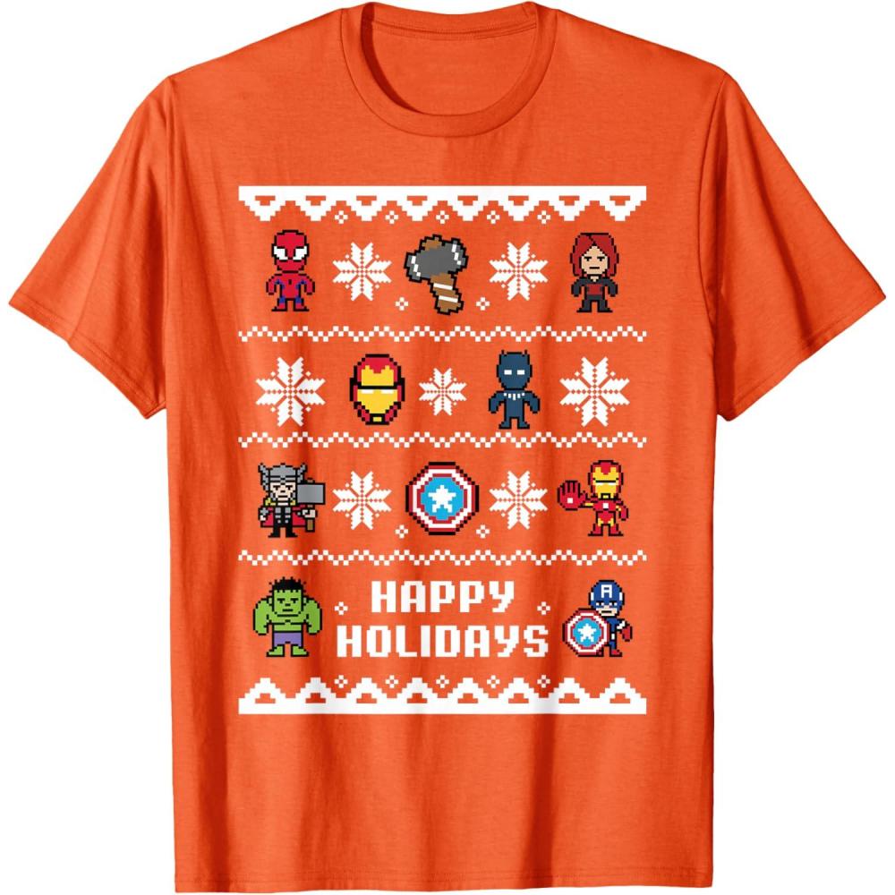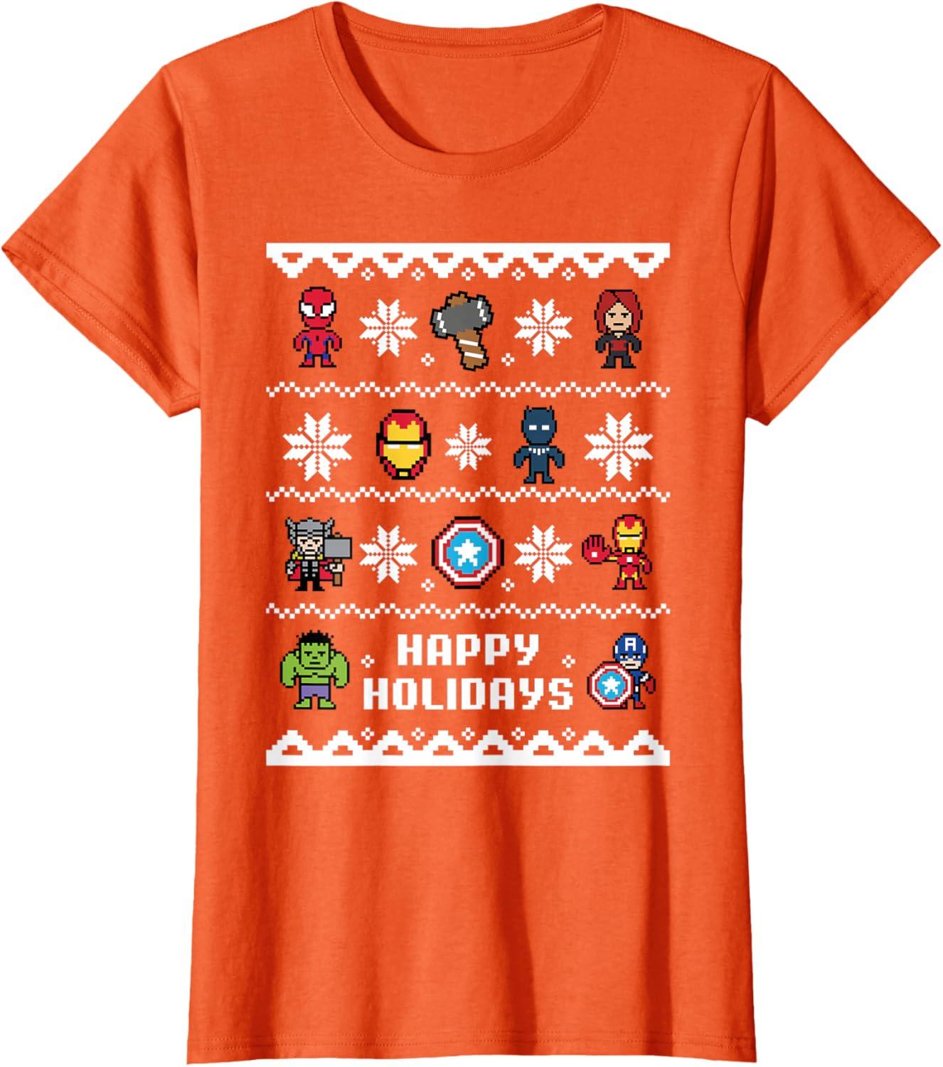 Get the Marvel Avengers Christmas Sweater Happy Holidays T-Shirt(Orange) you want at a price you can afford with our markdown sale.