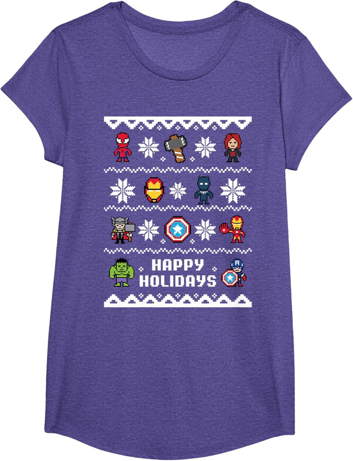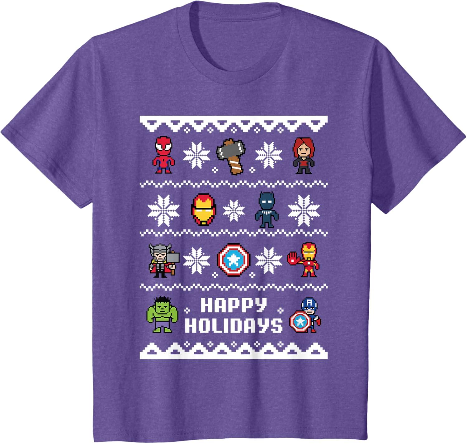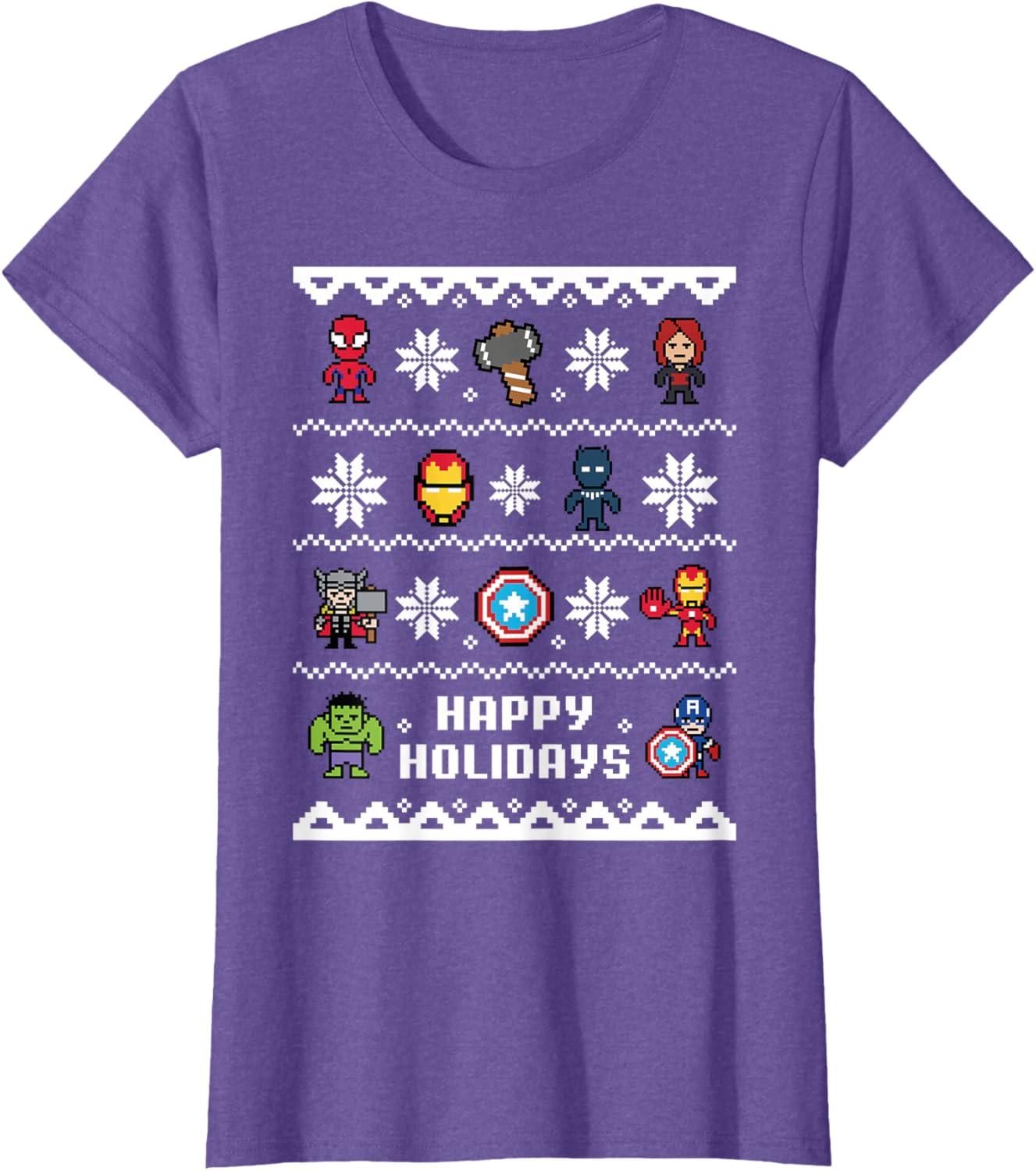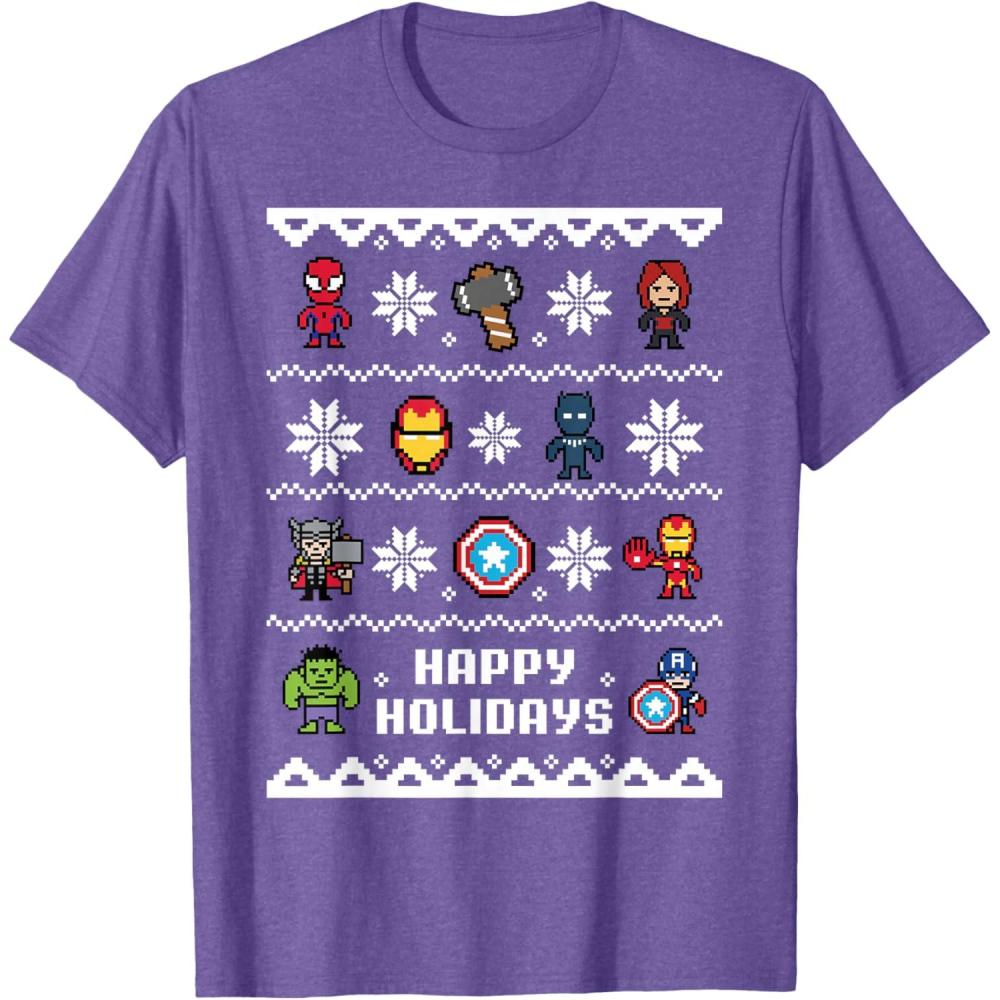 Marvel Avengers Christmas Sweater Happy Holidays T-Shirt(Purple Heather)