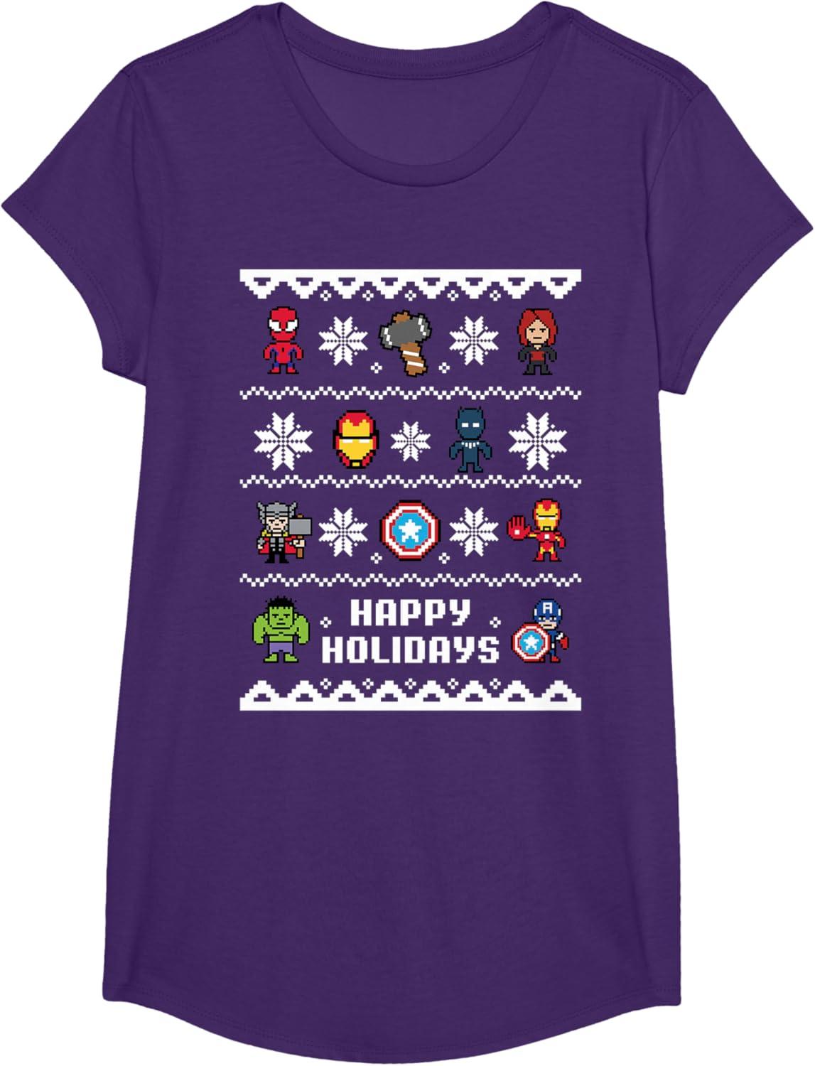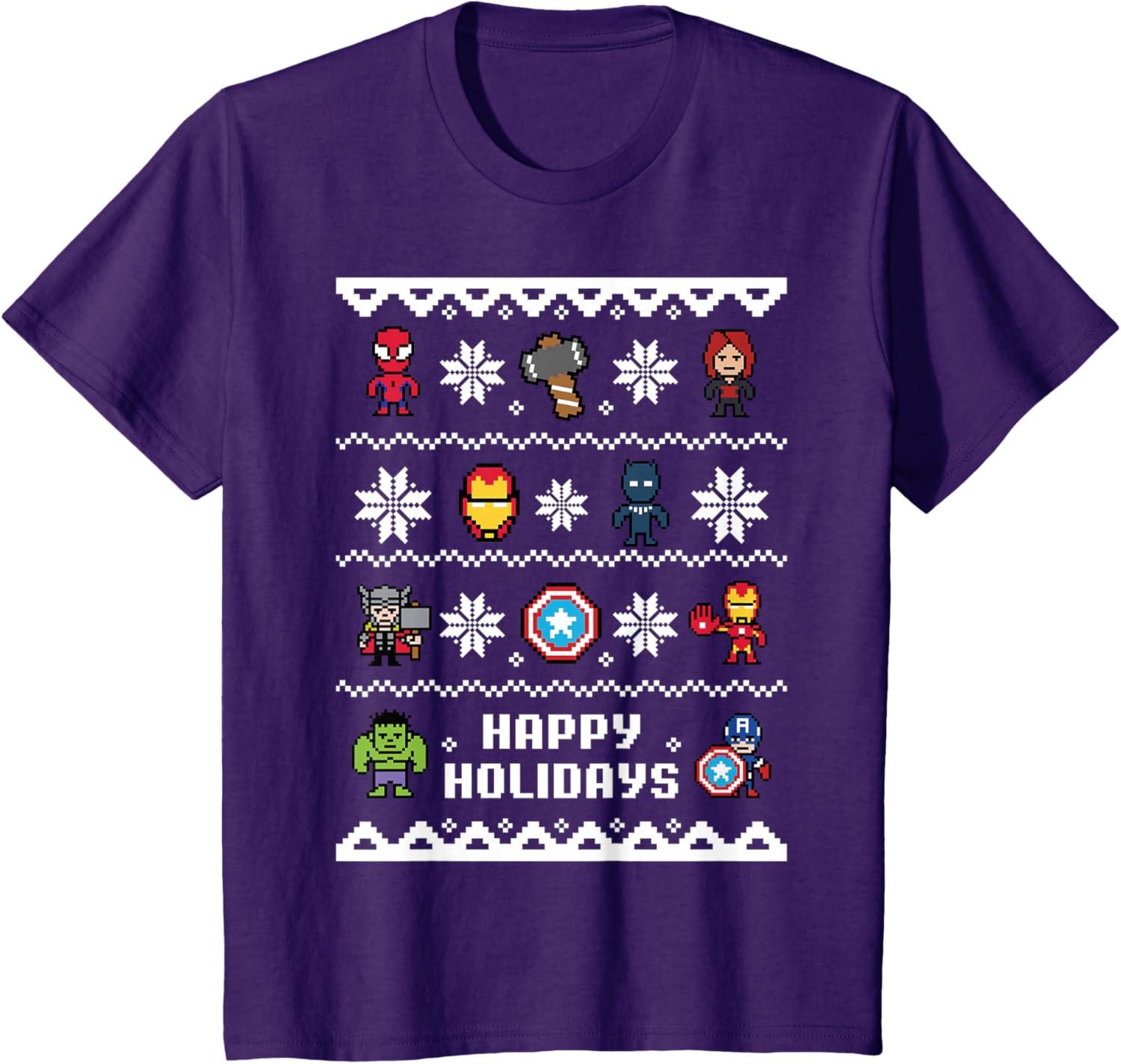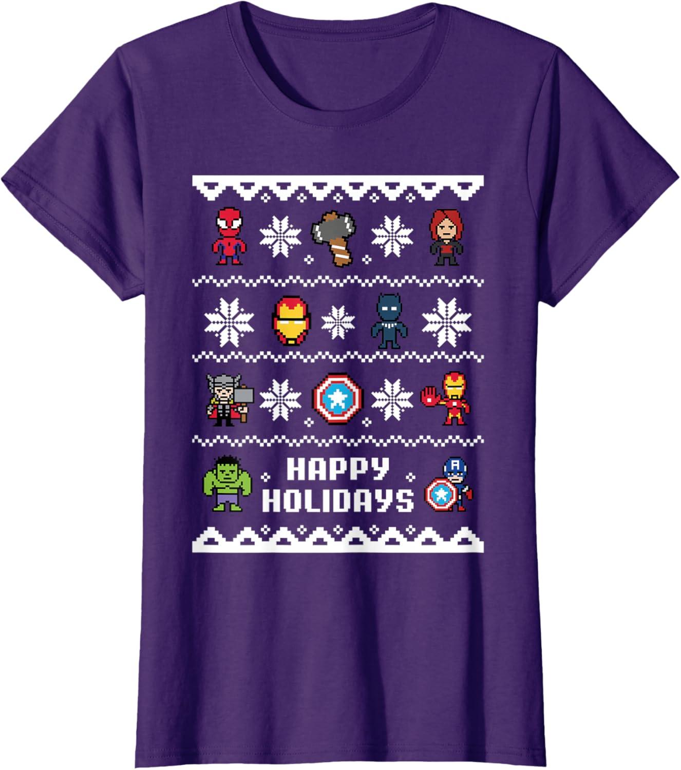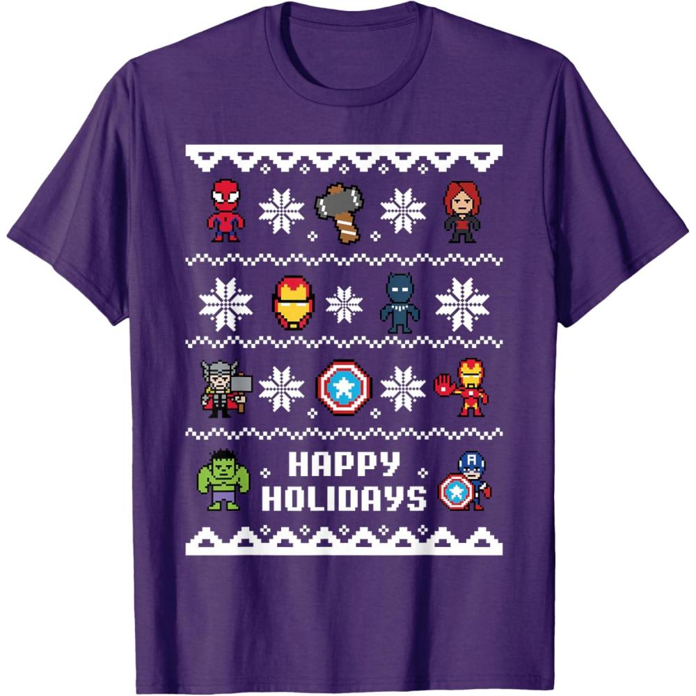 Marvel Avengers Christmas Sweater Happy Holidays T-Shirt(Purple)
