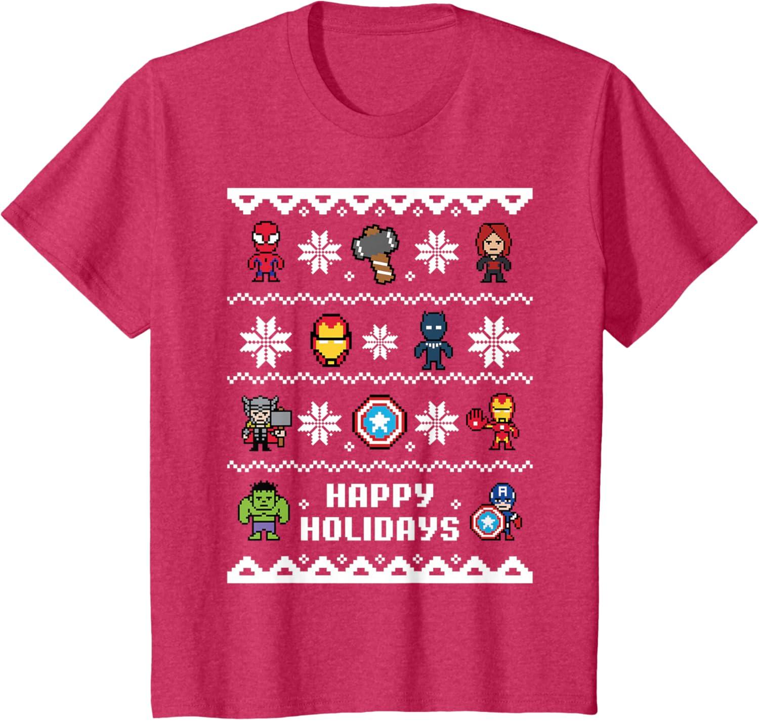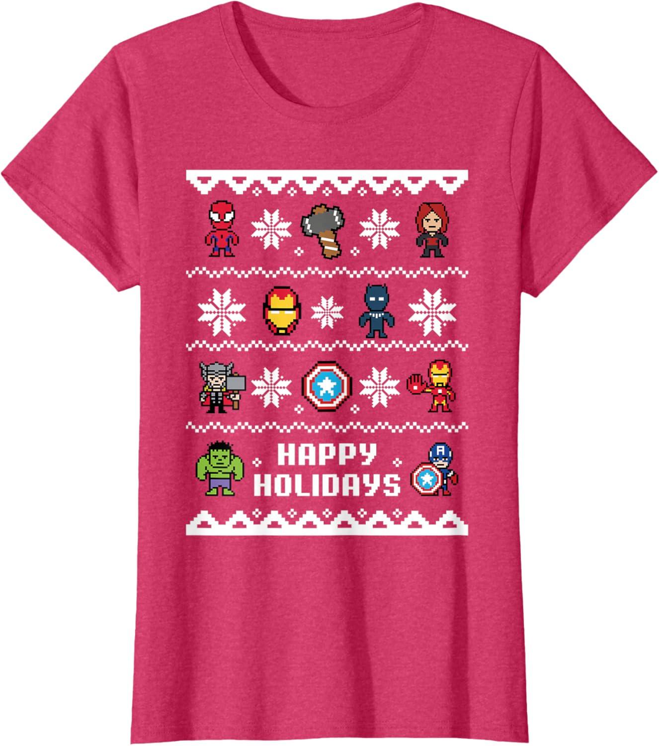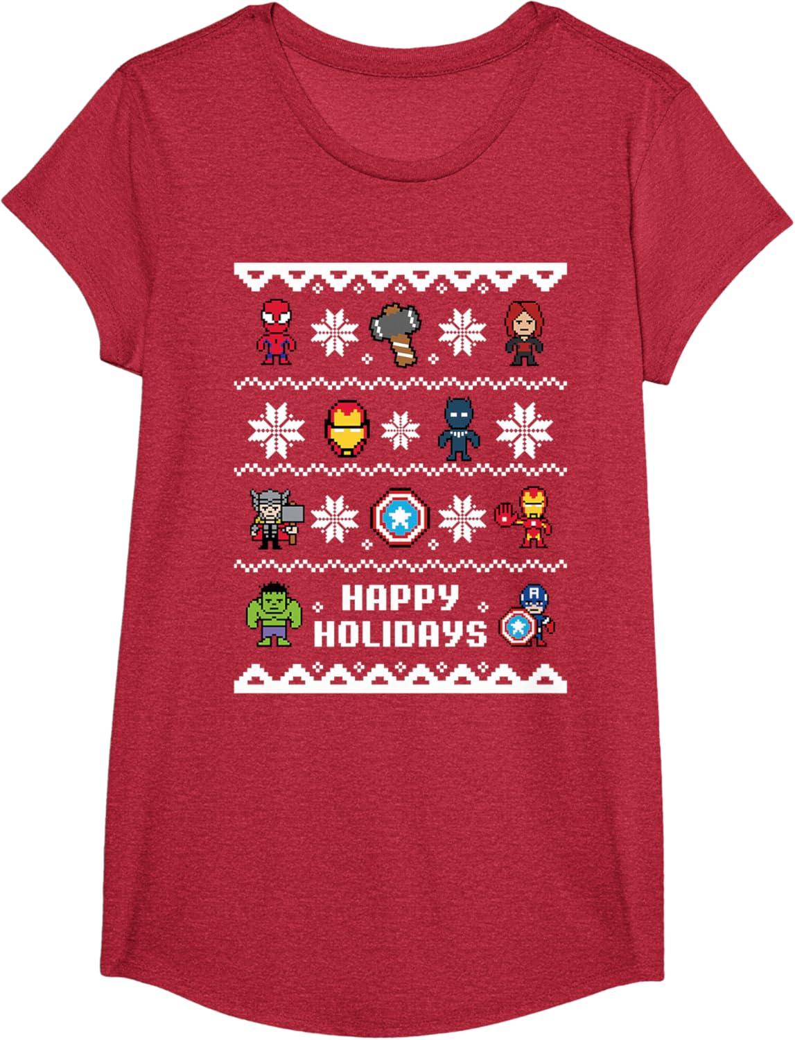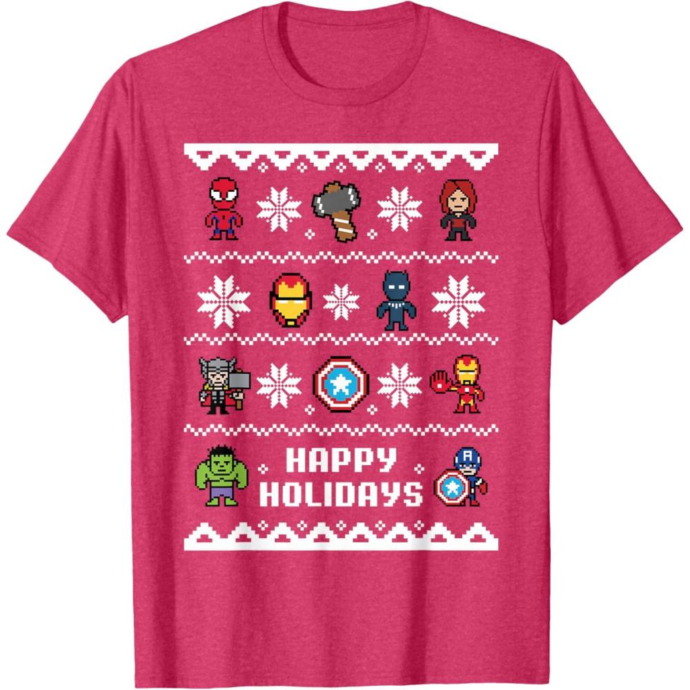 Marvel Avengers Christmas Sweater Happy Holidays T-Shirt(Red Heather)