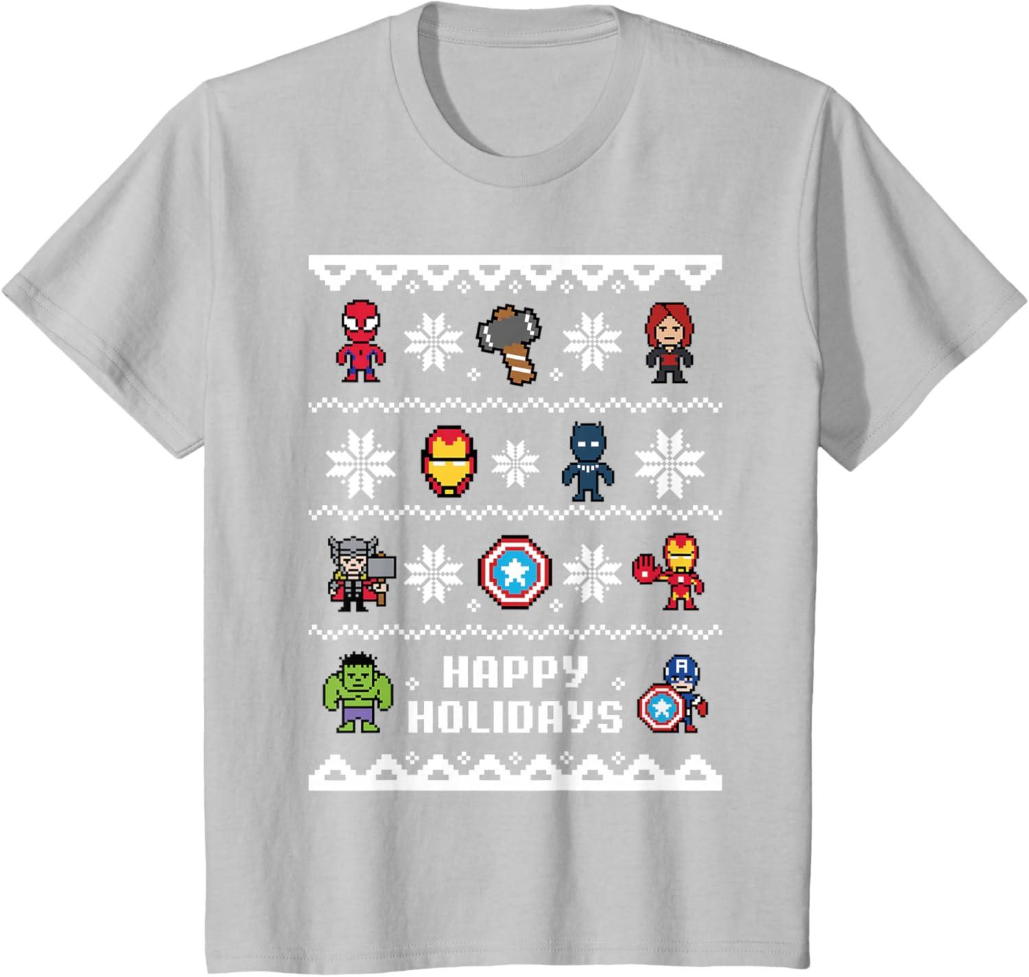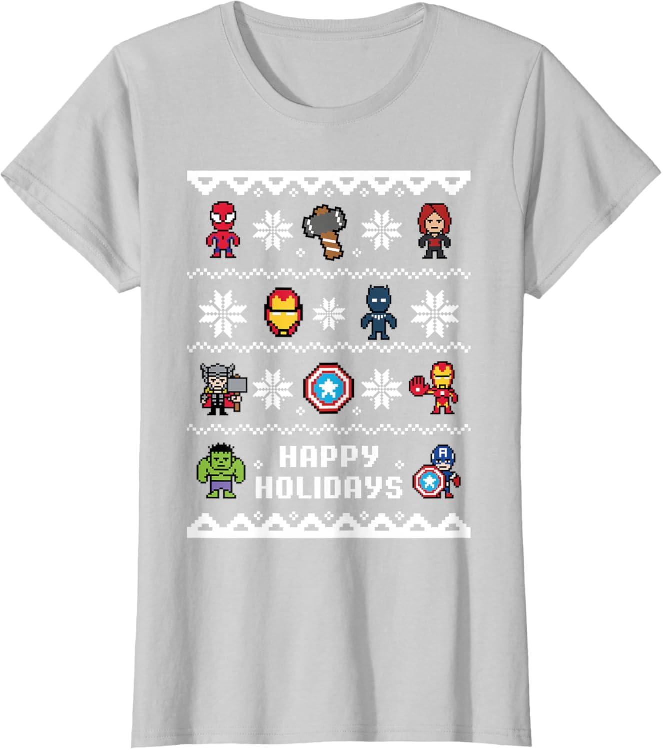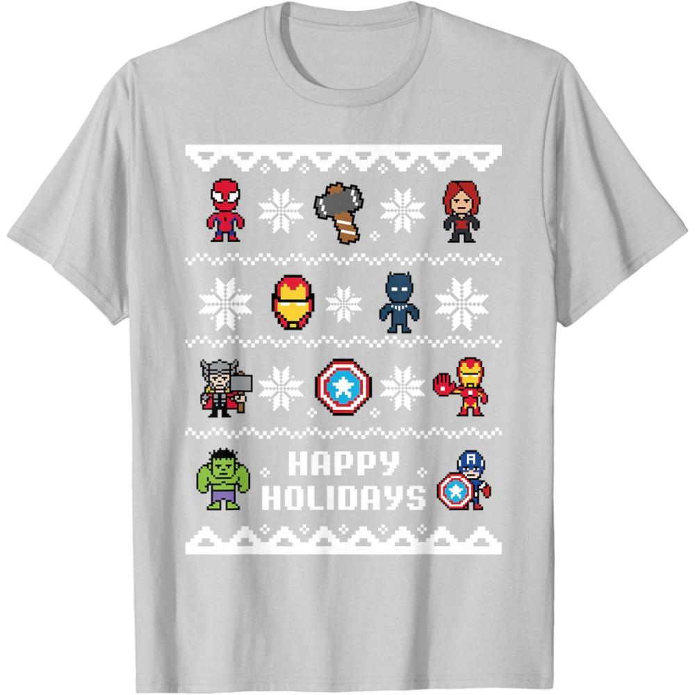 Marvel Avengers Christmas Sweater Happy Holidays T-Shirt(Silver Grey)