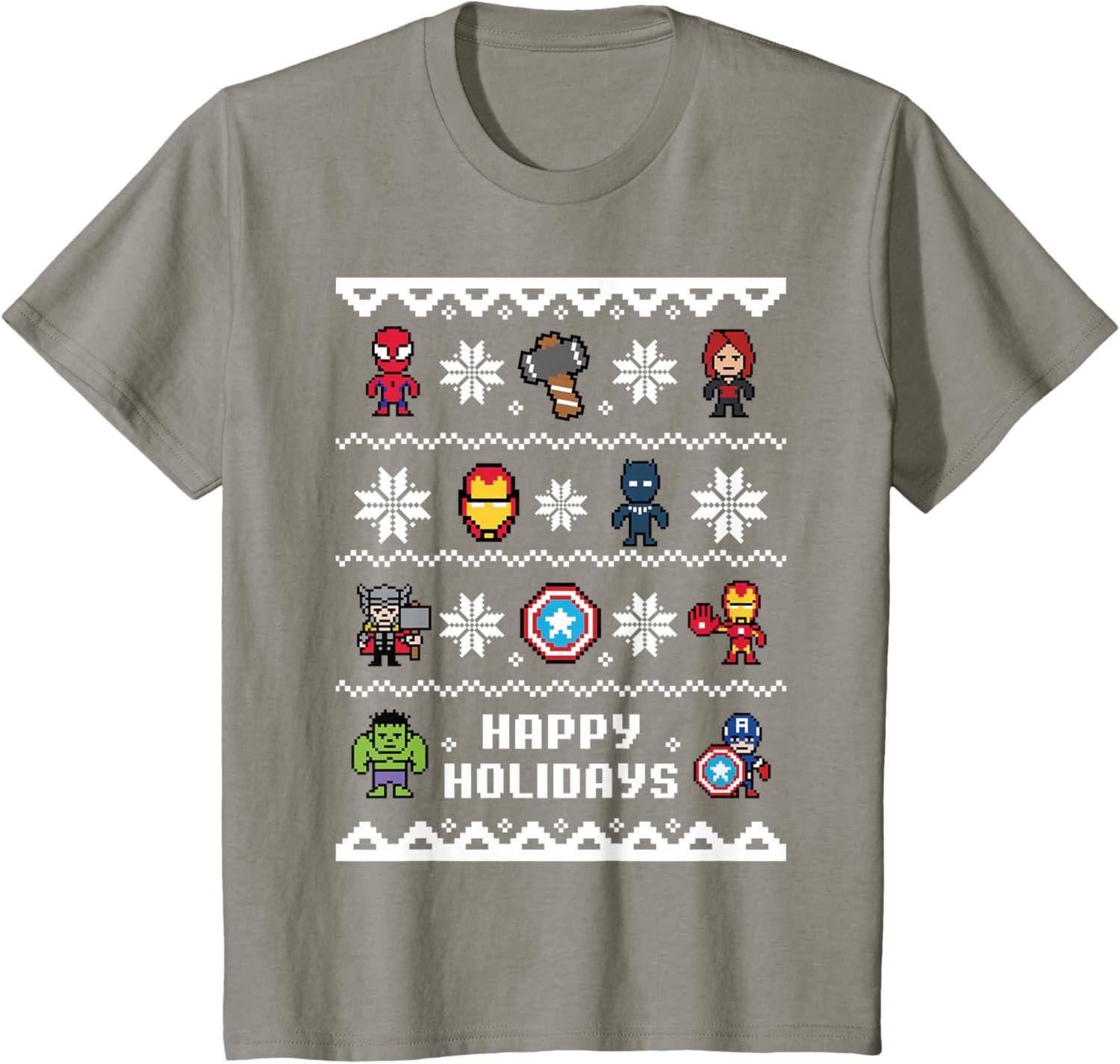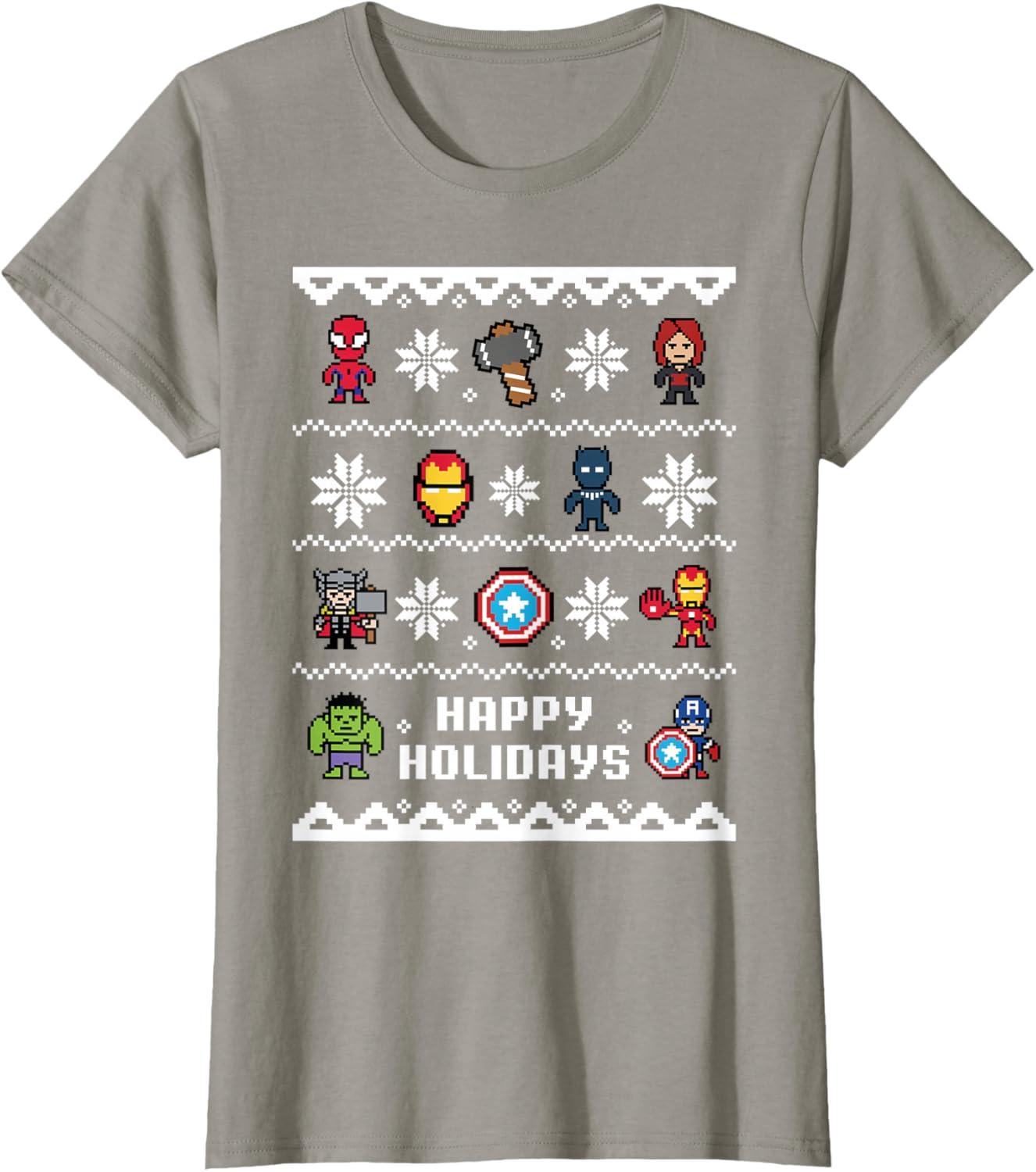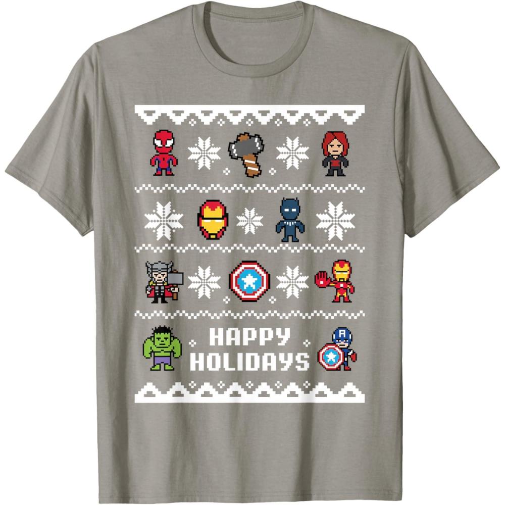 Marvel Avengers Christmas Sweater Happy Holidays T-Shirt(Slate Grey)