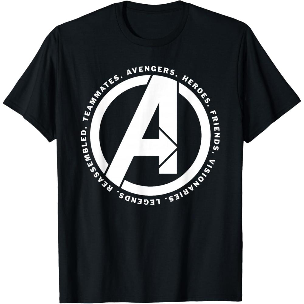 Are you ready to do whatever it takes? Earth's Mightiest Heroes Reassemble to make things right after Thanos wipes out half the universe and you'll want to show solidarity by wearing this cool Avengers: Endgame tee shirt with art inspired by the Marvel Studios movie. It features the Avengers logo with inspiring words: “Avengers. Heroes Friends Visionaries Legends Reassembled. Teammates.” If you're searching for the perfect gift for Marvel fans, this t-shirt is it.
