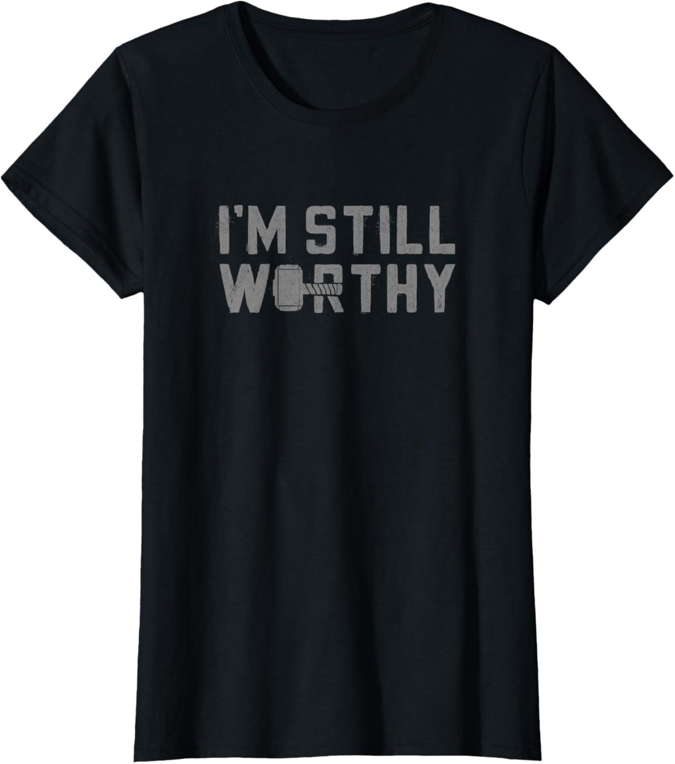Summon the inner wisdom of Thor with every wear of this striking Marvel shirt. Featuring typography inspired by the Asgardian warrior proclaiming “I'm still worthy” in Marvel Avengers: Endgame, this shirt will lend thunderous flair to your self-assured style statement.