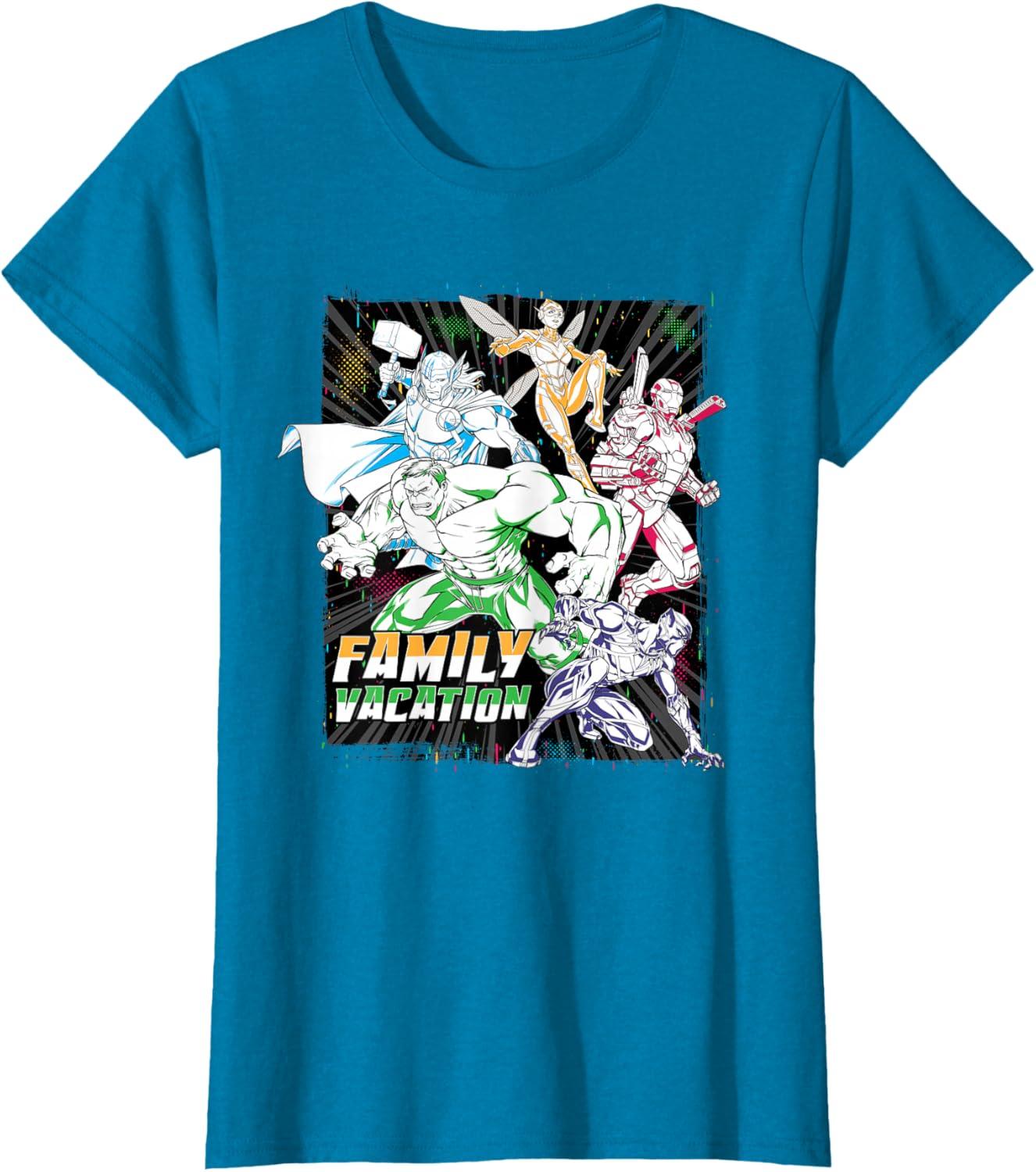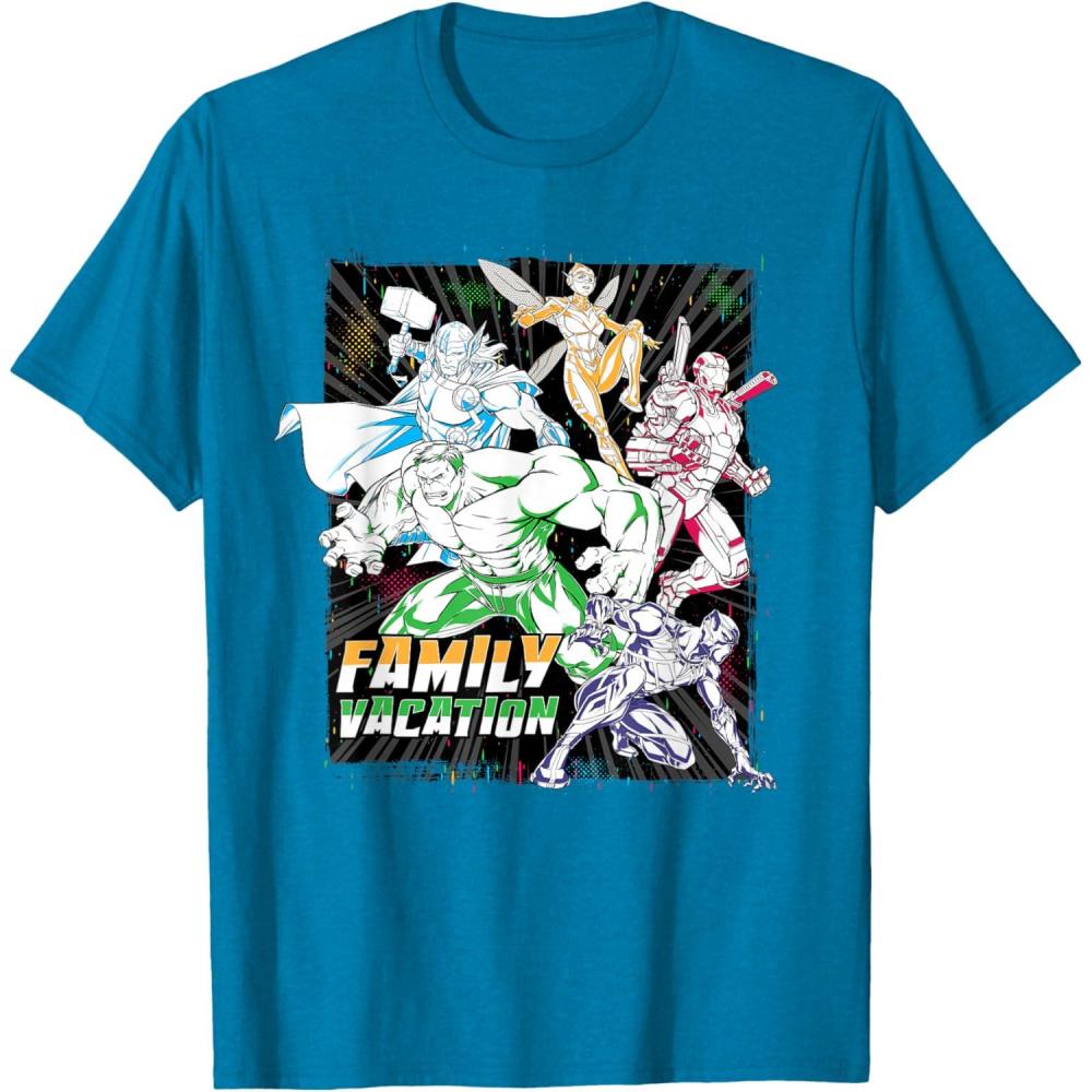 Marvel Avengers Family Vacation Trip Travel Line Art T-Shirt(Sapphire Blue)