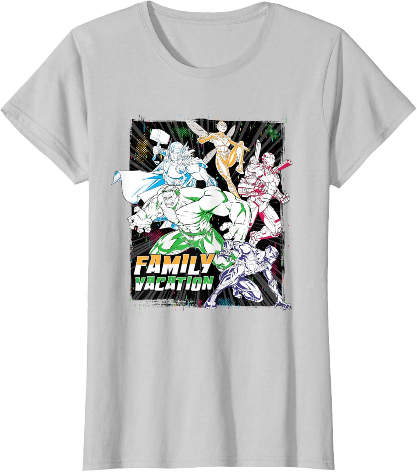 Marvel Avengers Family Vacation Trip Travel Line Art T-Shirt(Silver Grey)