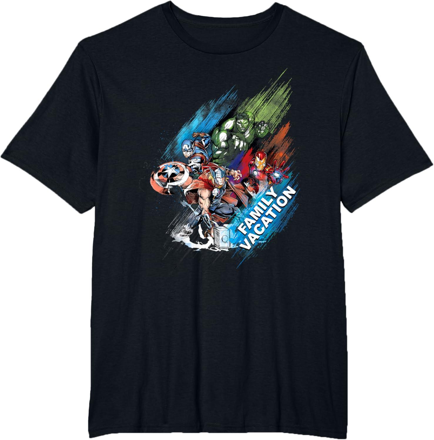 imageMarvel Avengers Family Vacation Trip Travel Sketch Art TShirtBlack