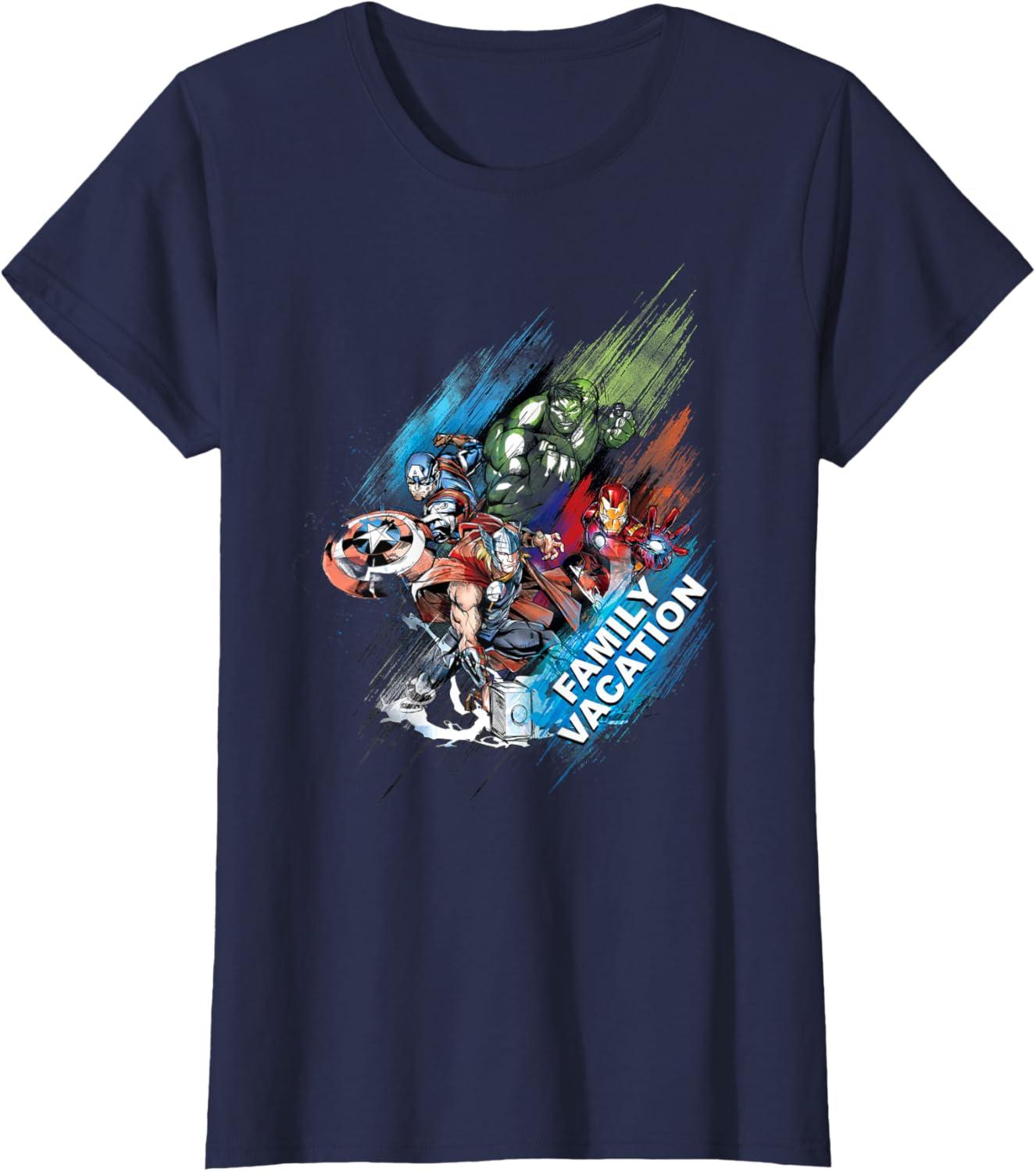 Be the first to review “Marvel Avengers Family Vacation Trip Travel Sketch Art T-Shirt(Navy Blue)”