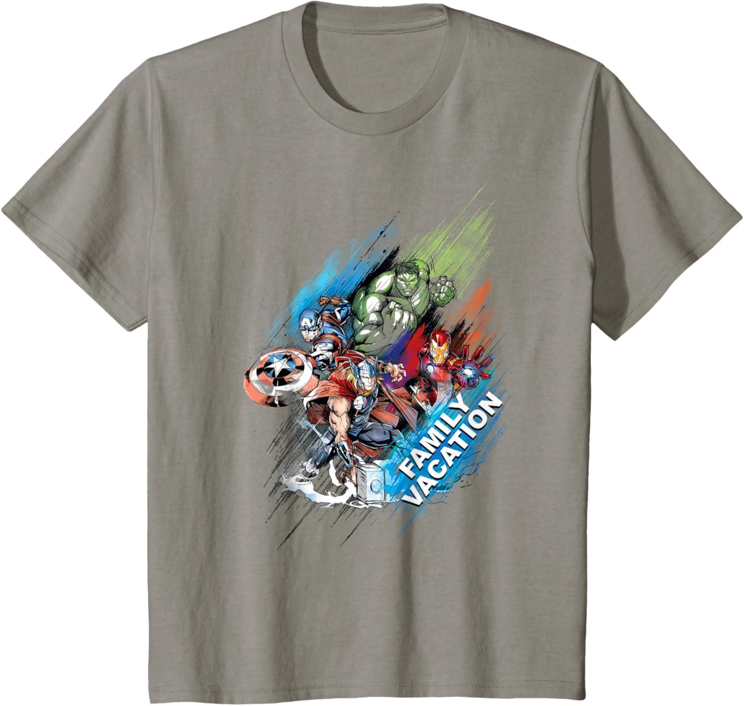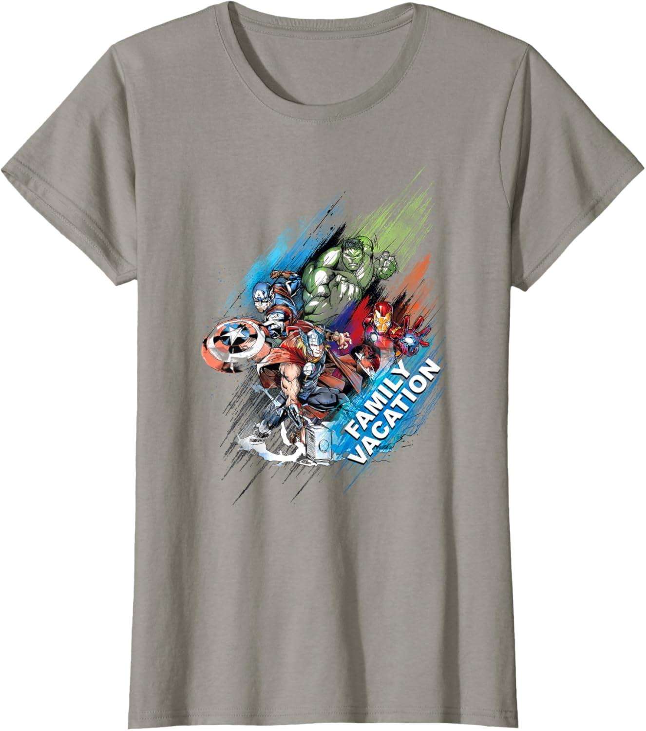 Marvel Avengers Family Vacation Trip Travel Sketch Art T-Shirt(Slate Grey)