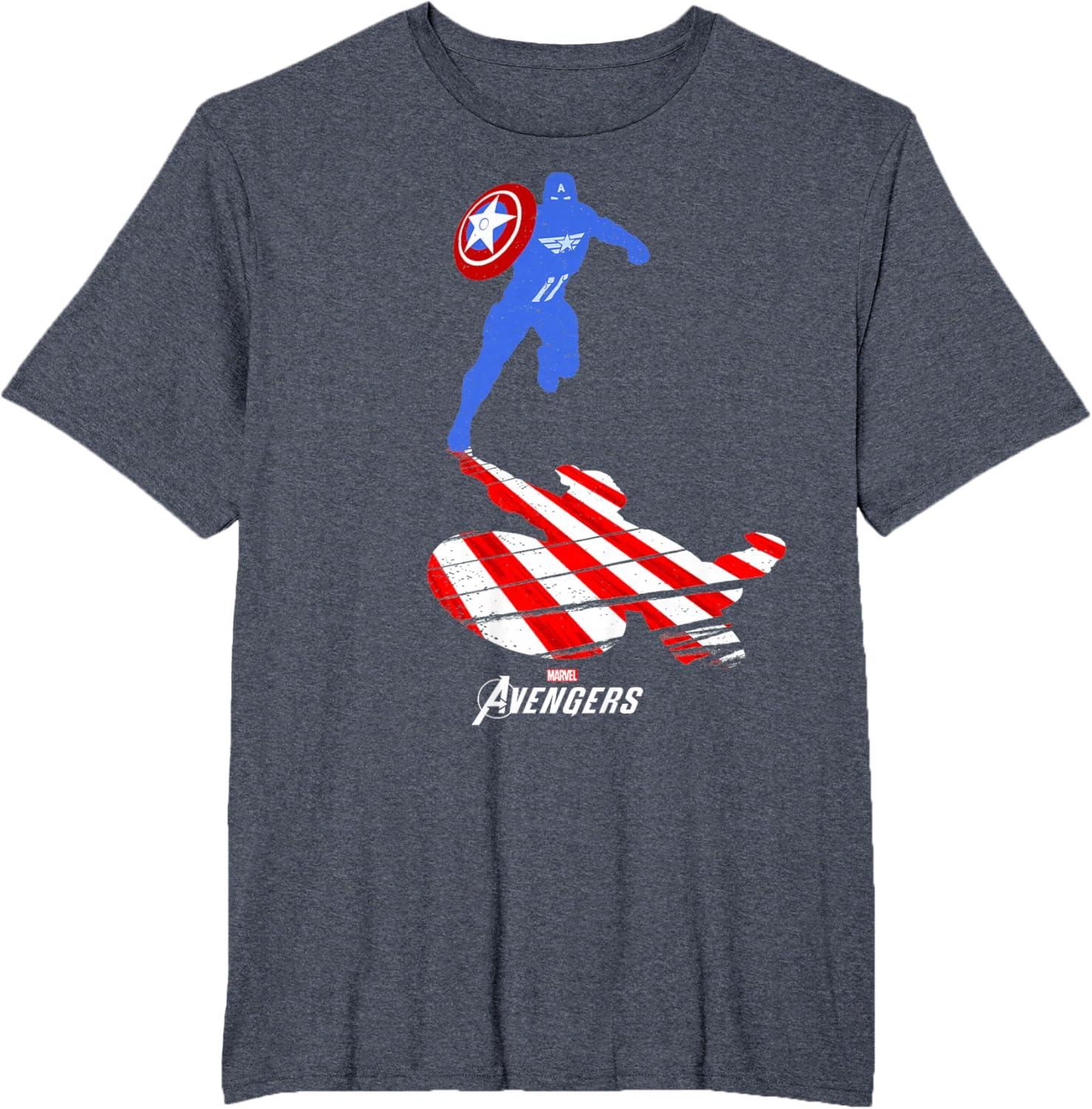 Marvel Avengers Game Captain America Silhouette T-Shirt(Heather Blue)
