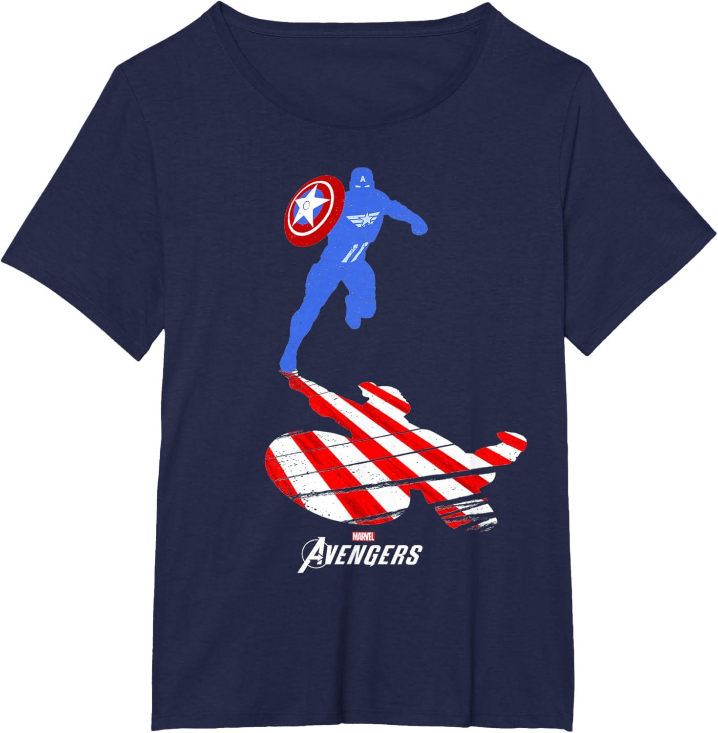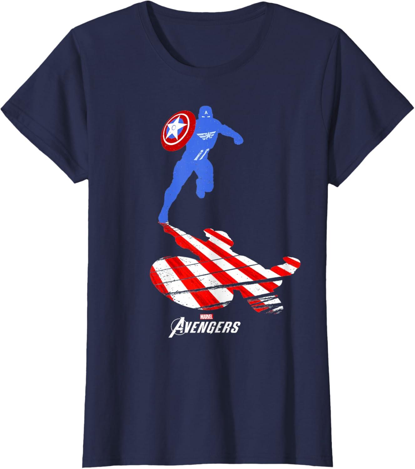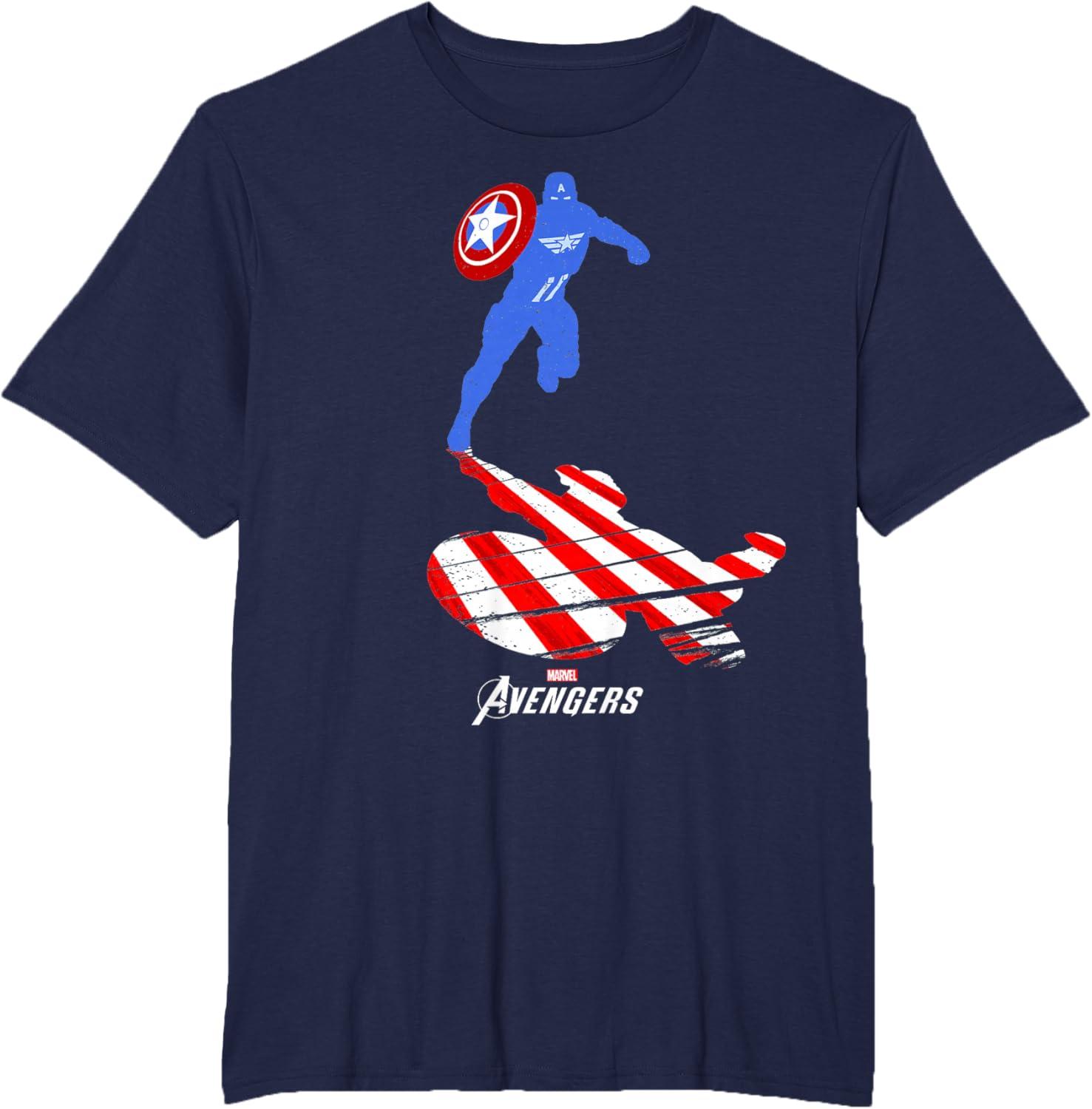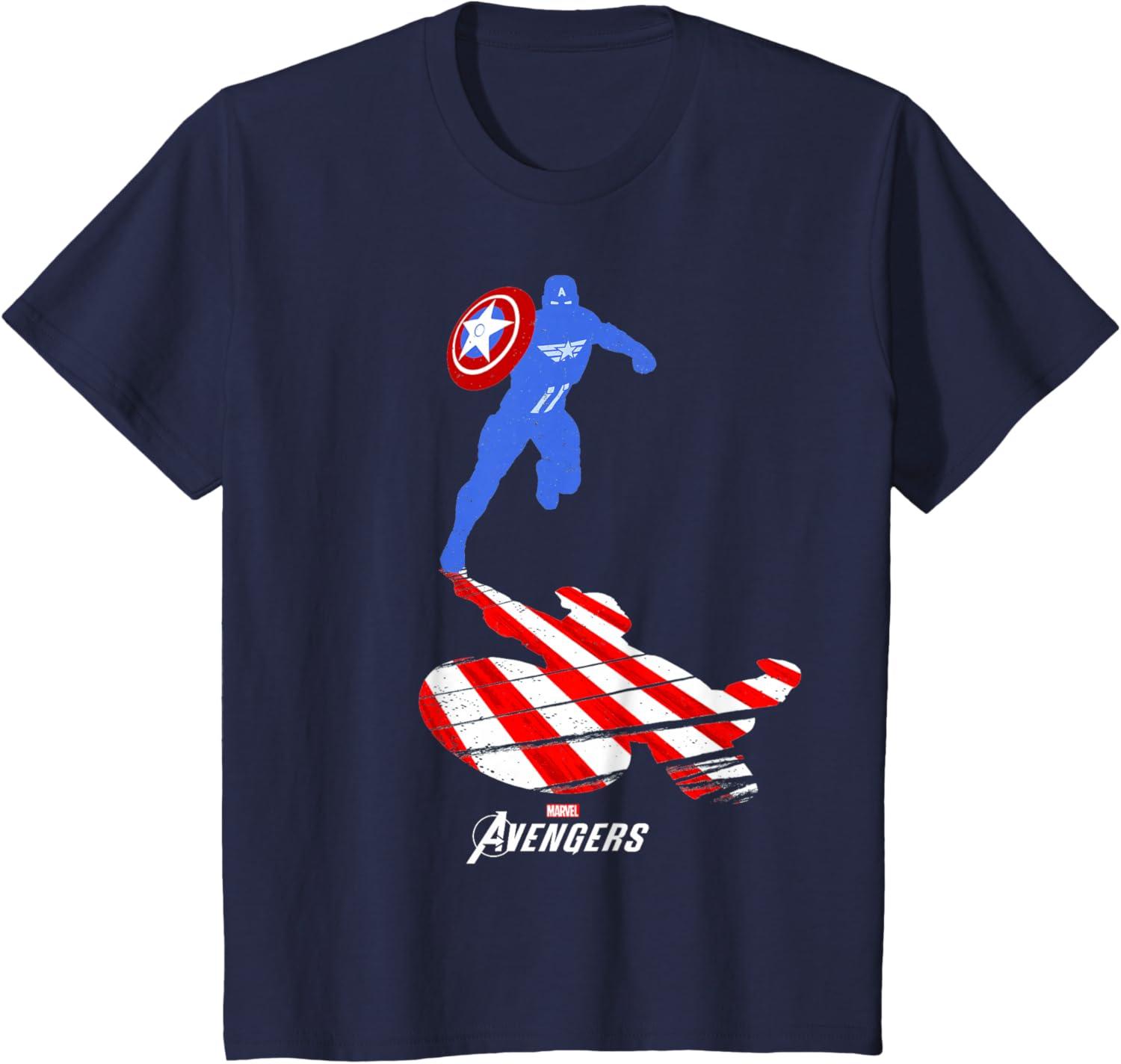 Marvel Avengers Game Captain America Silhouette T-Shirt(Navy Blue)