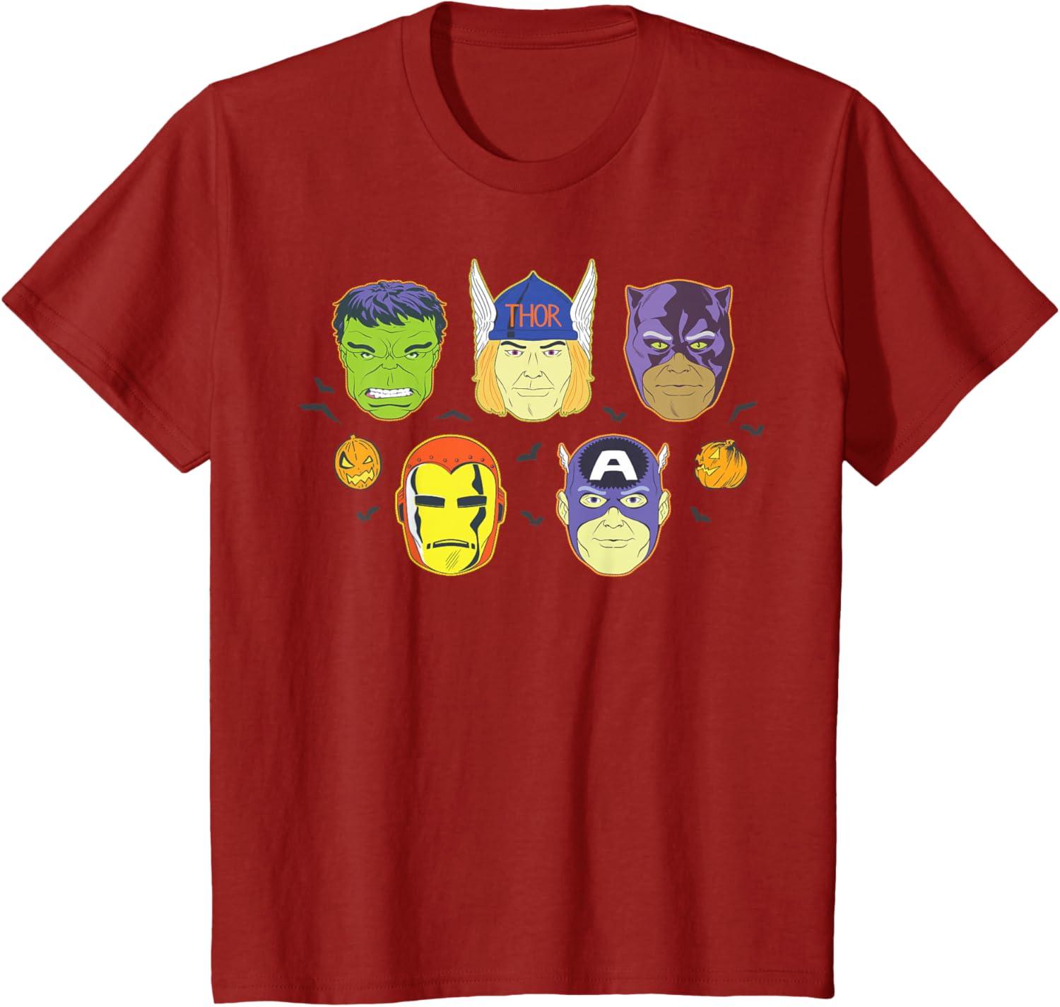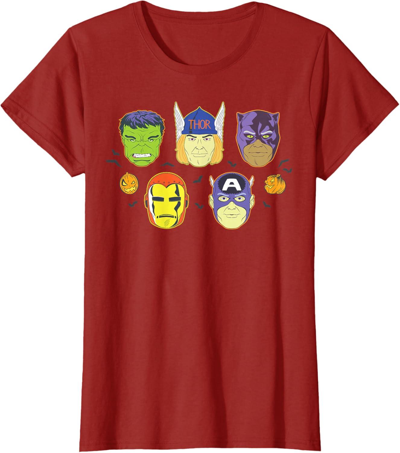 Marvel Avengers Halloween Retro Vintage Masks Costume T-Shirt(Cranberry Red)