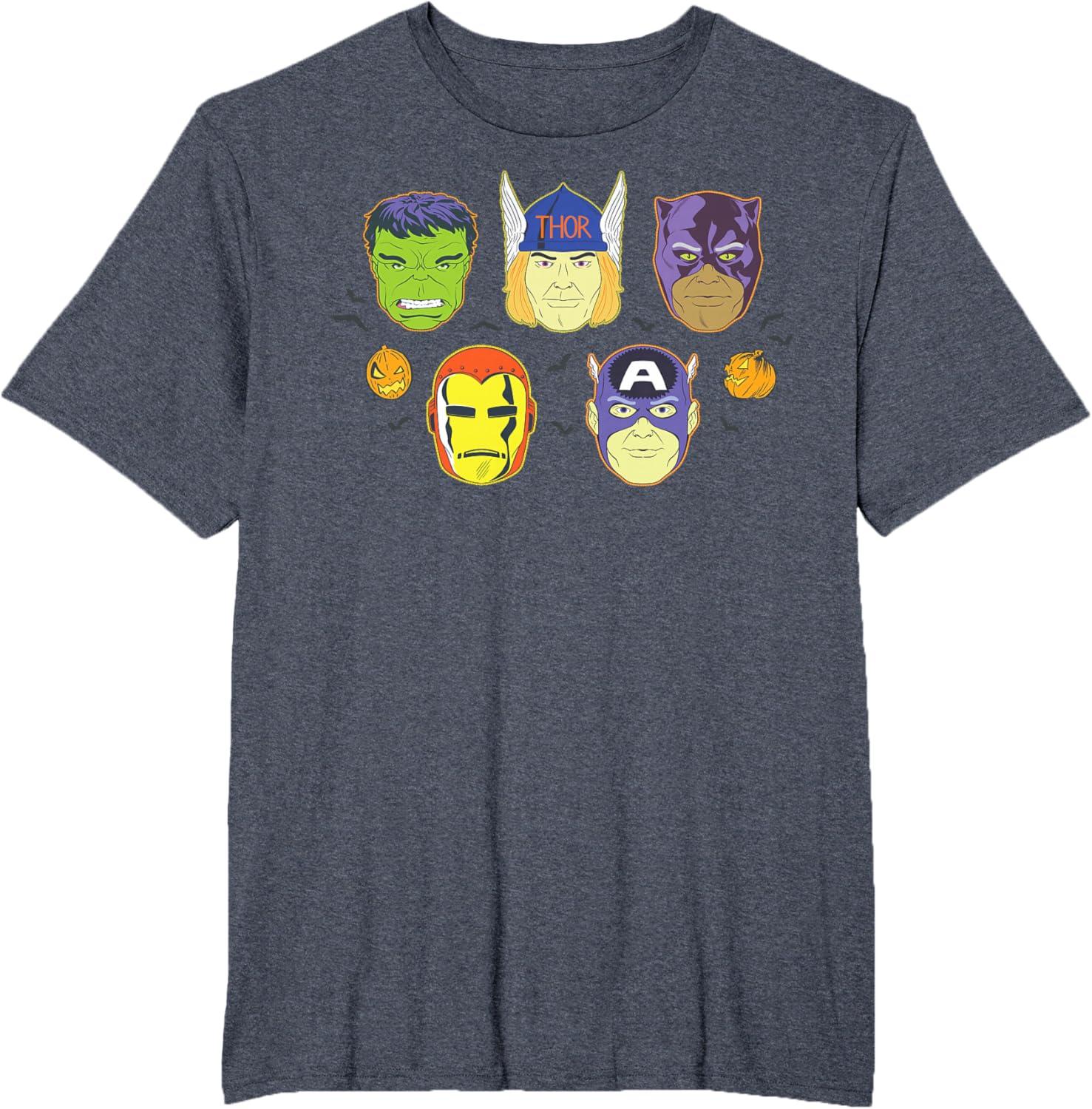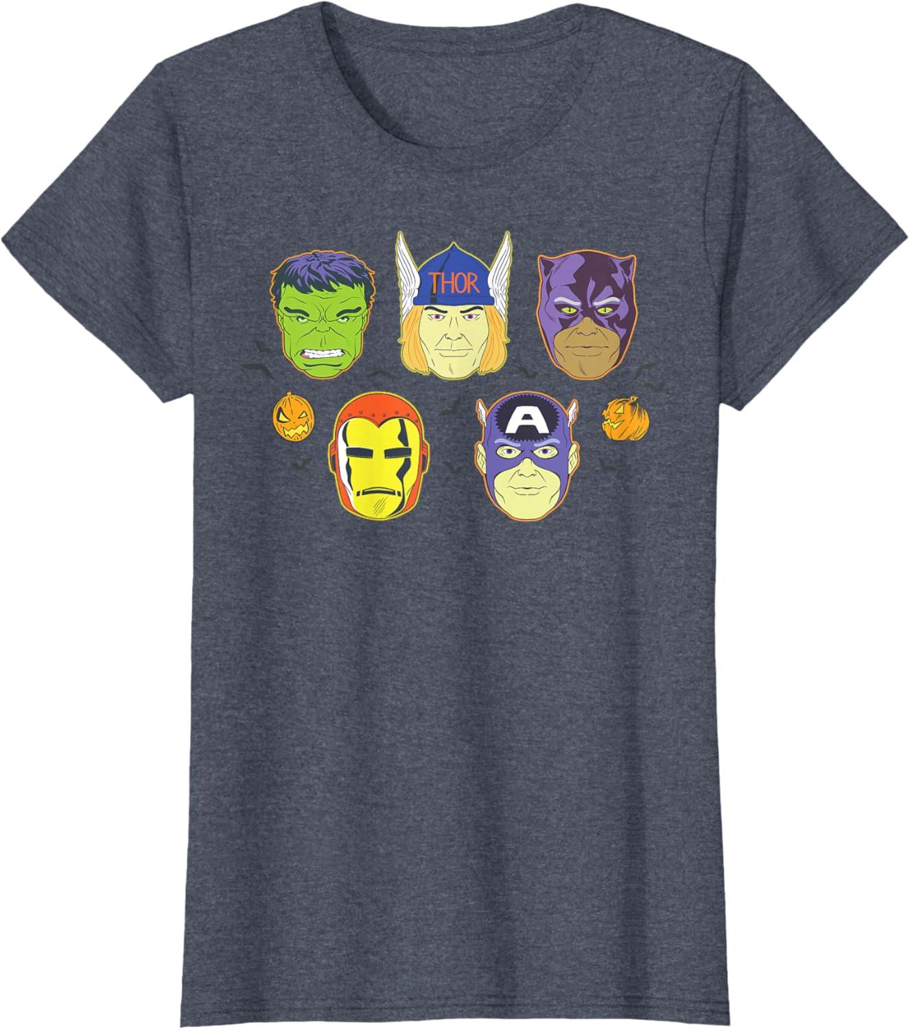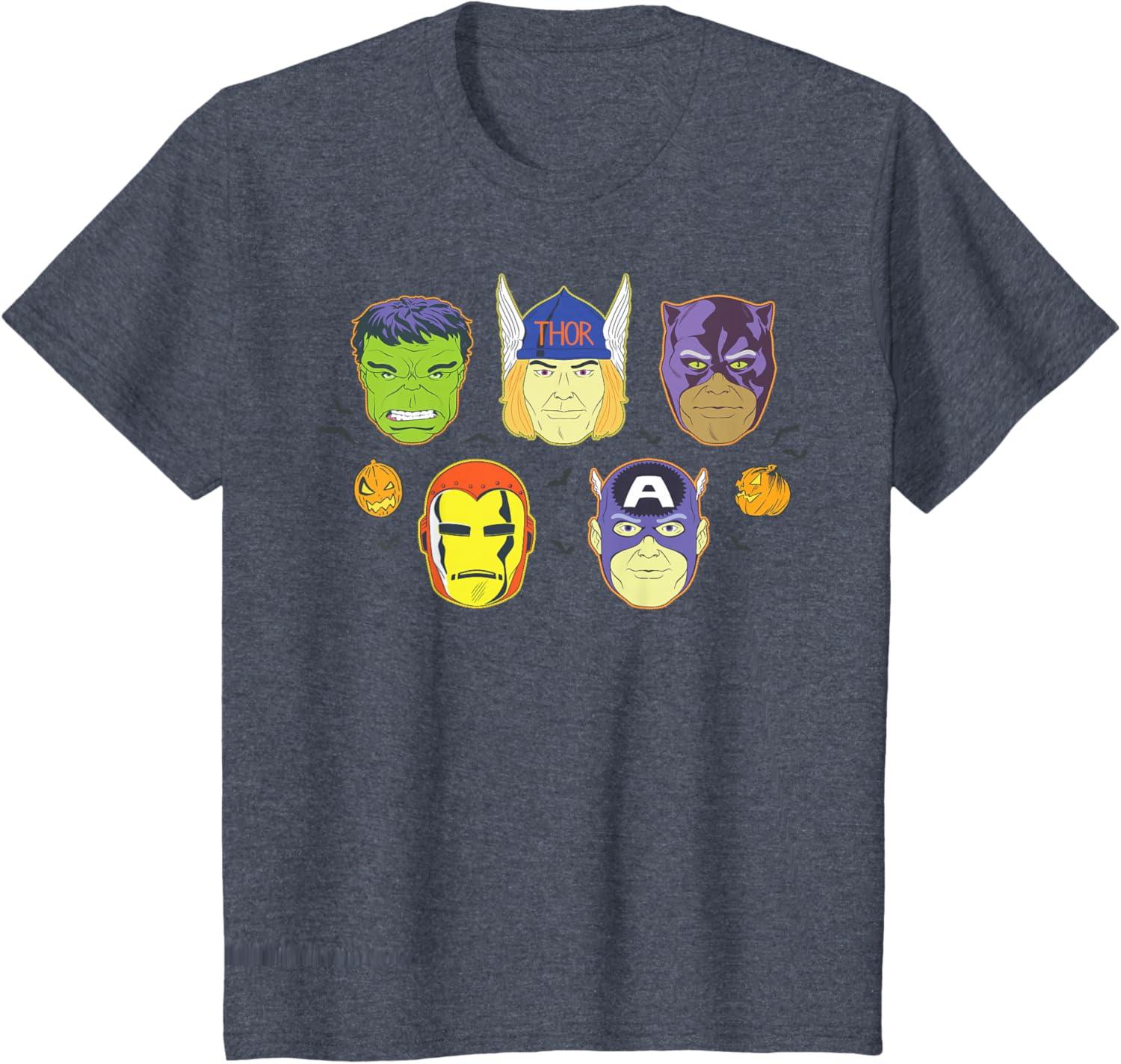 Be the first to review “Marvel Avengers Halloween Retro Vintage Masks Costume T-Shirt(Heather Blue)”