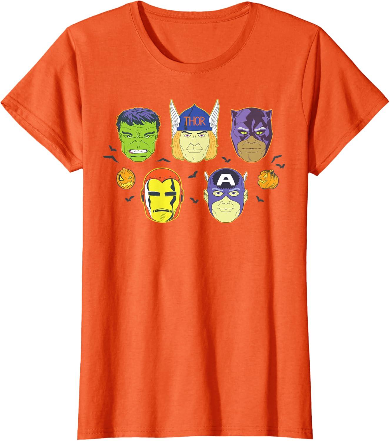 Be the first to review “Marvel Avengers Halloween Retro Vintage Masks Costume T-Shirt(Orange)”