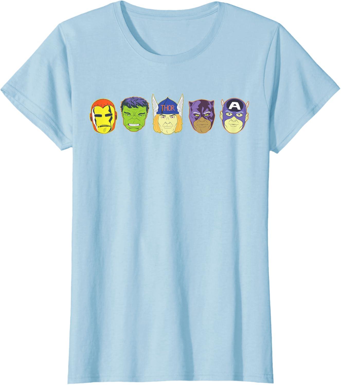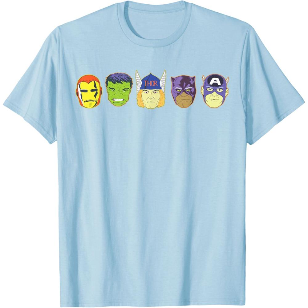 Be the first to review “Marvel Avengers Halloween Retro Vintage Masks Lineup T-Shirt(Baby Blue)”