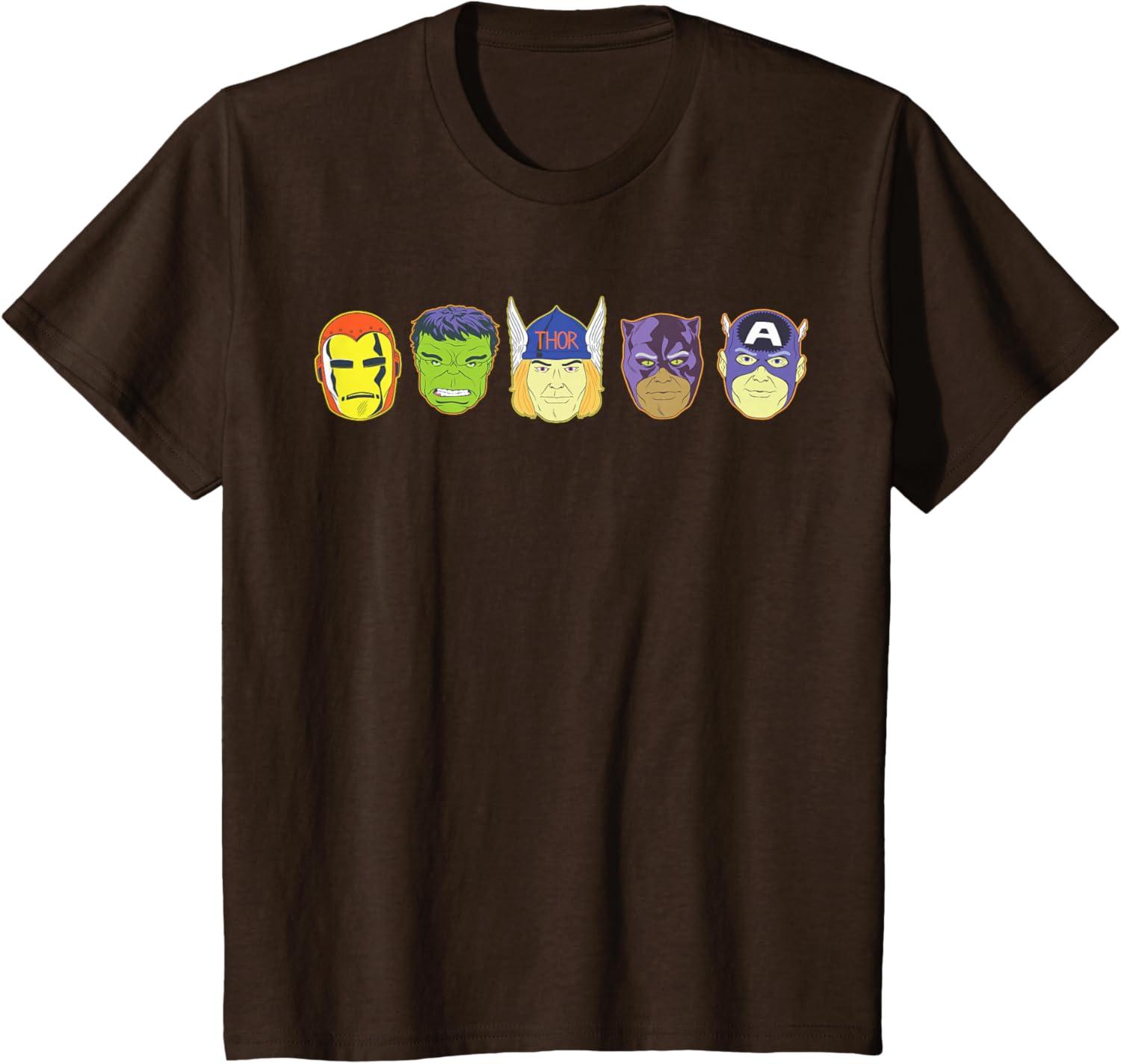 Be the first to review “Marvel Avengers Halloween Retro Vintage Masks Lineup T-Shirt(Brown)”