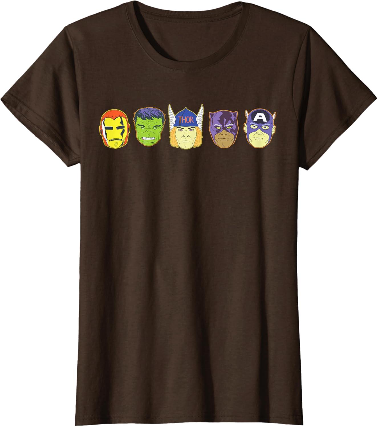imageMarvel Avengers Halloween Retro Vintage Masks Lineup TShirtBrown
