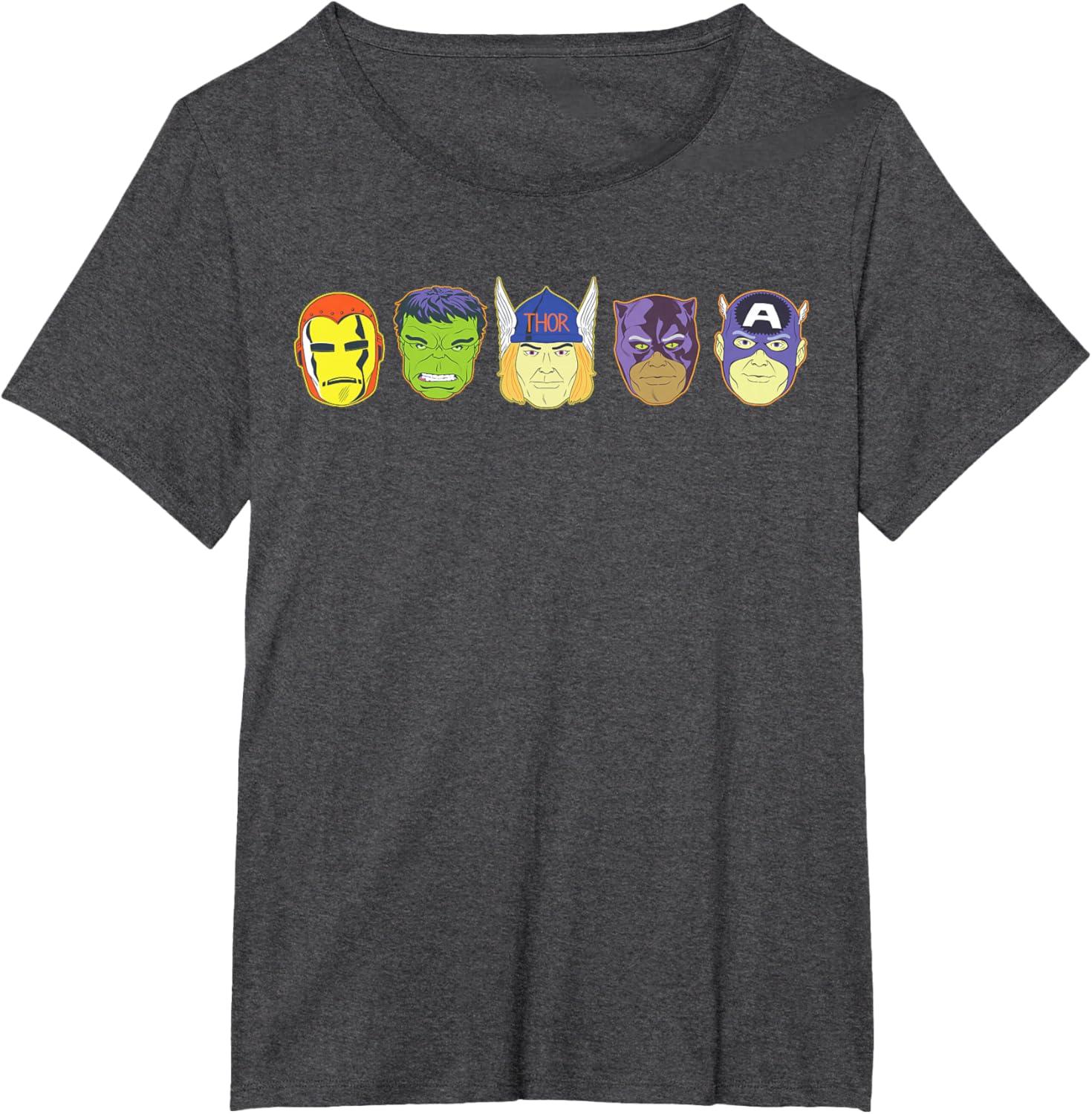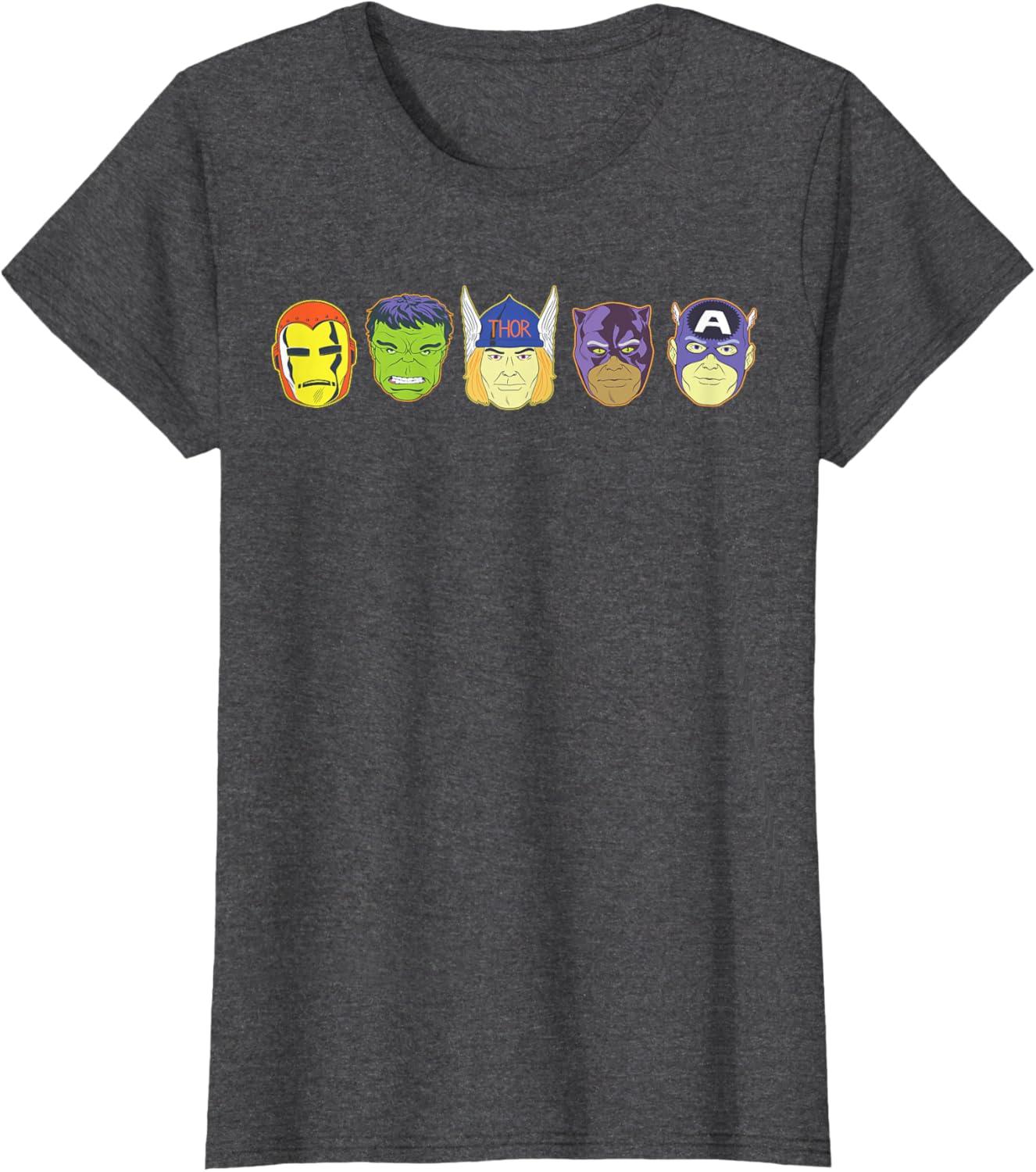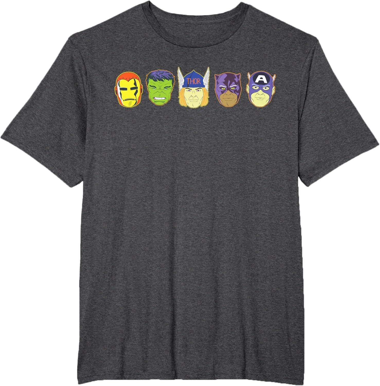 Marvel Avengers Halloween Retro Vintage Masks Lineup T-Shirt(Heather Grey)