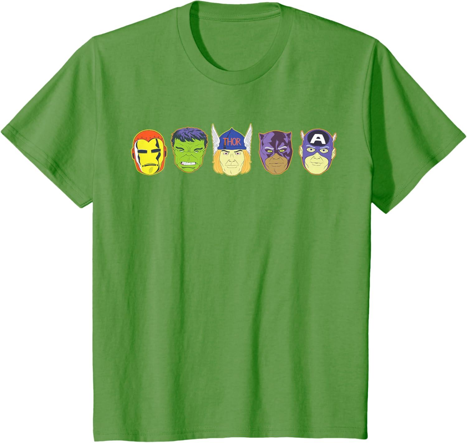 Be the first to review “Marvel Avengers Halloween Retro Vintage Masks Lineup T-Shirt(Grass Green)”