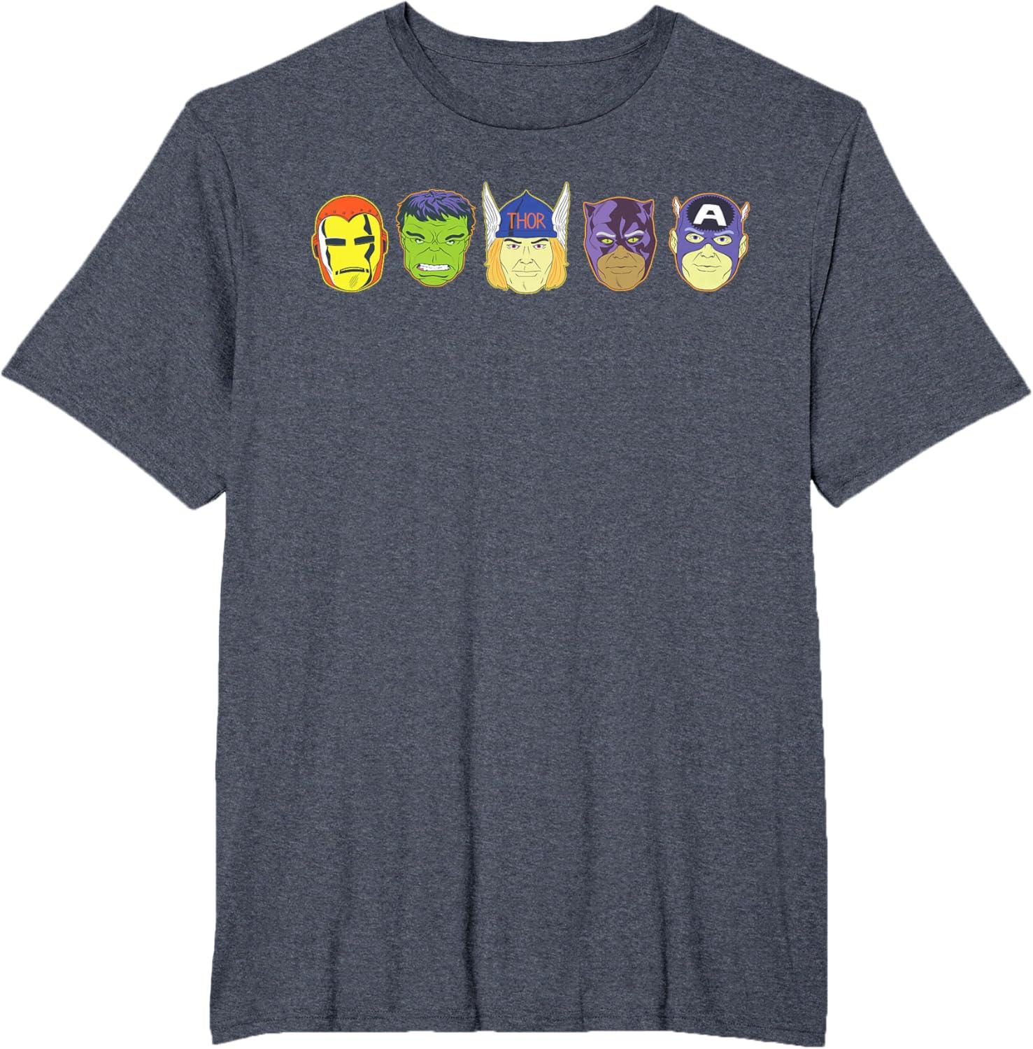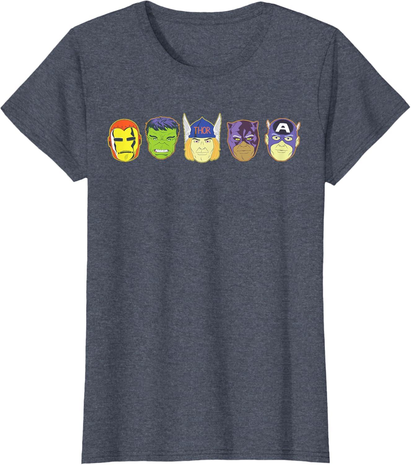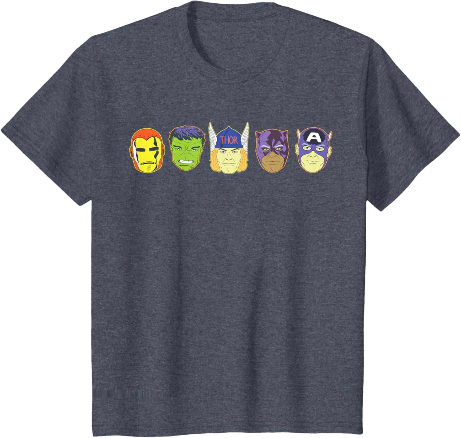 Be the first to review “Marvel Avengers Halloween Retro Vintage Masks Lineup T-Shirt(Heather Blue)”