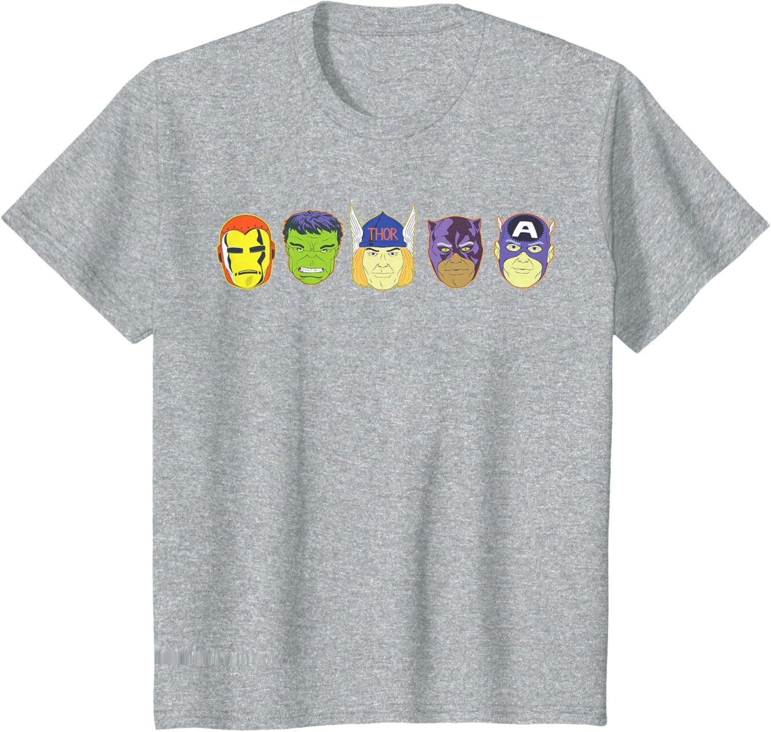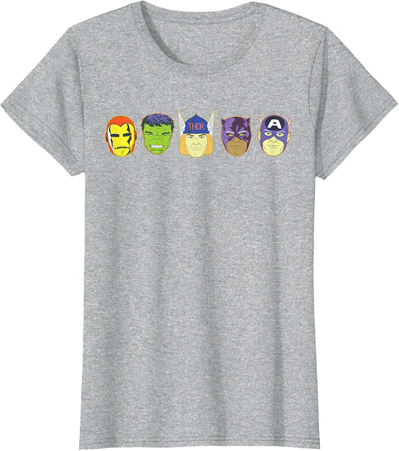 Marvel Avengers Halloween Retro Vintage Masks Lineup T-Shirt(Heather Grey)