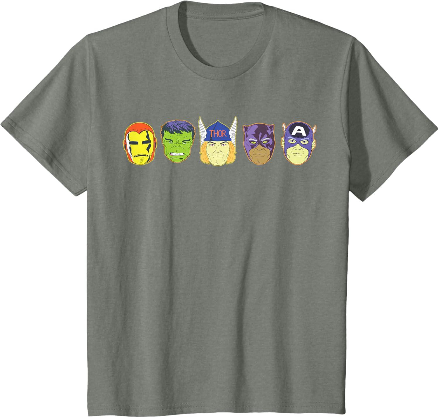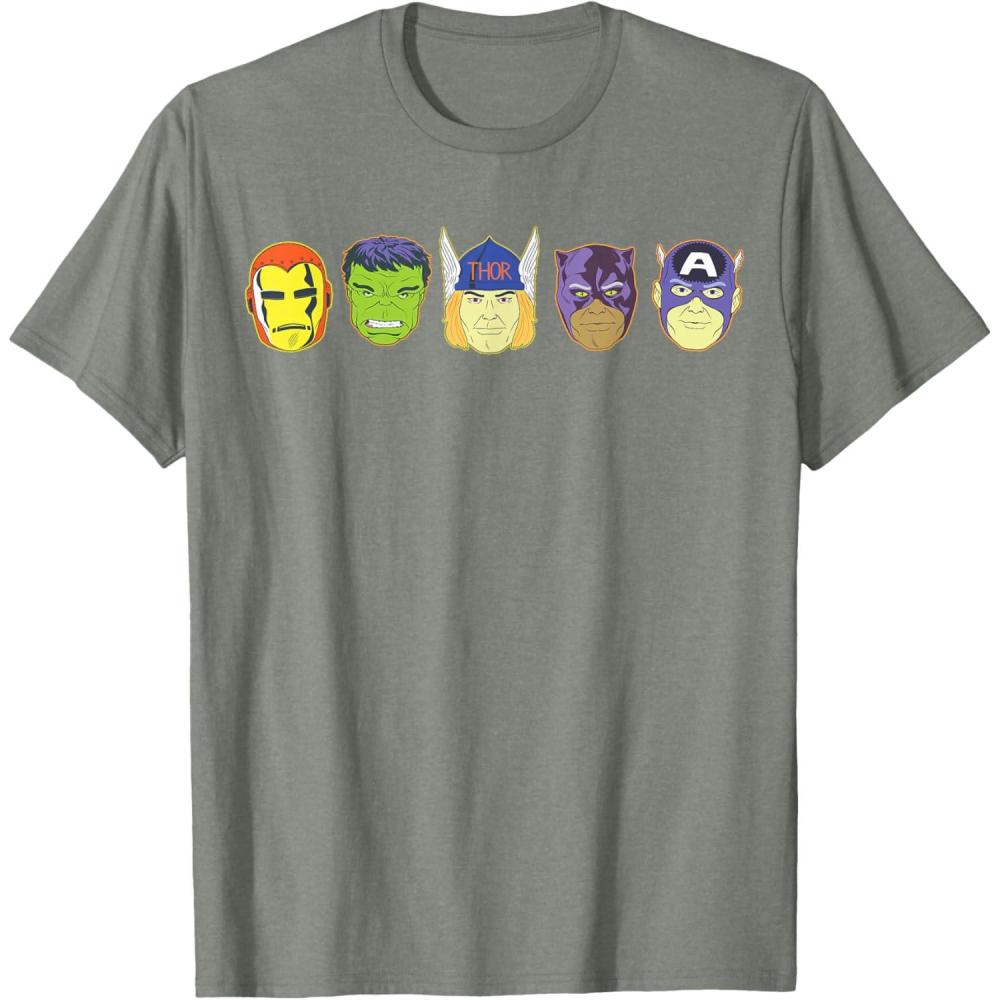Be the first to review “Marvel Avengers Halloween Retro Vintage Masks Lineup T-Shirt(Olive Heather)”
