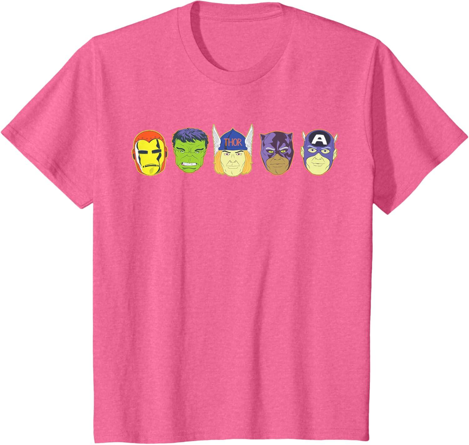 Be the first to review “Marvel Avengers Halloween Retro Vintage Masks Lineup T-Shirt(Pink Heather)”