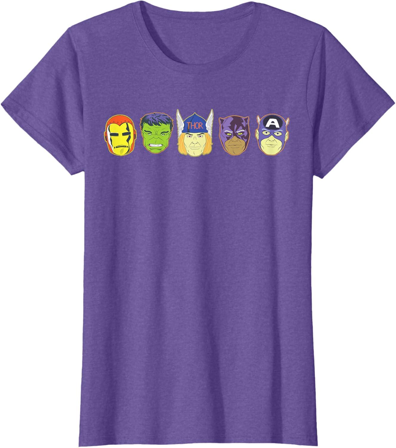 Marvel Avengers Halloween Retro Vintage Masks Lineup T-Shirt(Purple Heather)