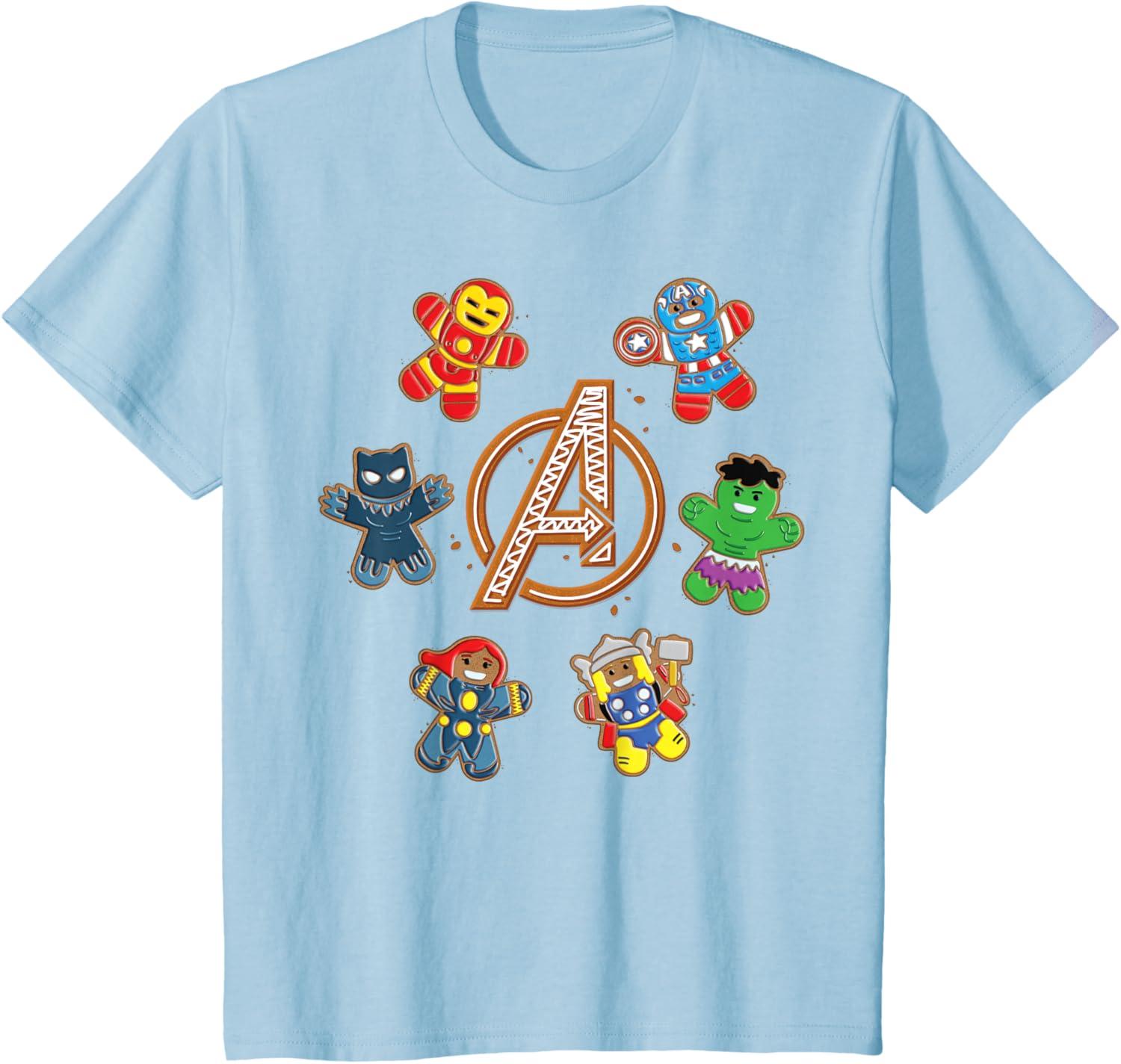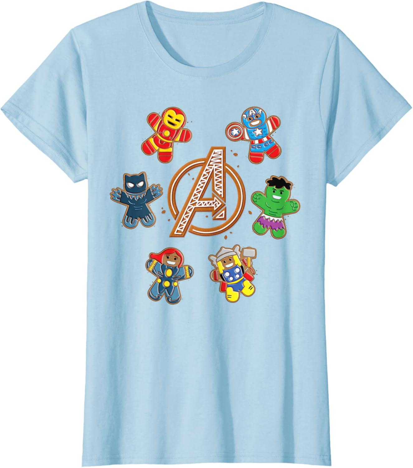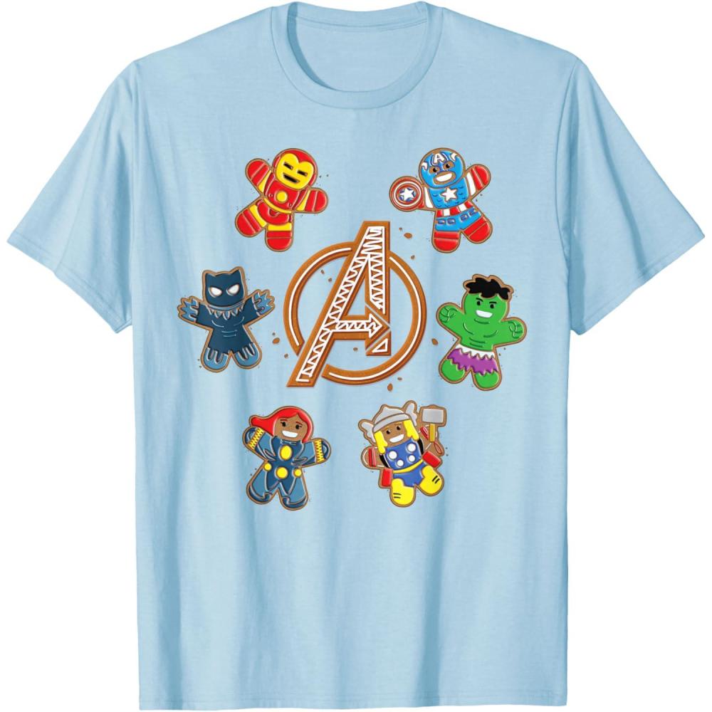 Marvel Avengers Holiday Christmas Gingerbread People & Logo T-Shirt(Baby Blue)