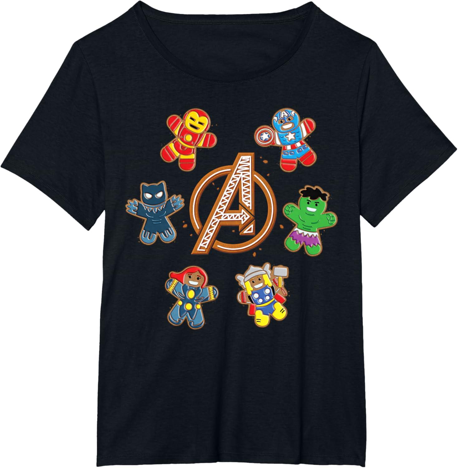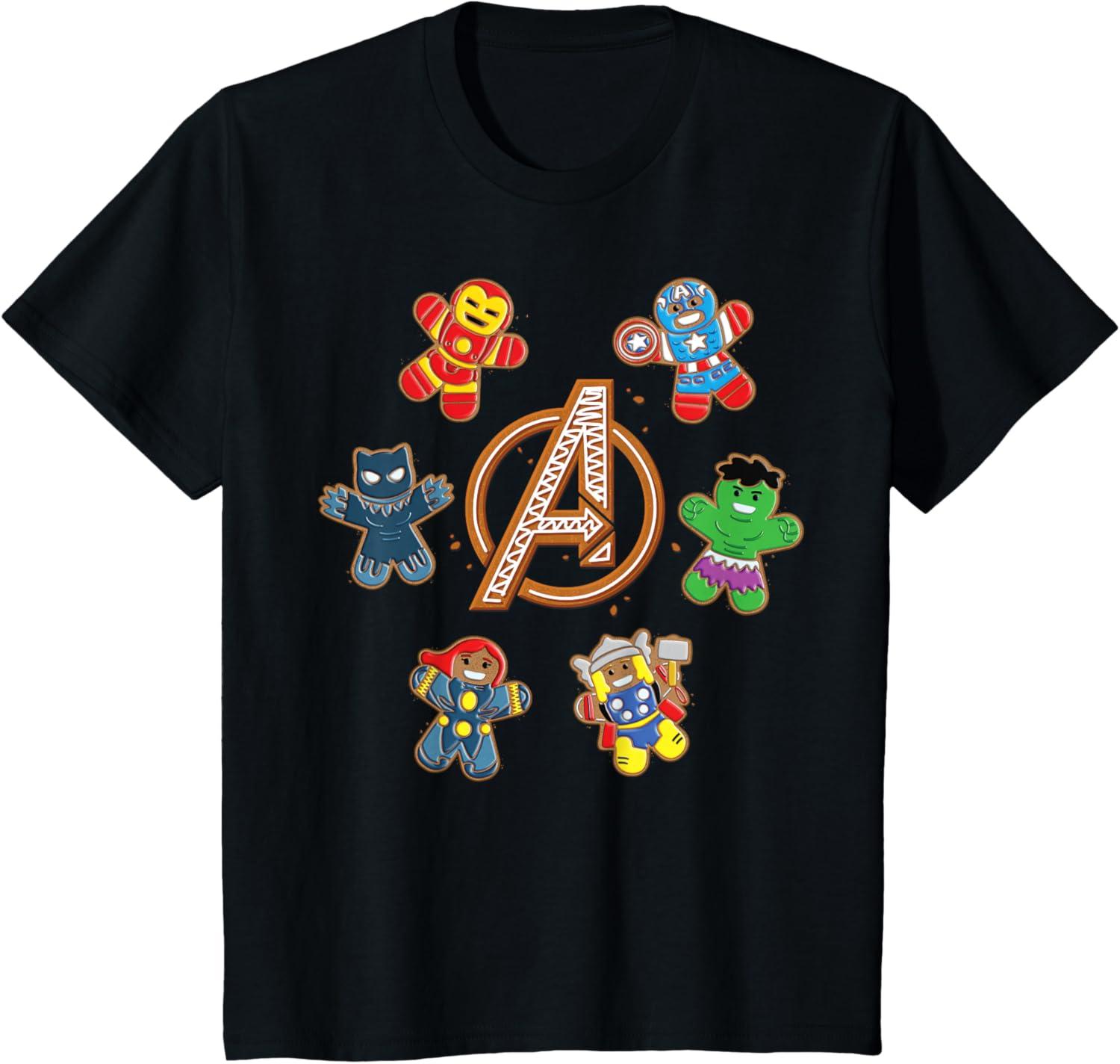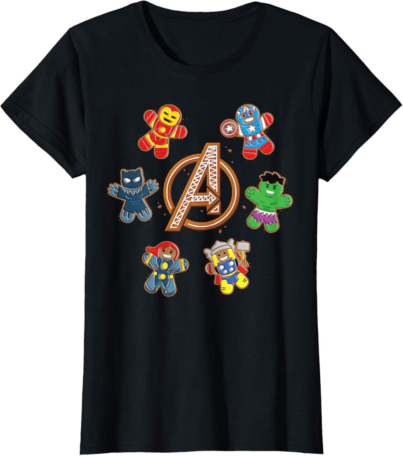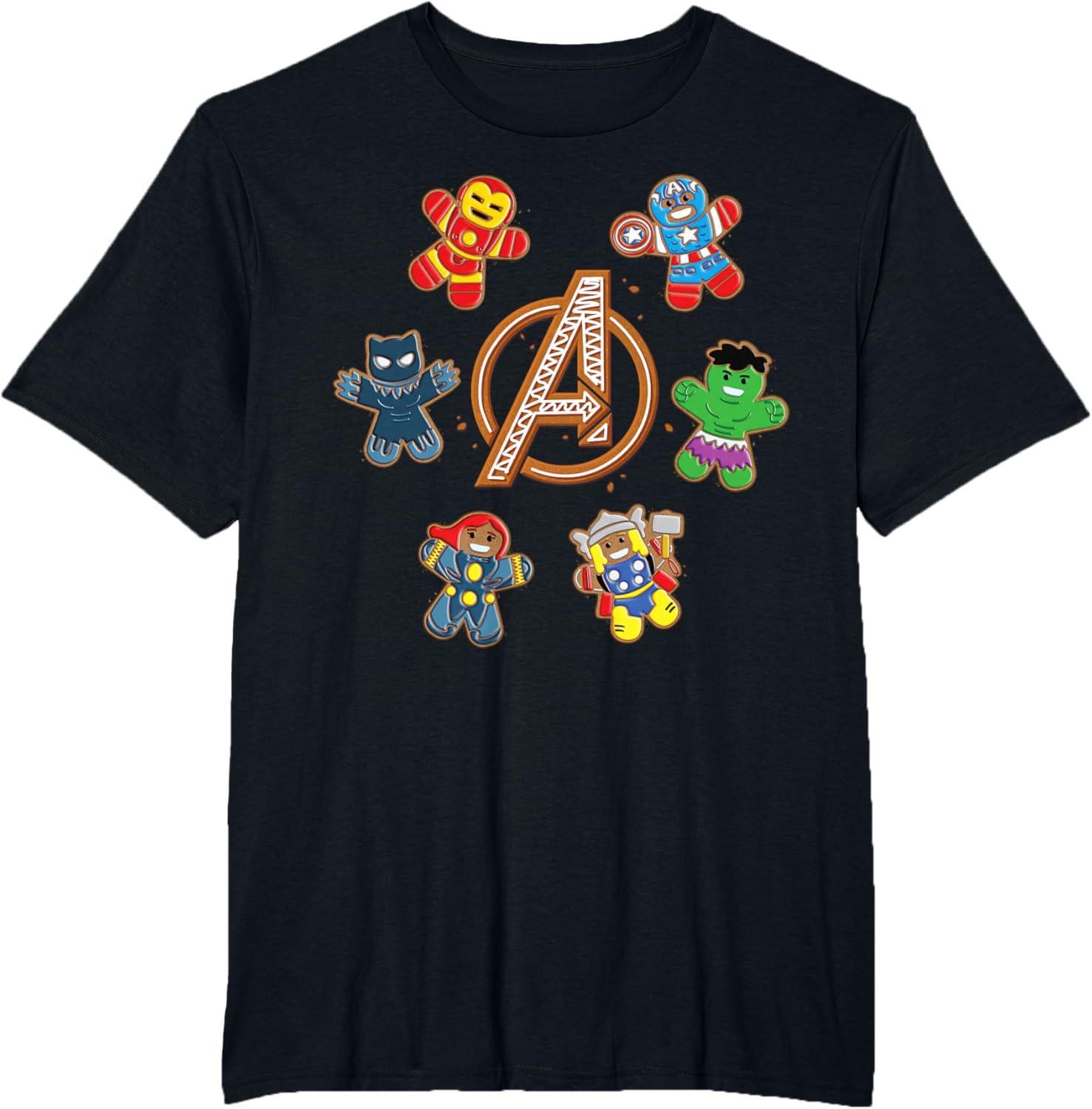 Marvel Avengers Holiday Christmas Gingerbread People & Logo T-Shirt(Black)