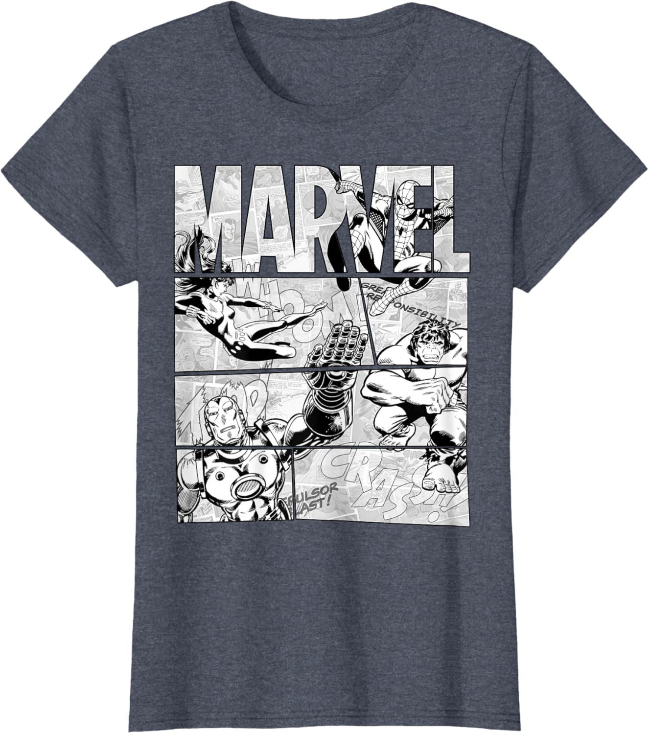 Be the first to review “Marvel Avengers Retro Black and White Comic Graphic Short Sleeve T-Shirt(Heather Blue)”