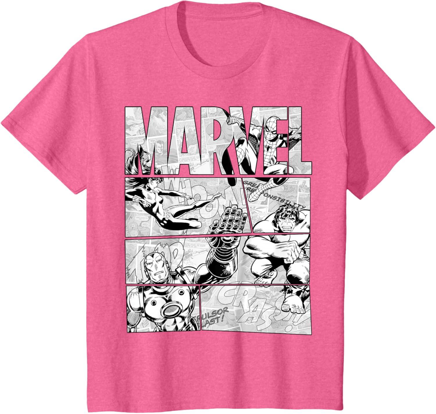Be the first to review “Marvel Avengers Retro Black and White Comic Graphic Short Sleeve T-Shirt(Pink Heather)”
