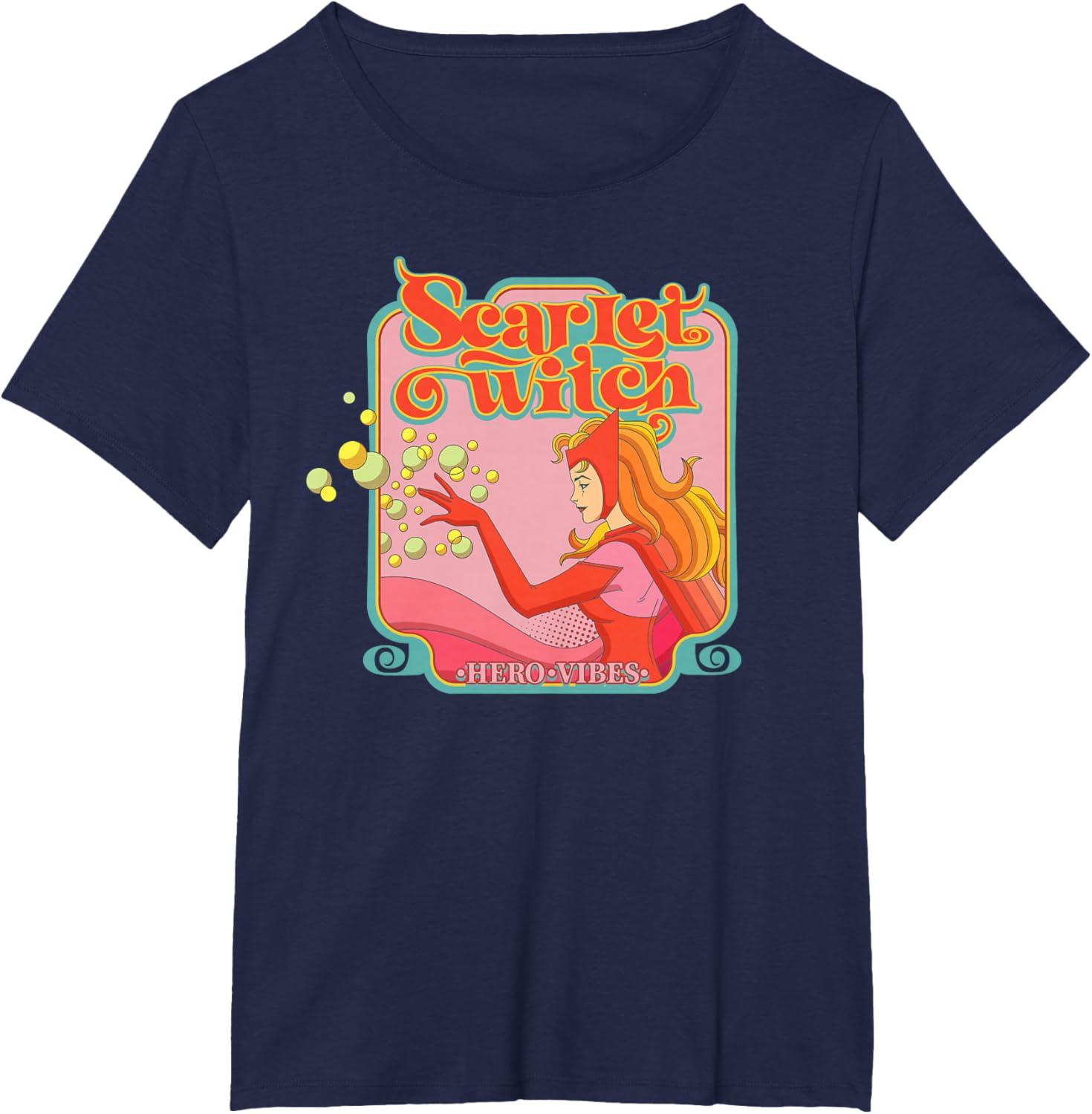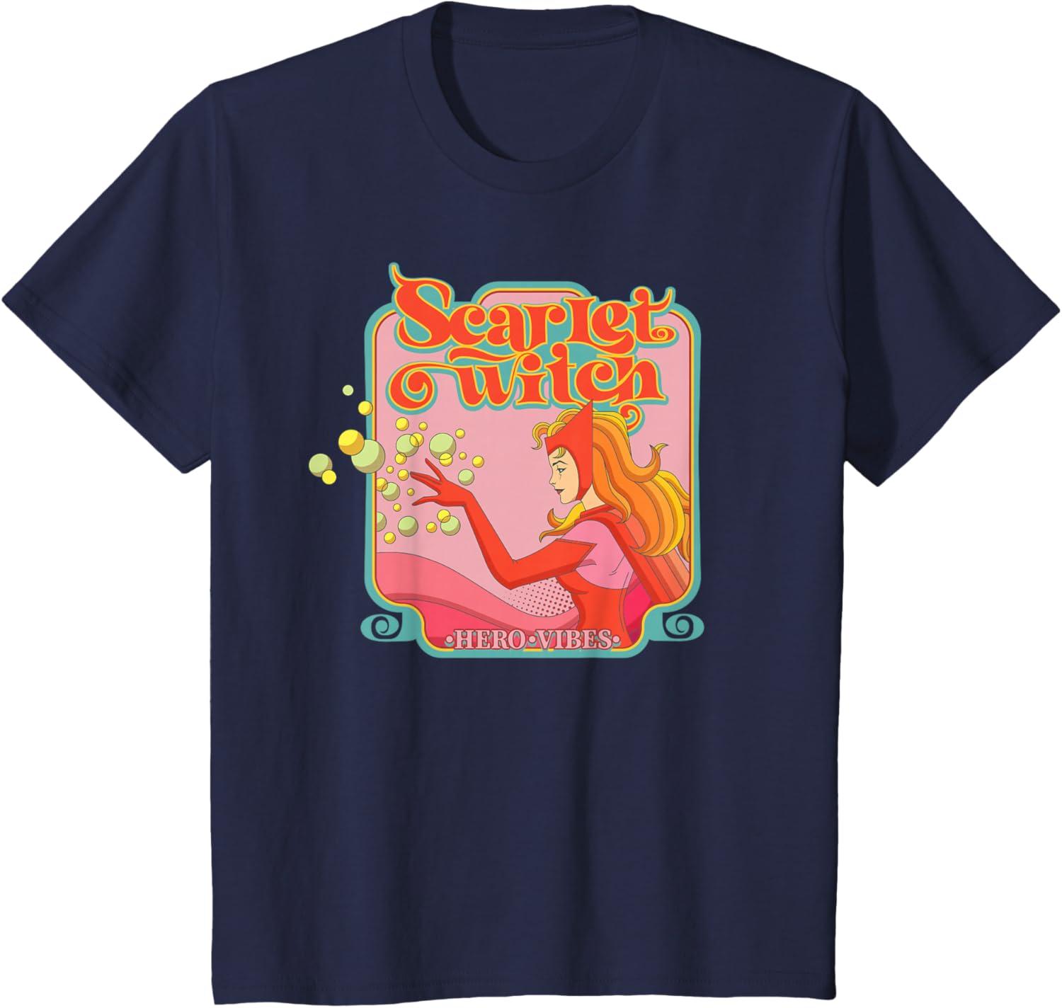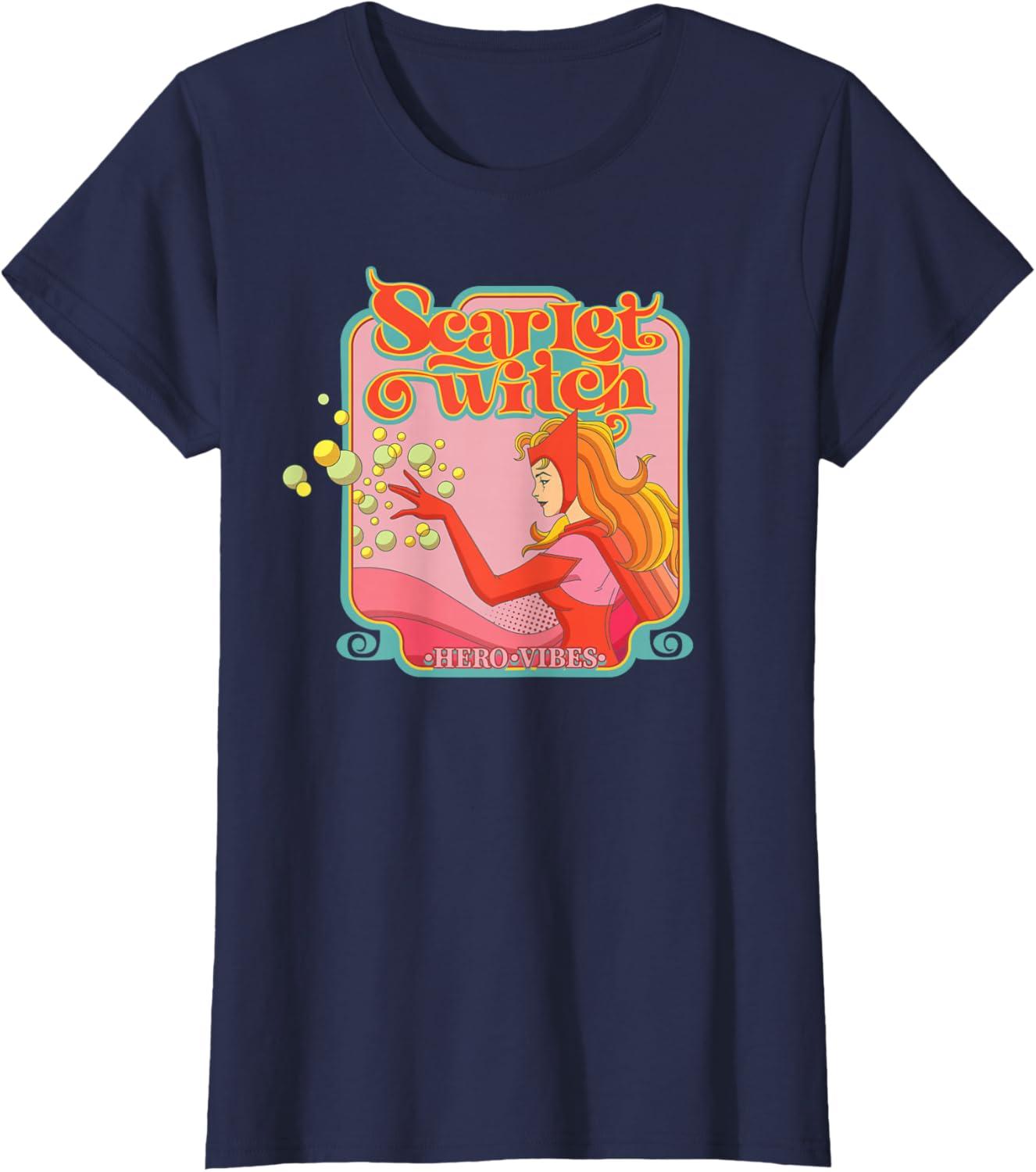 Marvel Avengers Scarlet Witch Wanda Hero Vibes Comic Retro T-Shirt(Navy Blue)