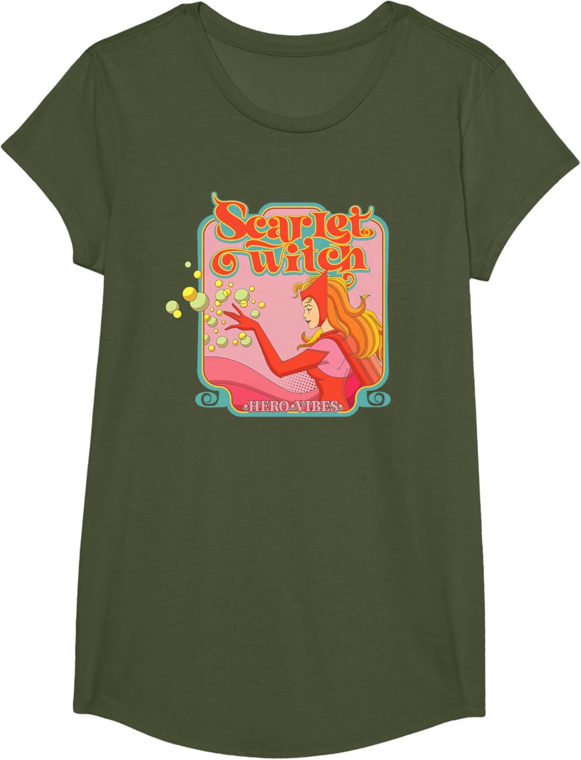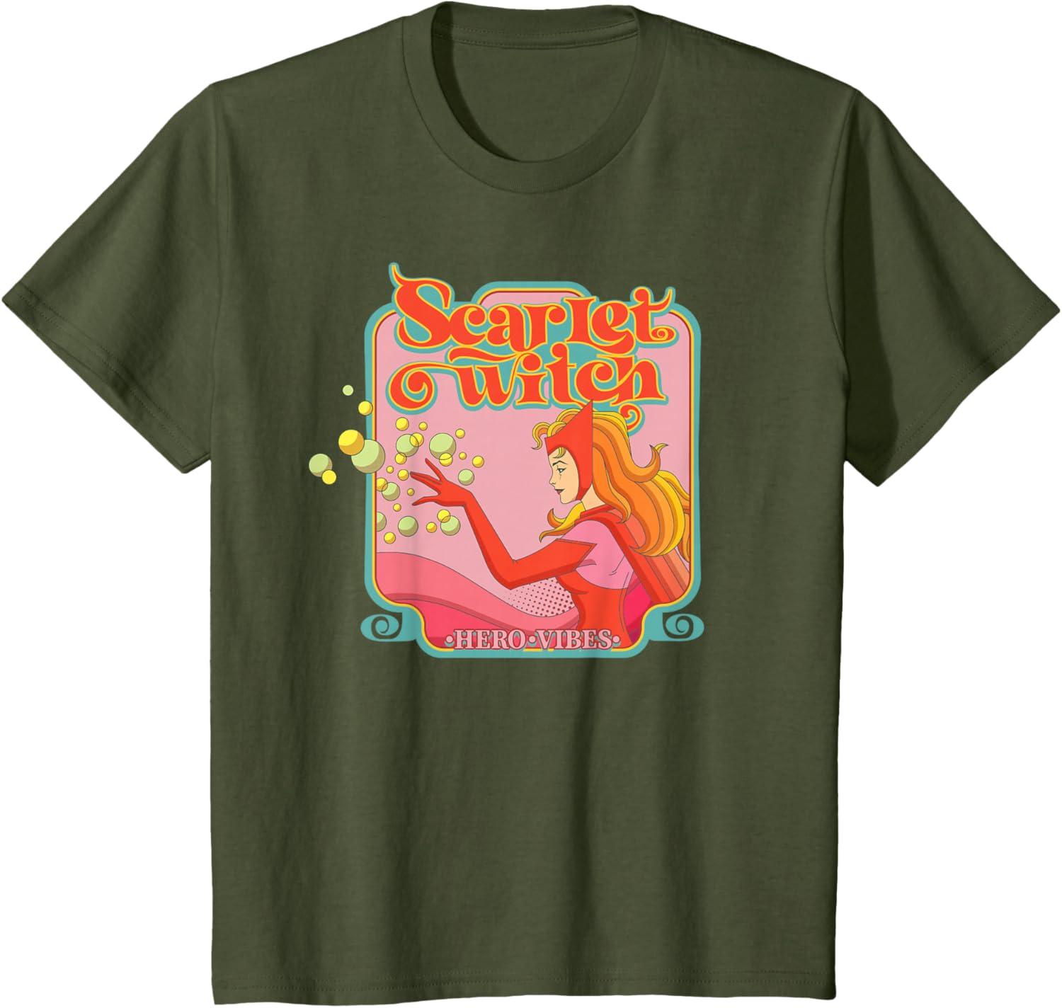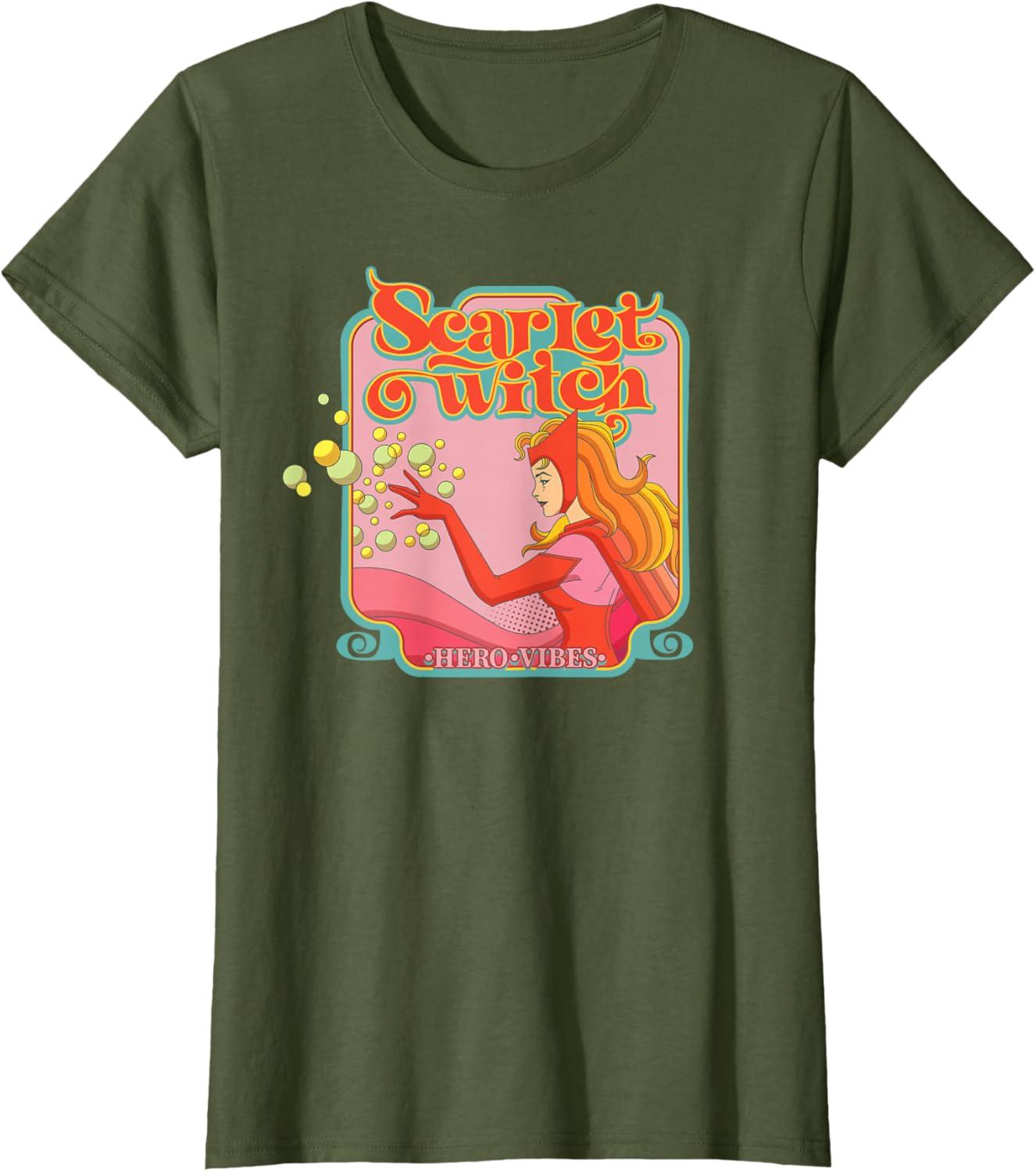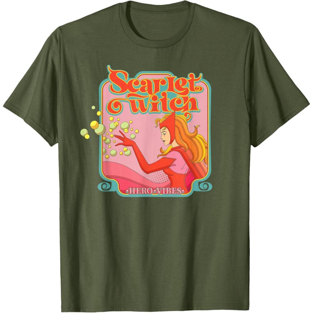 Marvel Avengers Scarlet Witch Wanda Hero Vibes Comic Retro T-Shirt(Olive Green)