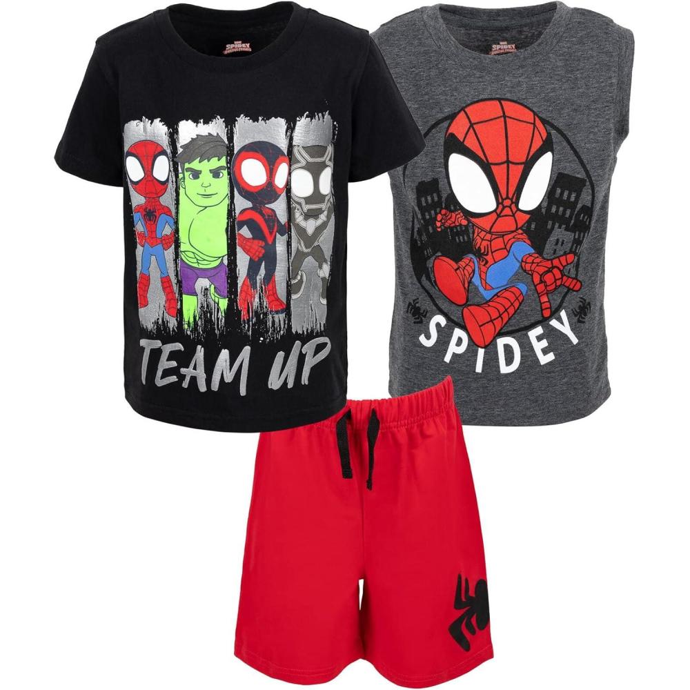 Marvel Avengers Spider-Man 3 Piece Outfit Set: T-Shirt Tank Top Shorts(Black/ Red/ Grey)