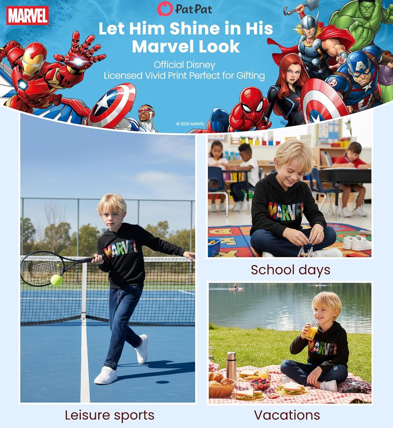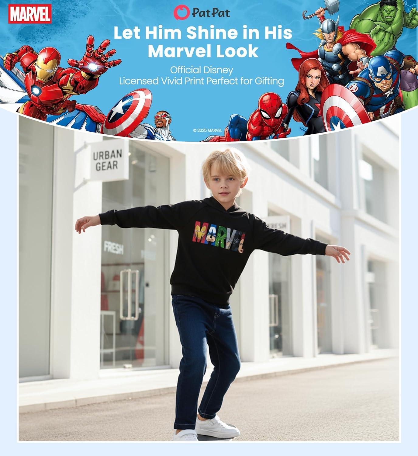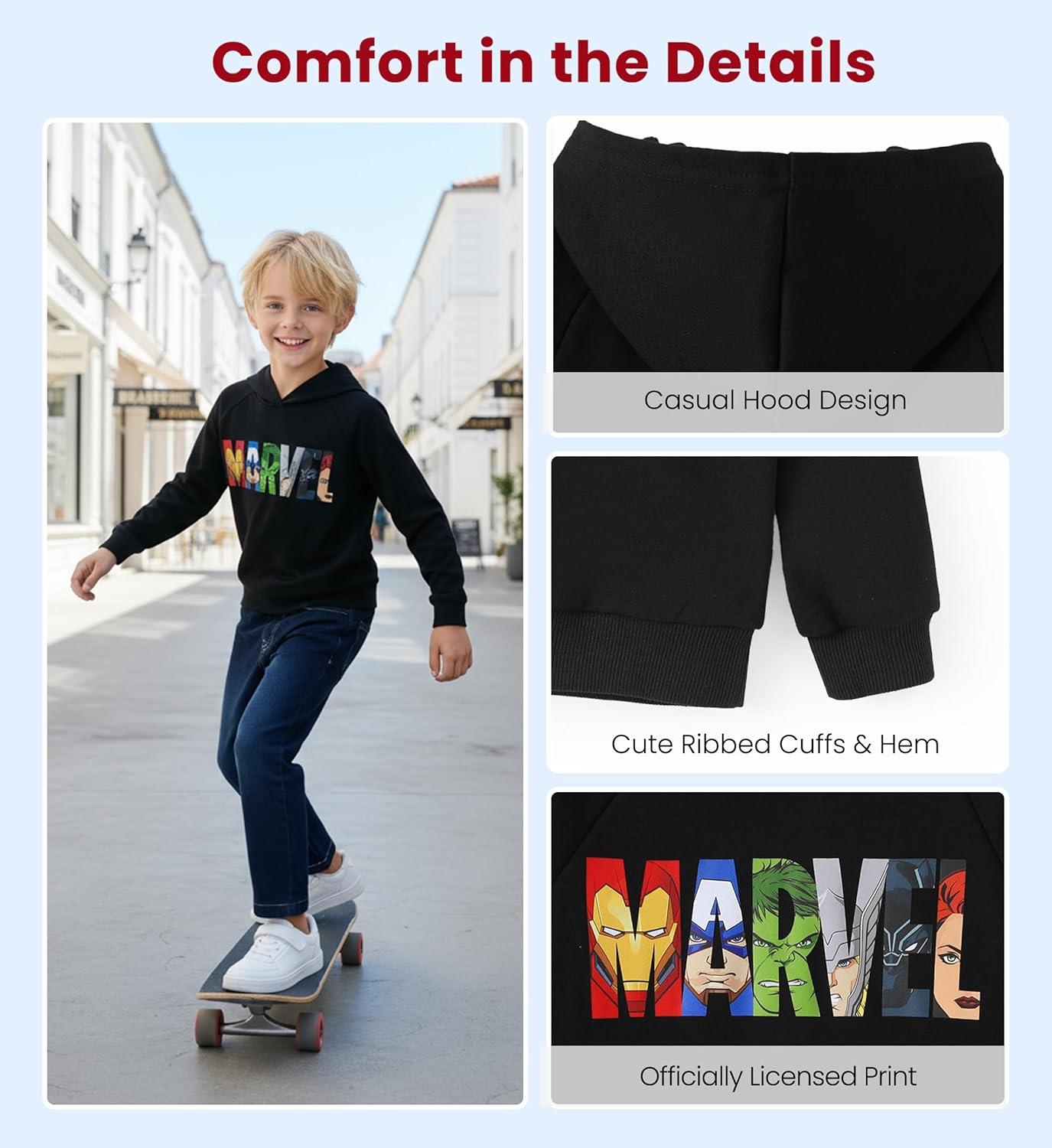 Marvel Superhero Pullover Hoodie for Boys – Fun Playwear for Young Heroes (Ages 2-9)