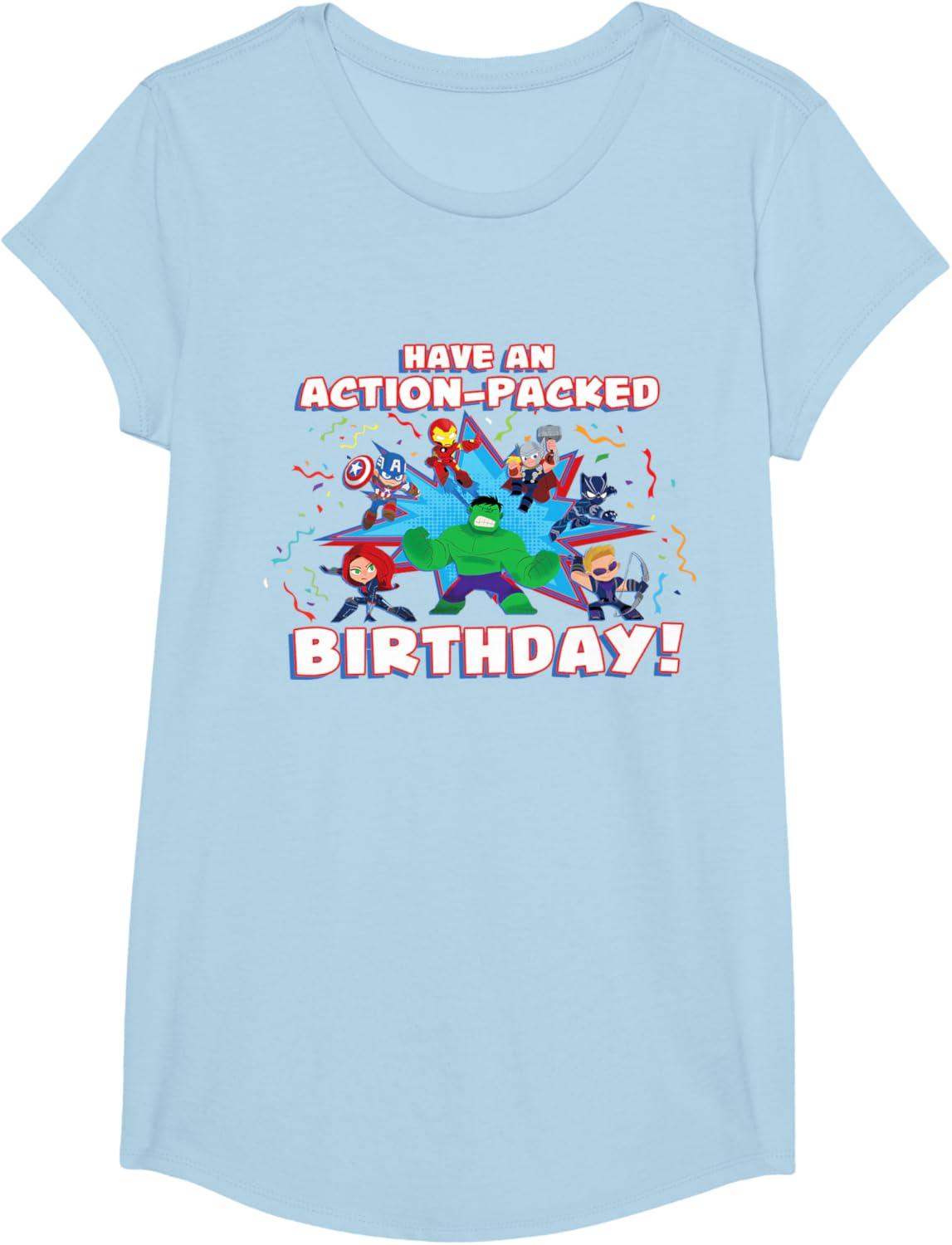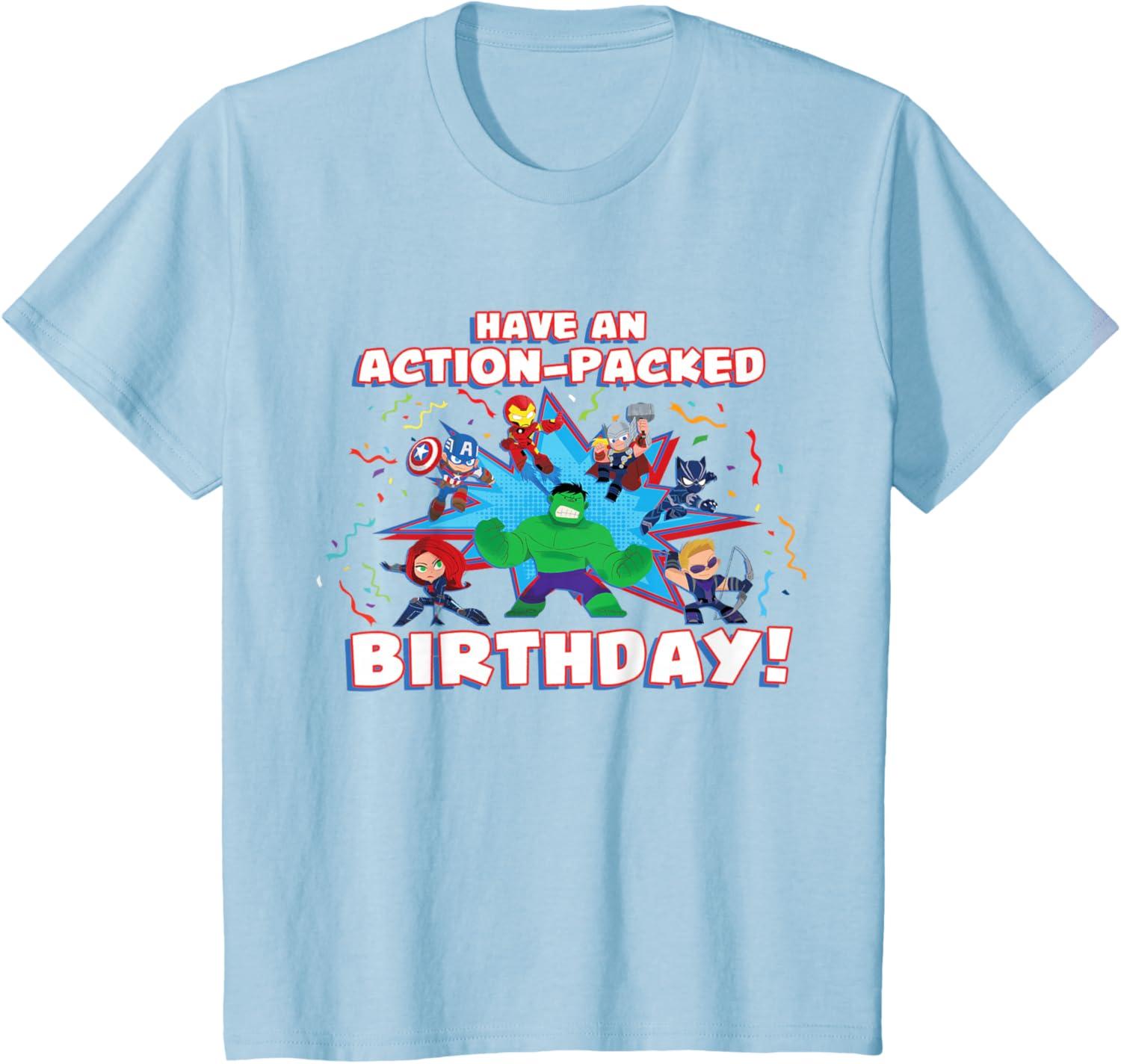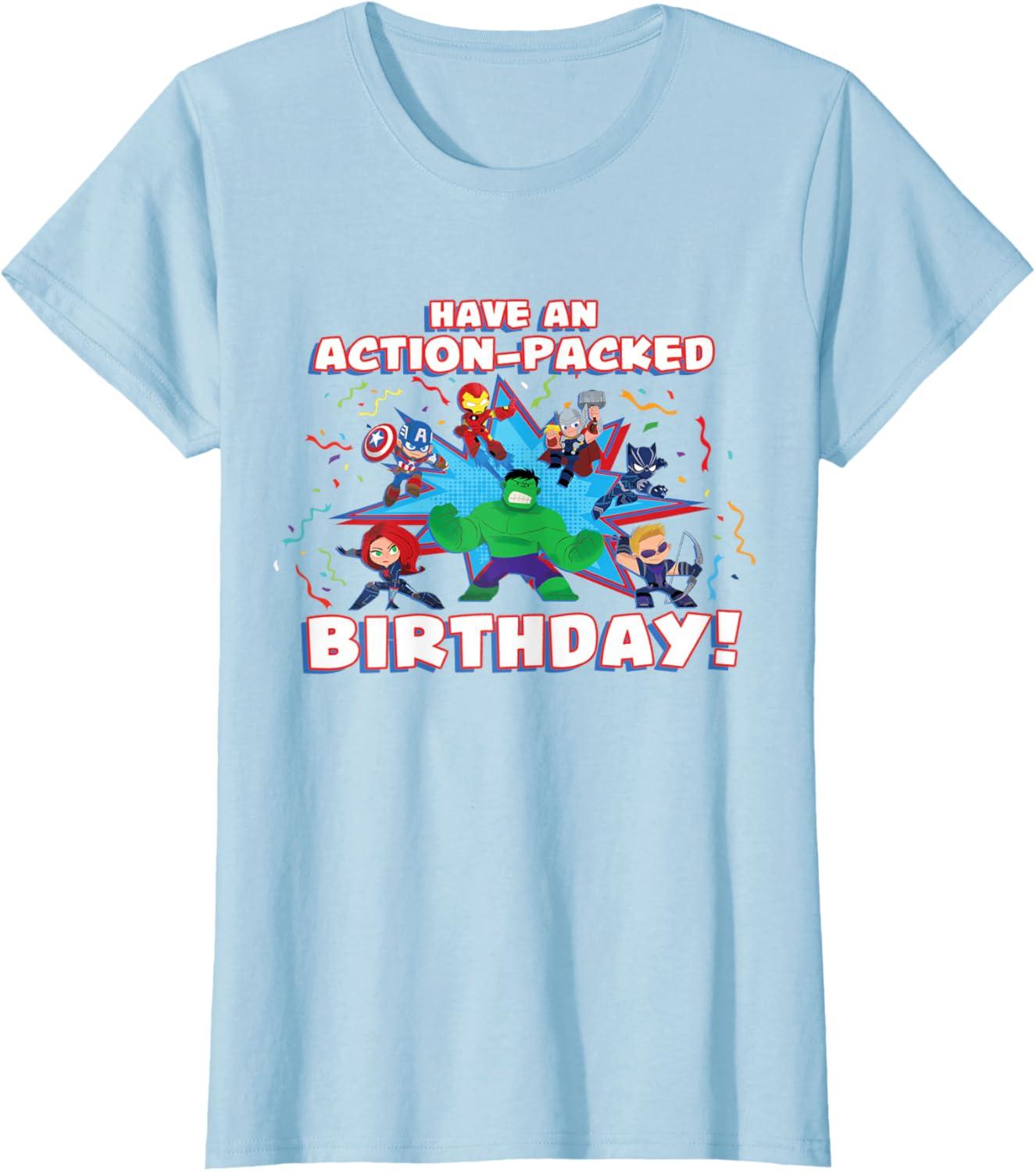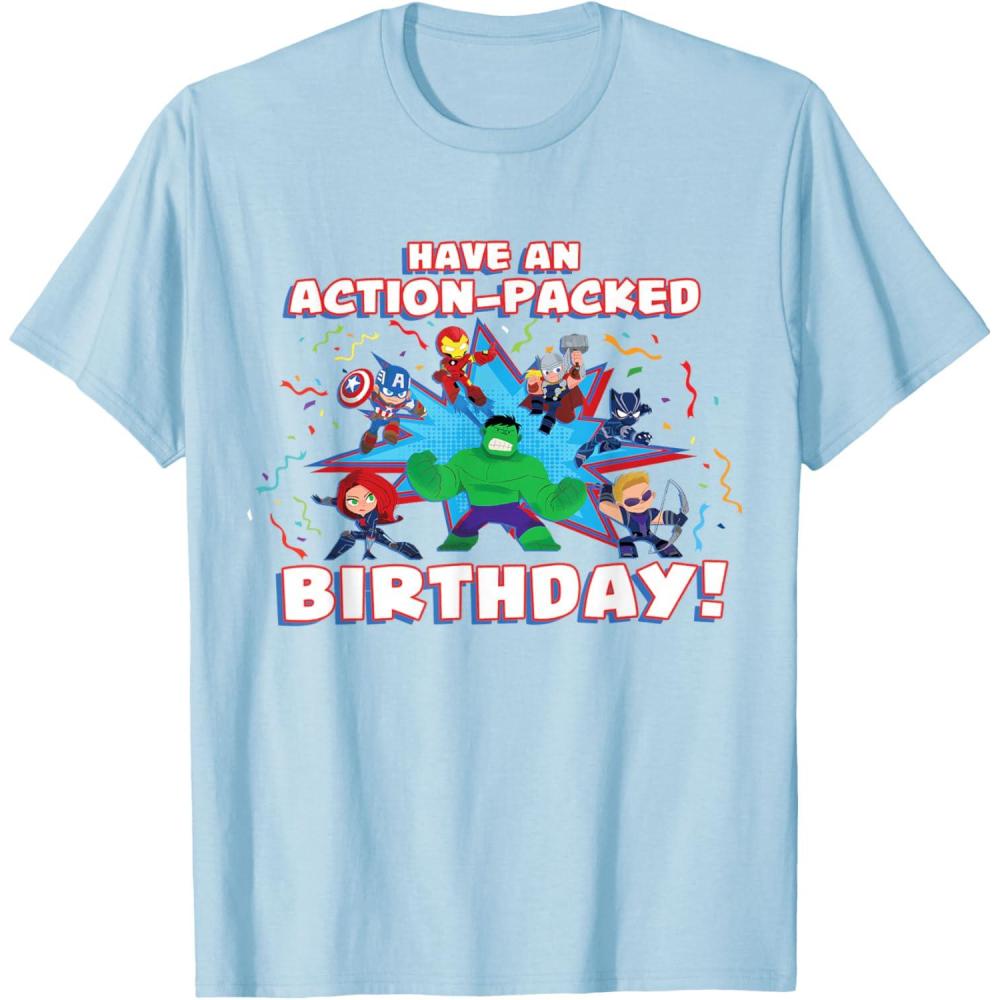 Marvel Avengers Toon Party Have an Action-Packed Birthday T-Shirt(Baby Blue)