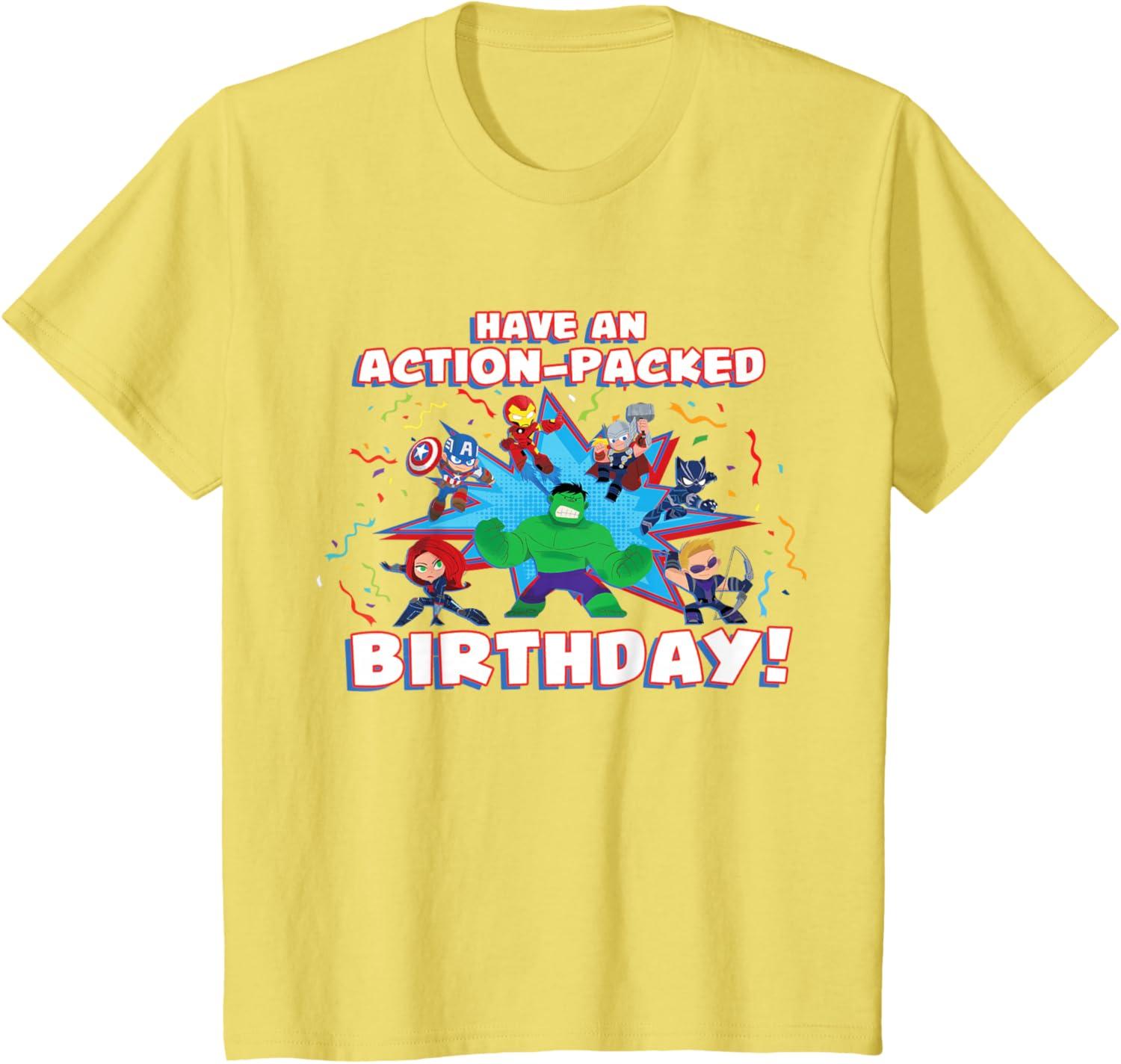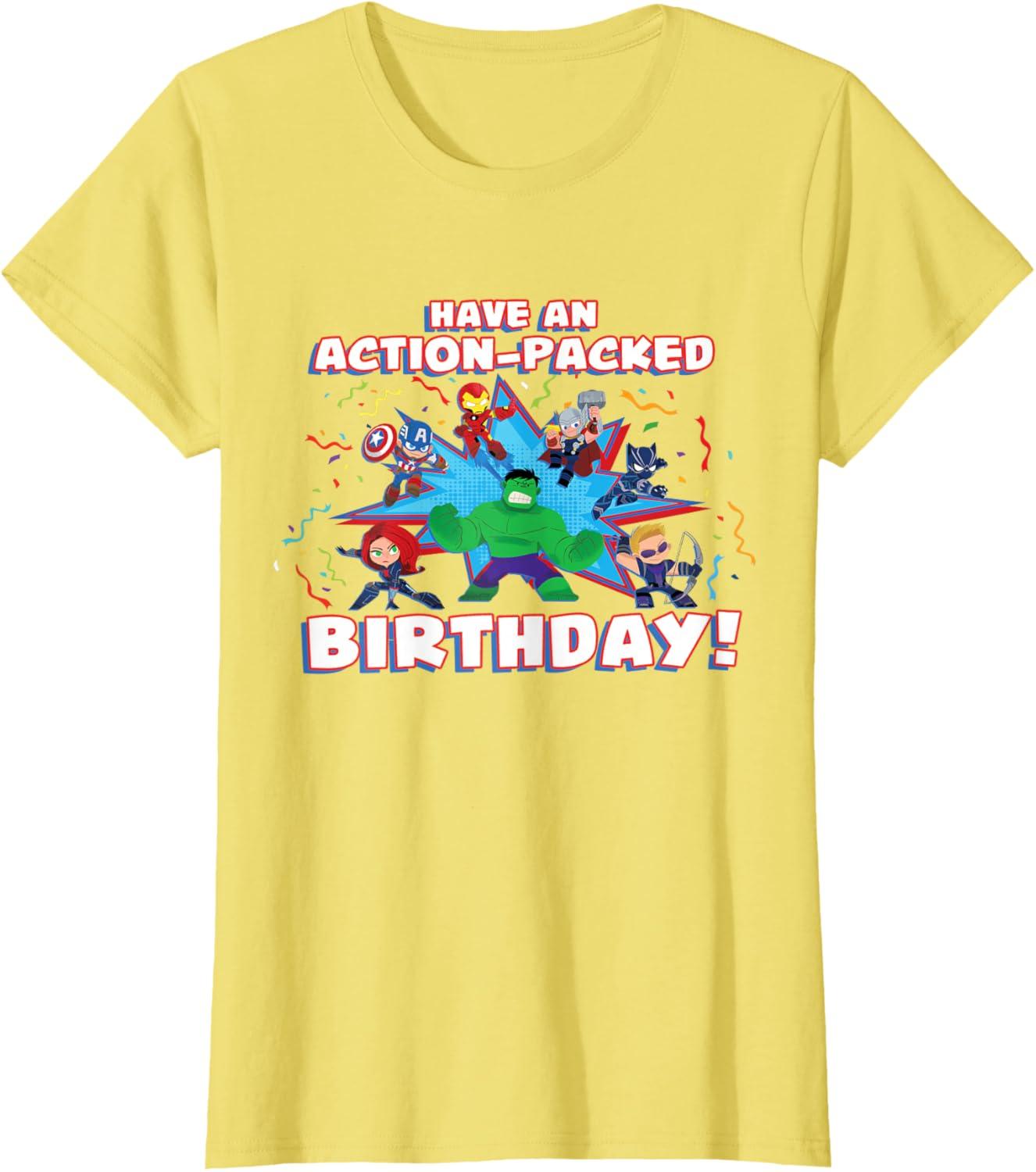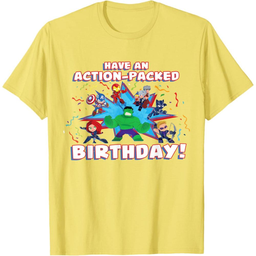 Marvel Avengers Toon Party Have an Action-Packed Birthday T-Shirt(Lemon Yellow)