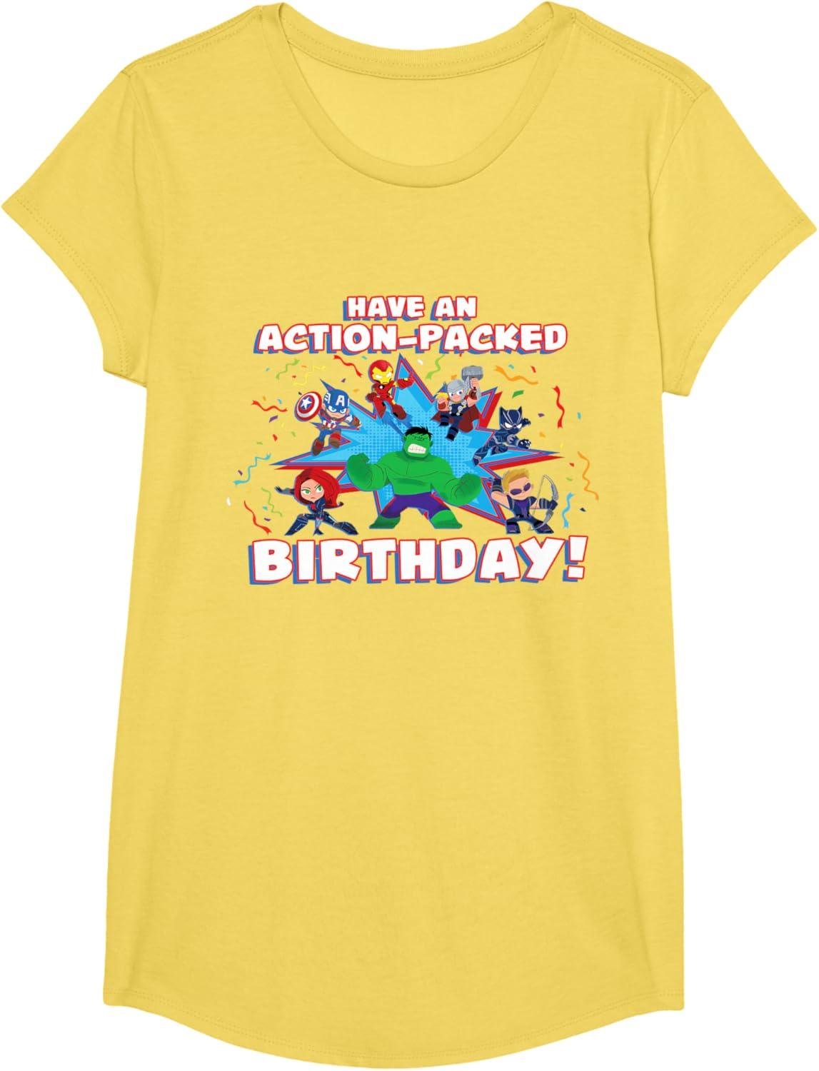 imageMarvel Avengers Toon Party Have an ActionPacked Birthday TShirtLemon Yellow
