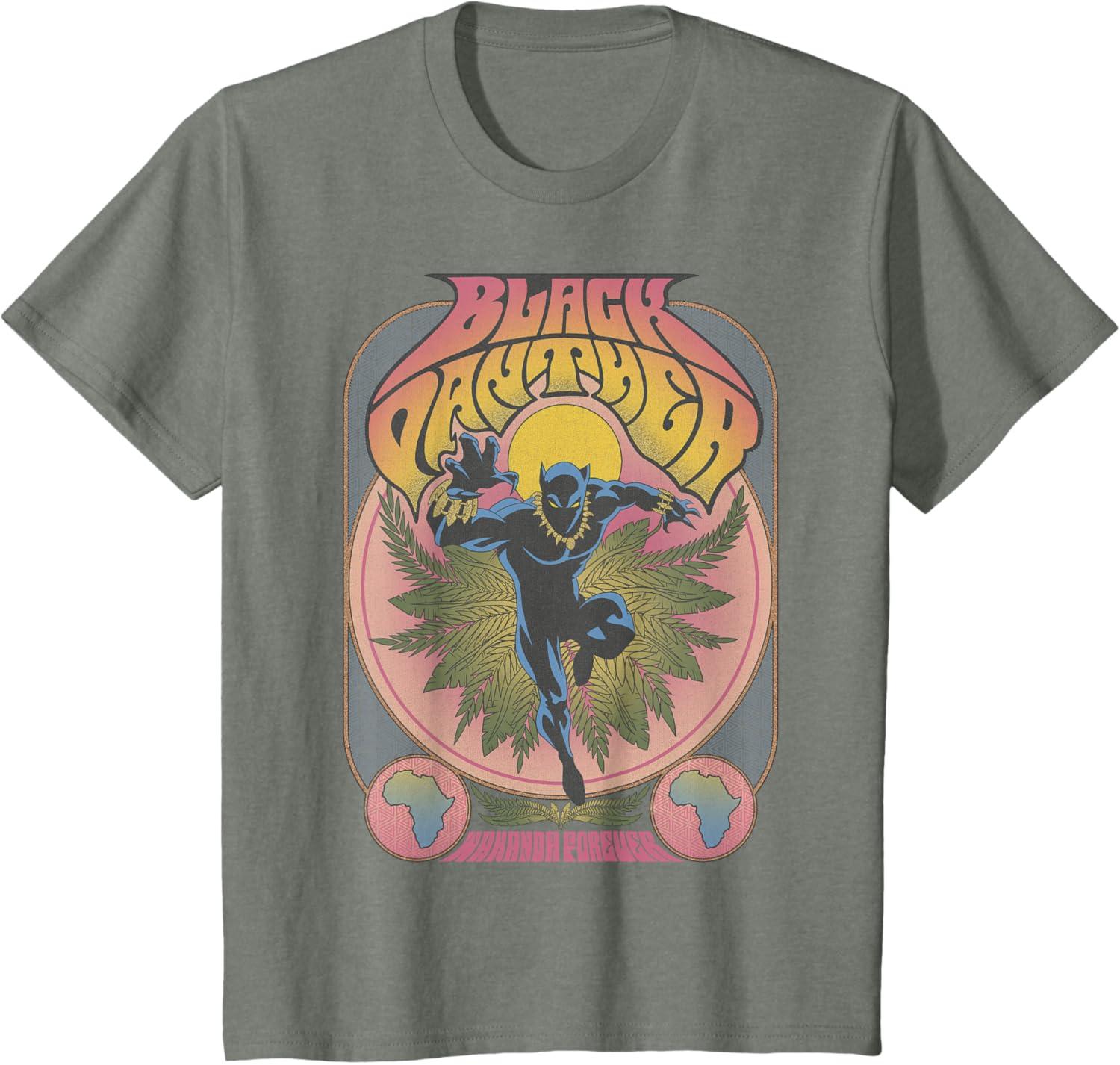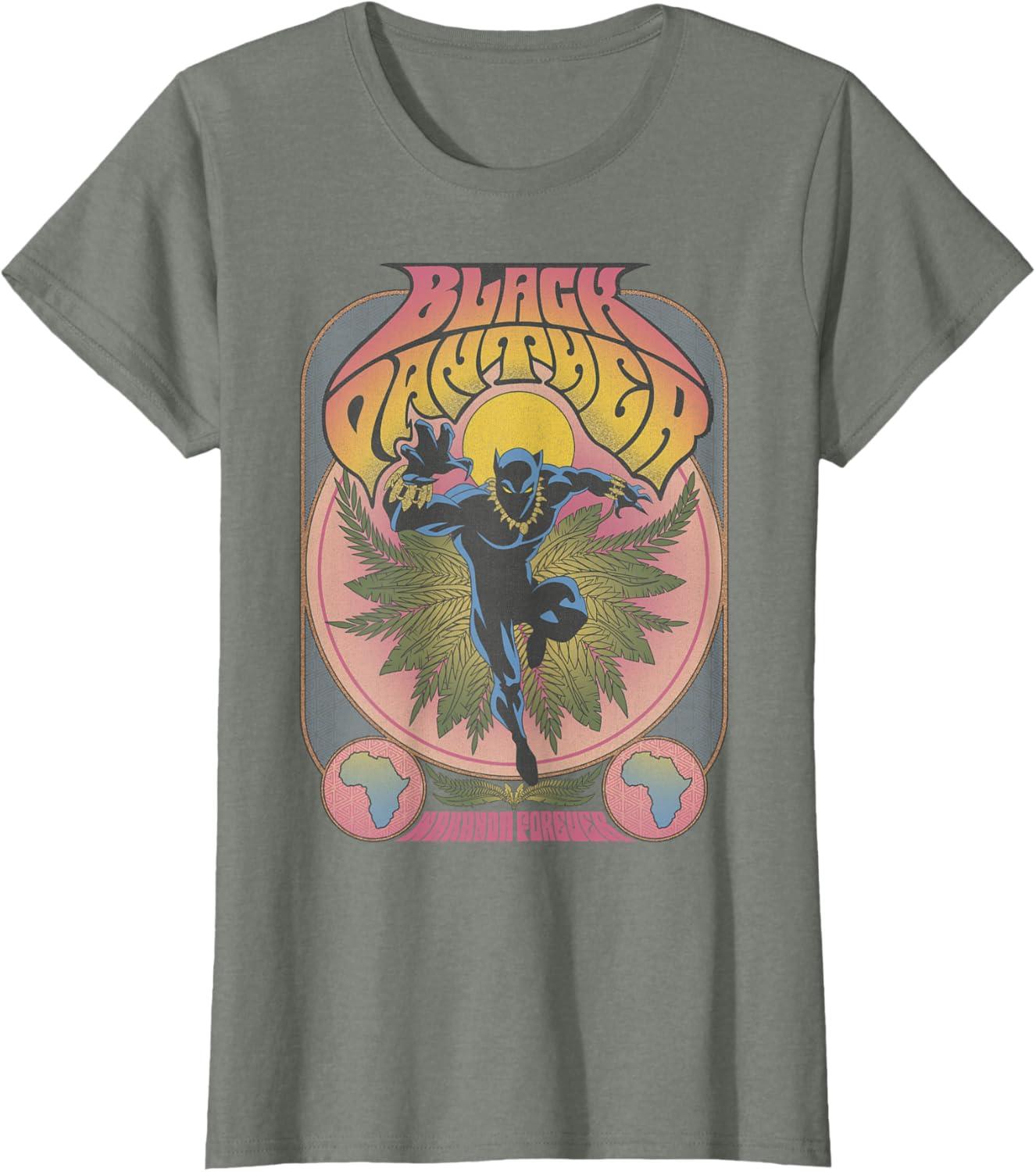 Marvel Black Panther Vintage 70’s Poster Style T-Shirt(Olive Heather)