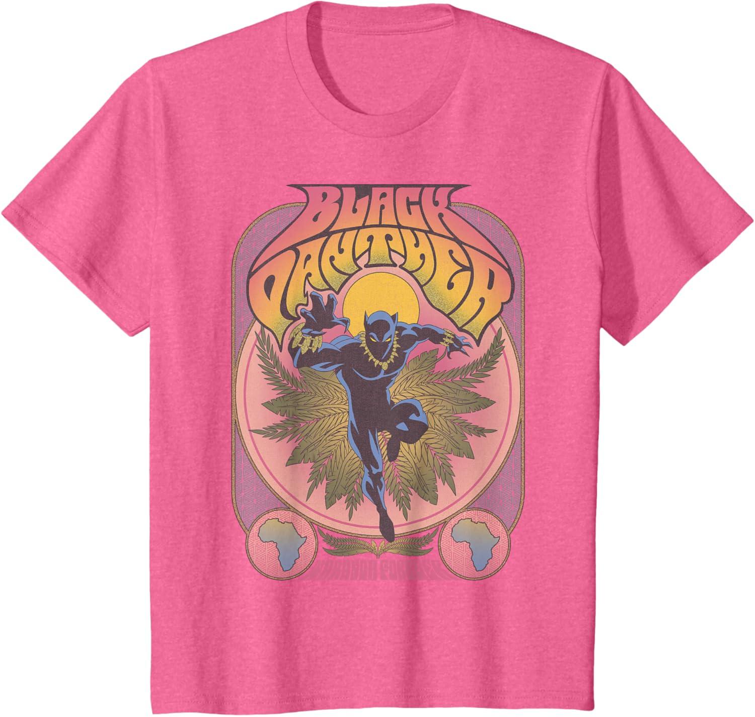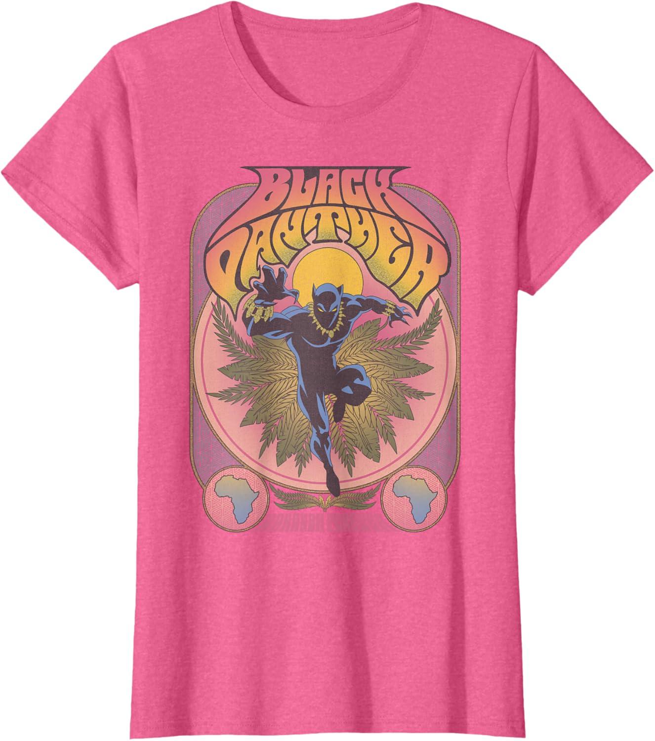 Marvel Black Panther Vintage 70’s Poster Style T-Shirt(Pink Heather)