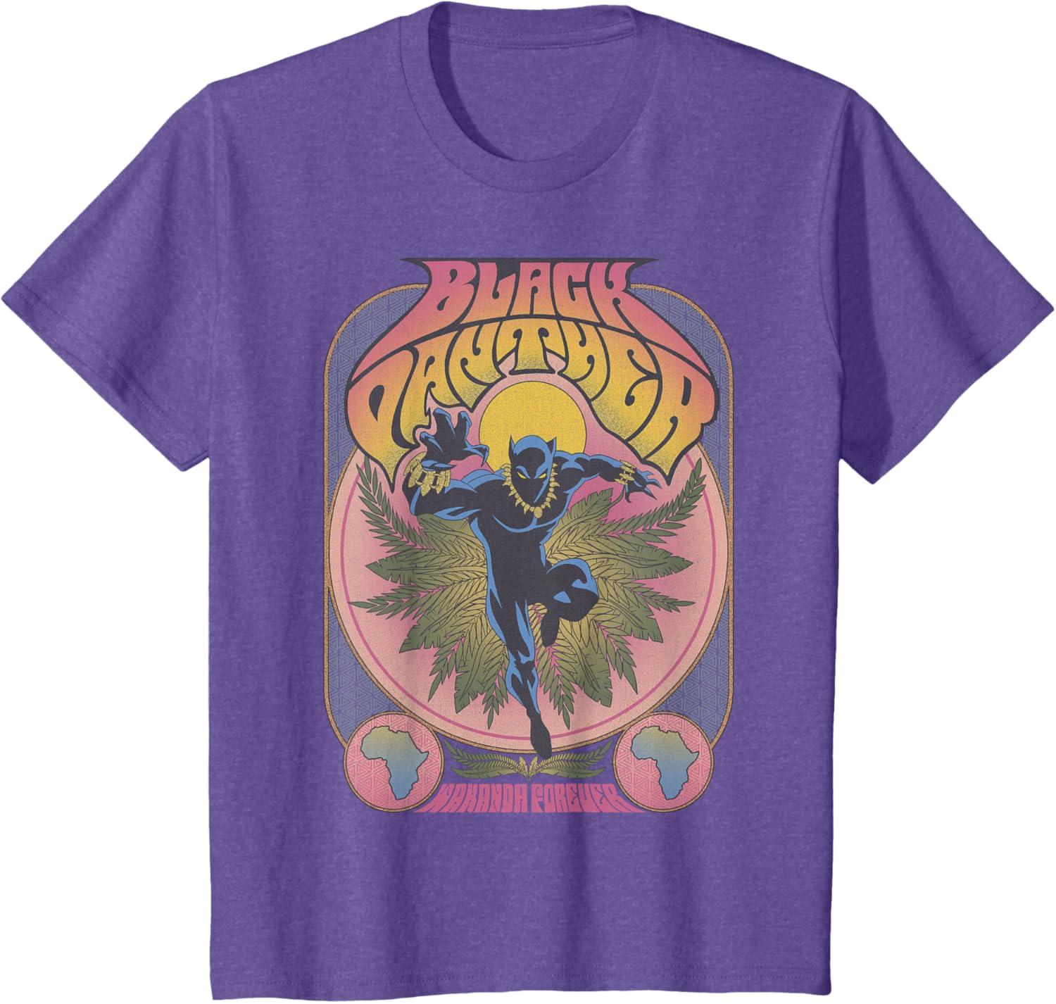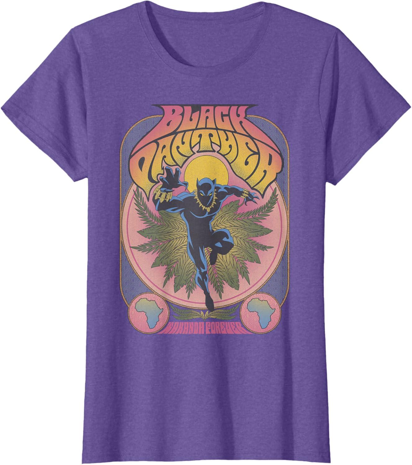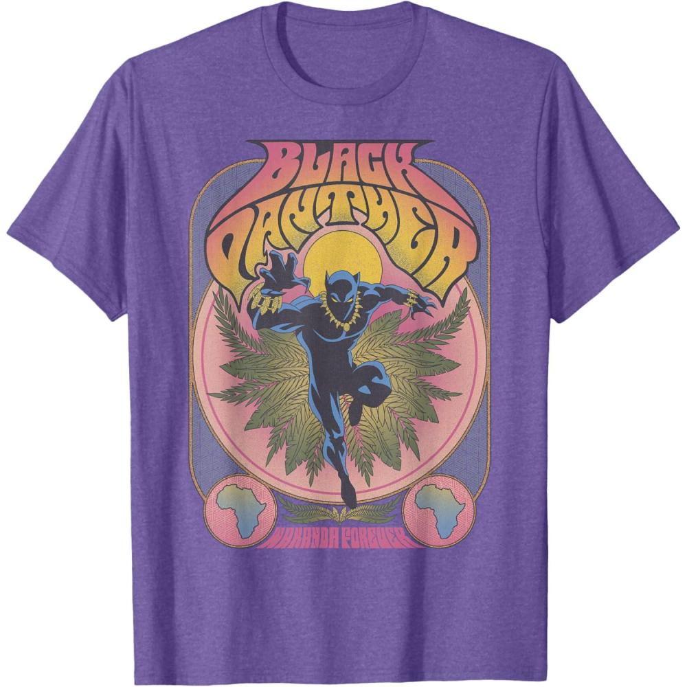 Marvel Black Panther Vintage 70’s Poster Style T-Shirt(Purple Heather)