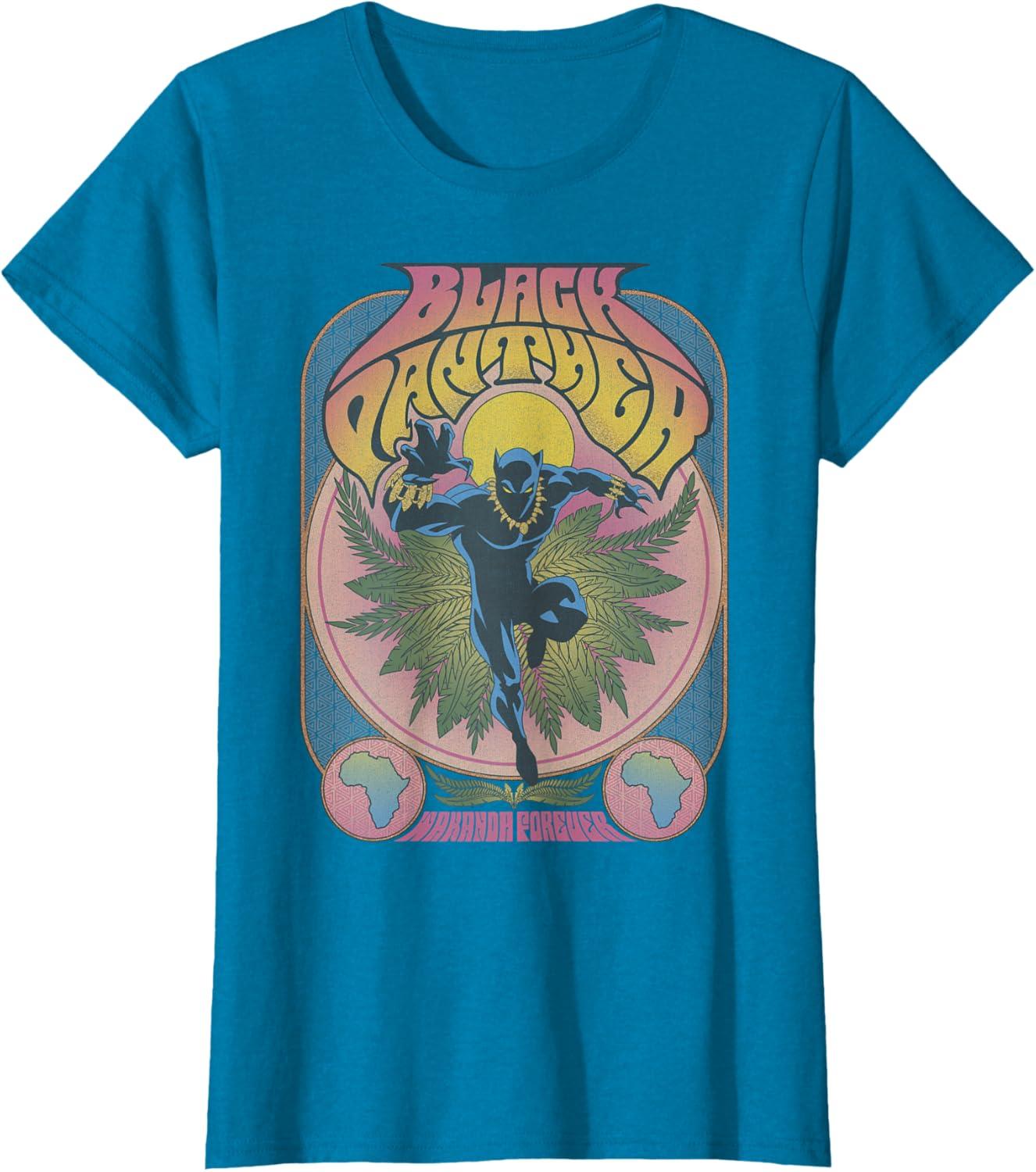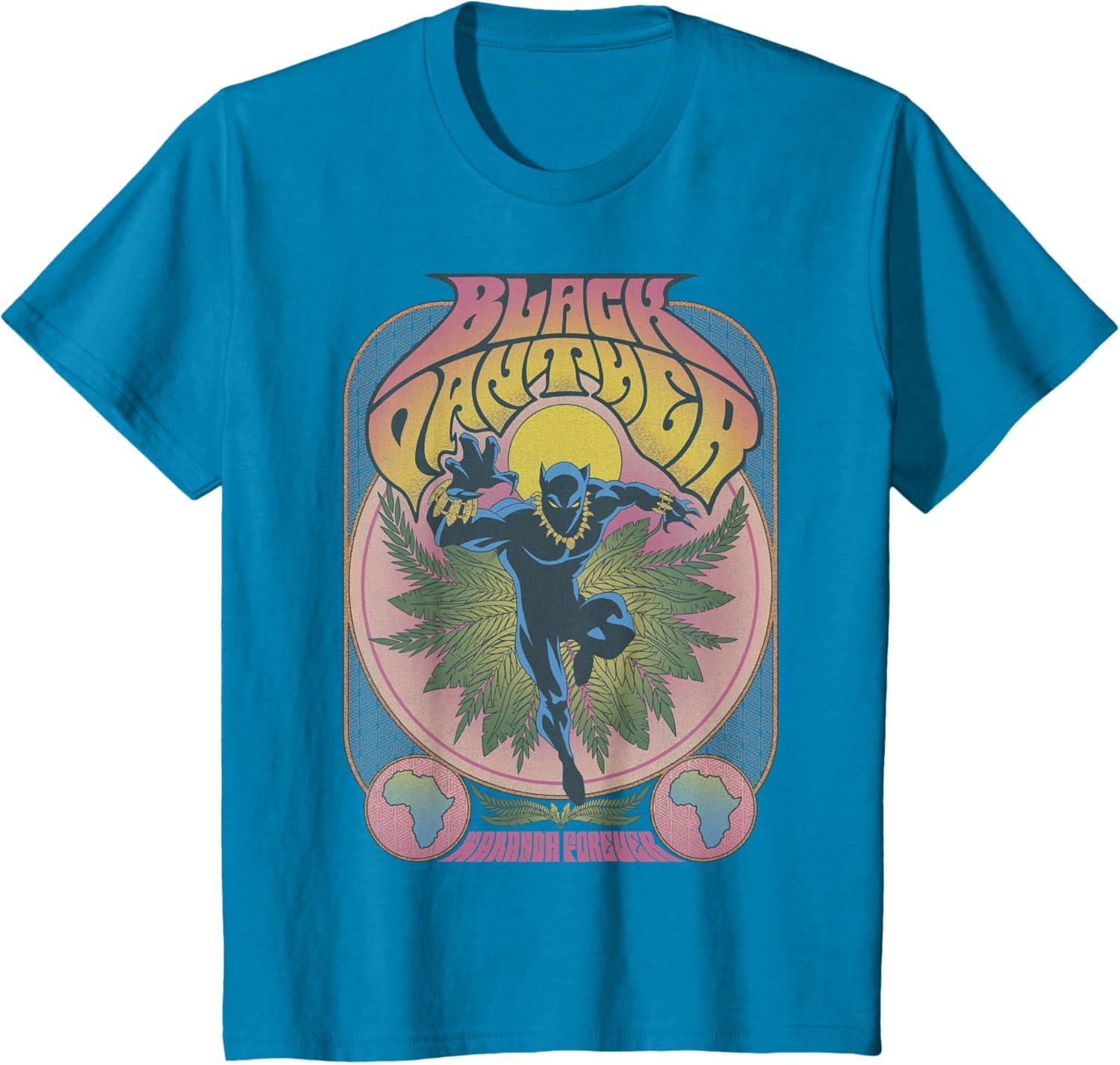 Marvel Black Panther Vintage 70’s Poster Style T-Shirt(Sapphire Blue)