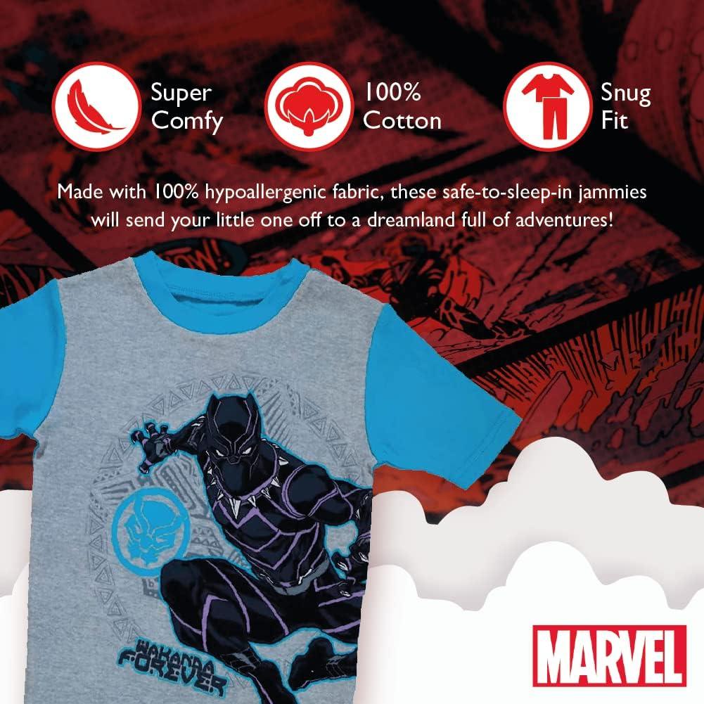 Marvel boys 2-piece Snug-fit Cotton Holiday Pajama Set, Soft & Cute for Kids(Black Panther)