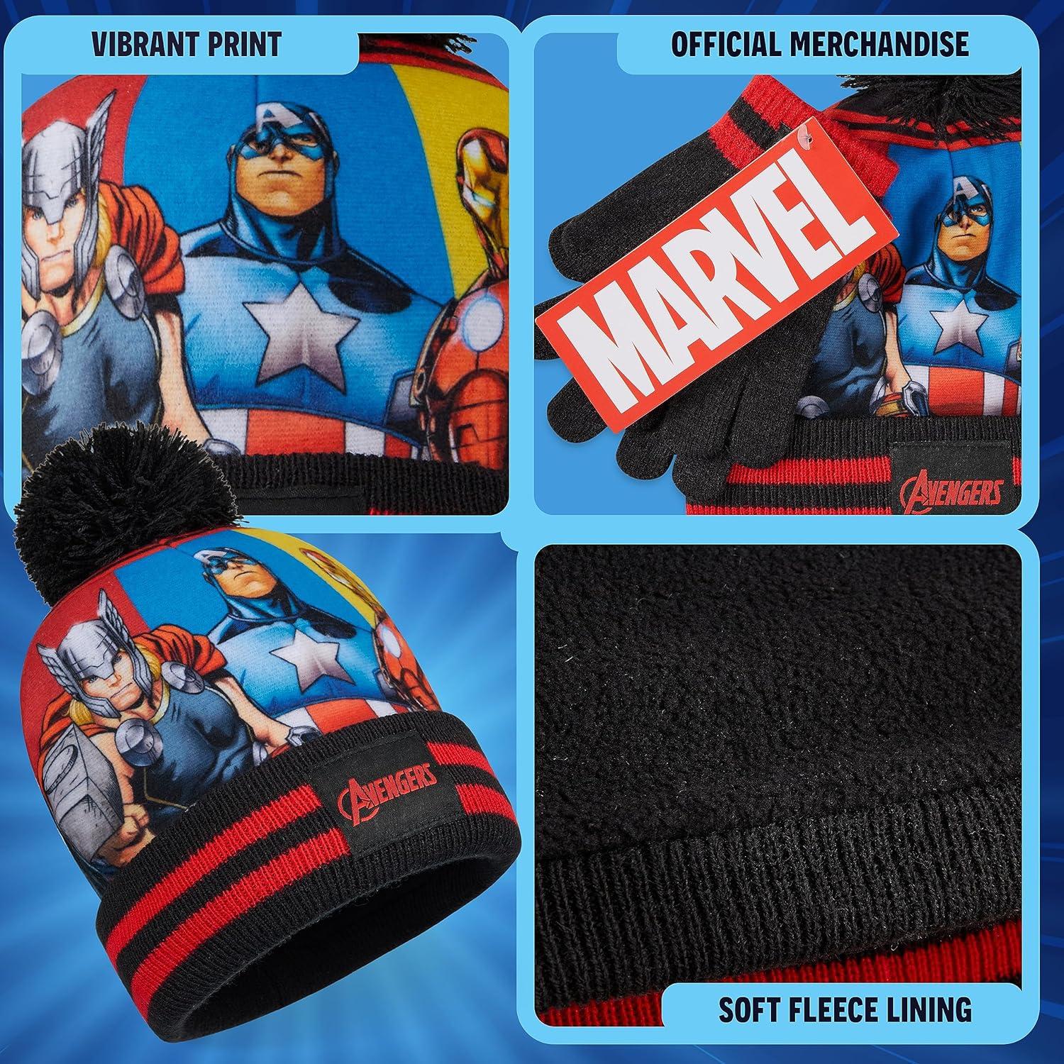 Marvel Boys Hat and Gloves Set for Boys Kids Winter Beanie Hat Cold Weather Accessories Set Avengers Gifts(Black Avengers 2 Pcs)