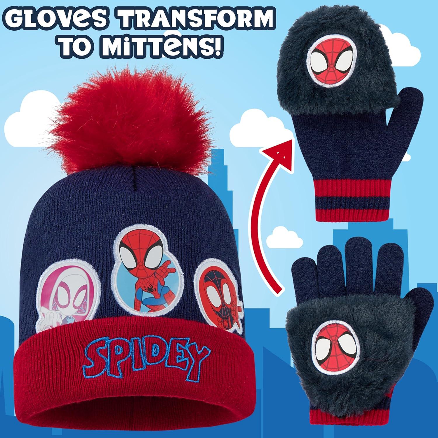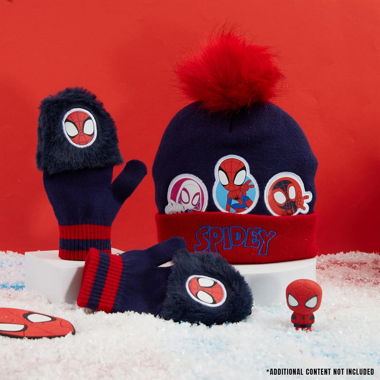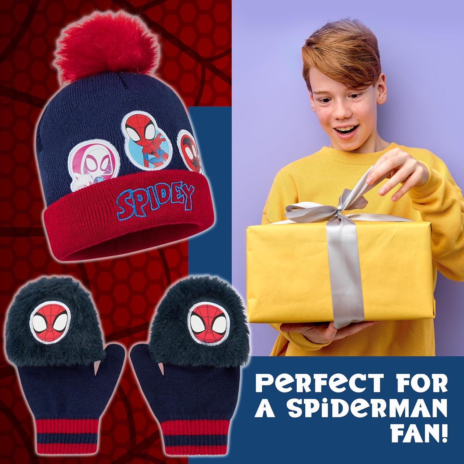 Marvel Boys Hat and Gloves Set for Boys Kids Winter Beanie Hat Cold Weather Accessories Set Avengers Gifts(Navy/Red Spidey 2 Pcs)